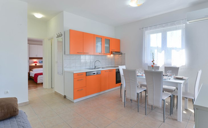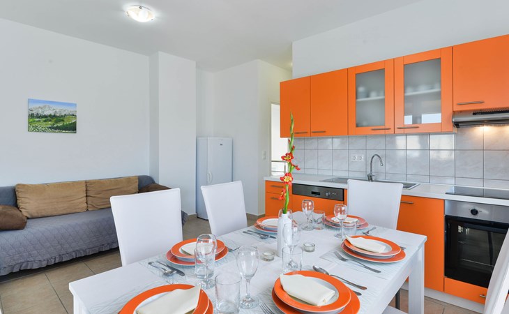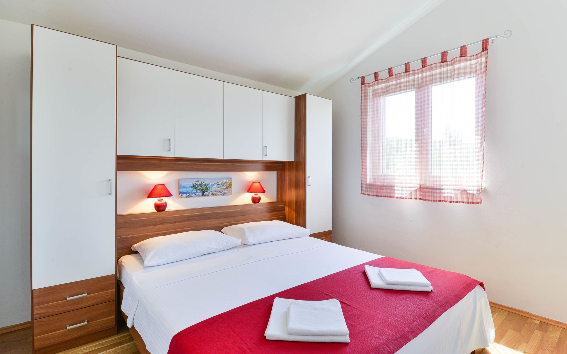Appartementencomplex "Matas". 12 km van het centrum van Starigrad, 300 m van het centrum van Rovanjska, 35 km van het centrum van Zadar, 200 m van zee, 200 m van het strand, aan een doodlopende weg. Voor medegebruik: terrein 500 m2 (omheind) met bomen, openluchtzwembad hoekig verwarmd (8 x 3 m, 30 m2, 150 cm diepte, seizoensgebonden beschikbaarheid: 28.Mrt. - 17.Okt.) met trap en oprolbaar afdekscherm. Buitendouche, terras, tuinmeubelen, barbecue, onderhoud zwembad door de eigenaar/tuinman. In het huis: internetaansluiting. Parkeerplaats op het terrein, openbare parkeerplaatsen. Winkel 300 m, restaurant 500 m, bushalte 350 m, rotsstrand 200 m. Zwembad met stroming.