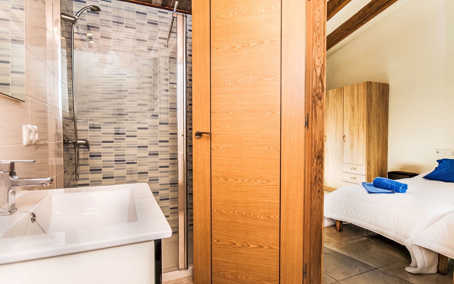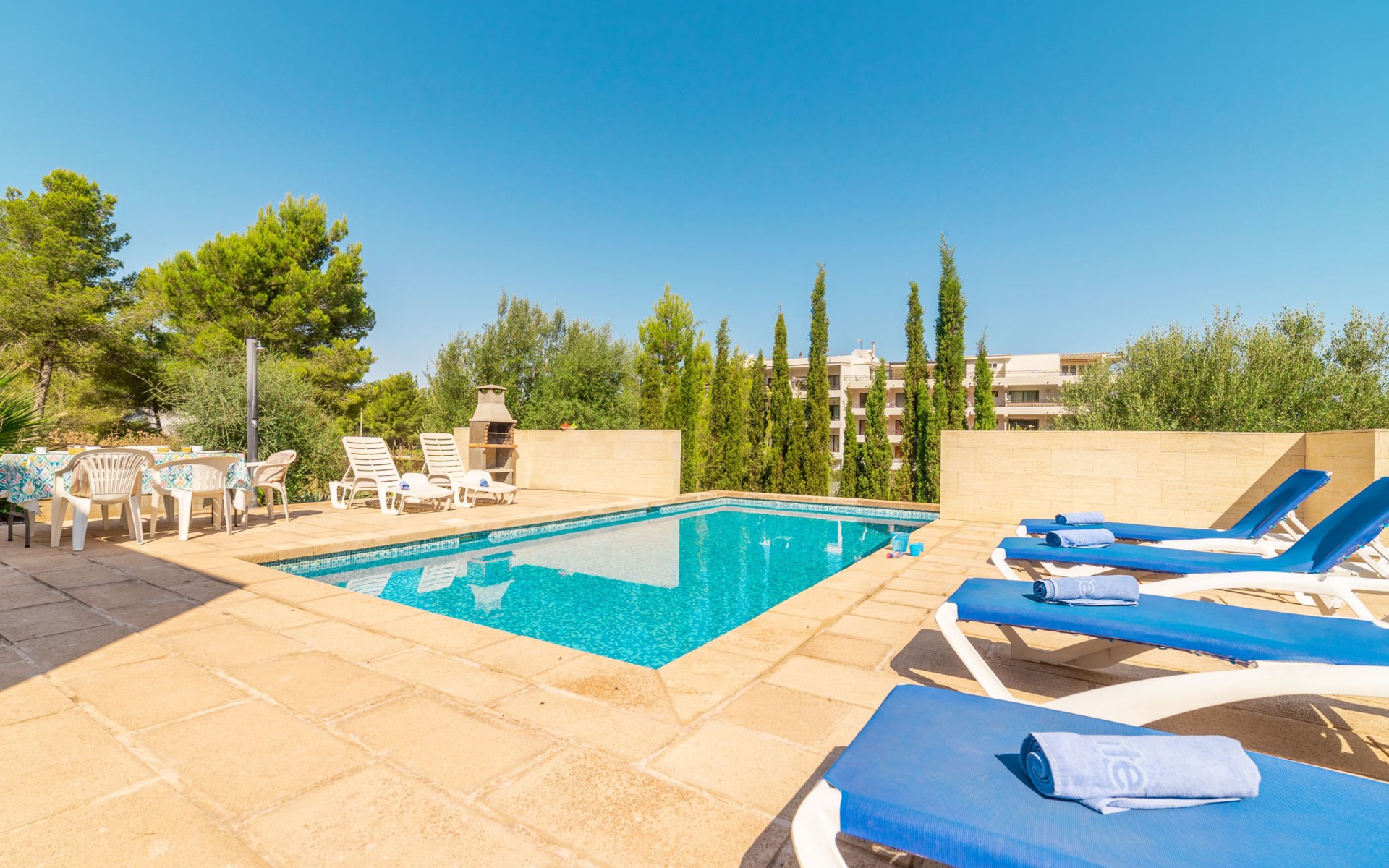 Betlem 4 km van Colonia de Sant Pere: Zeer groot, moderne villa "Betlem", van 2 verdiepingen, vrijstaand, omgeven door bomen. In de wijk Betlem, rustige ligging villa wijk, 800 m van de bosrand, 400 m van zee, 700 m van het strand. Voor alleengebruik: groot tuin met planten, openluchtzwembad hoekig (4 x 7 m, seizoensgebonden beschikbaarheid: 01.Jan. - 31.Dec.). Buitendouche, patio, prieel, prieel, tuinmeubelen, barbecue. In het huis: internetaansluiting, Internet (WiFi), air-conditioning, wasmachine. Parkeerplaats bij het huis op het terrein. Levensmiddelenwinkel 200 m, supermarkt, restaurant, bar 500 m, voetgangersgebied 900 m, fietsverhuur 200 m, biertuin 500 m, centrum te voet bereikbaar in 3 minuten, bushalte 220 m, zandstrand 700 m, rotsstrand 400 m. Jachthaven 4 km, jachthaven 4 km, golfterrein (18 holes) 20 km, zeilschool 4 km, wandelroutes 300 m vanaf het huis, fietspad 200 m. Attracties in de buurt: Cala Na Clara, Ca Los Camps, Es Caló, Cap de Farrutx. Wandelgebied Parc Natural de Llevant, Ermita de Betlem. Geschikt voor families, geschikt voor senioren. Het objekt is geschikt voor 4 volwassenen. De eigenaar accepteert geen jeugdgroepen.