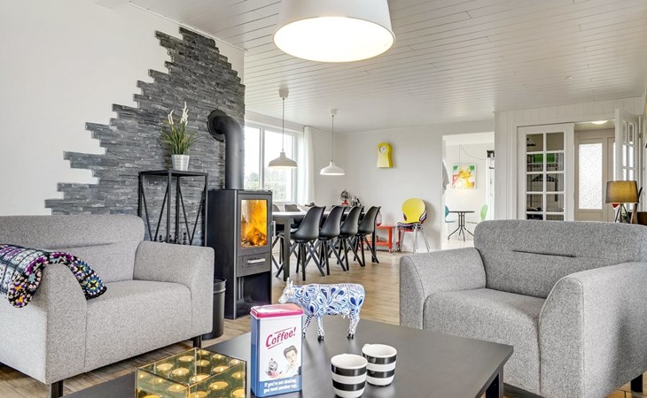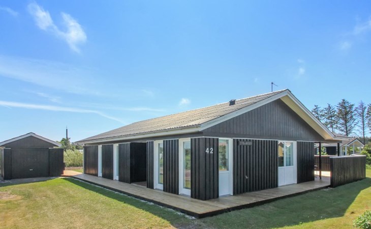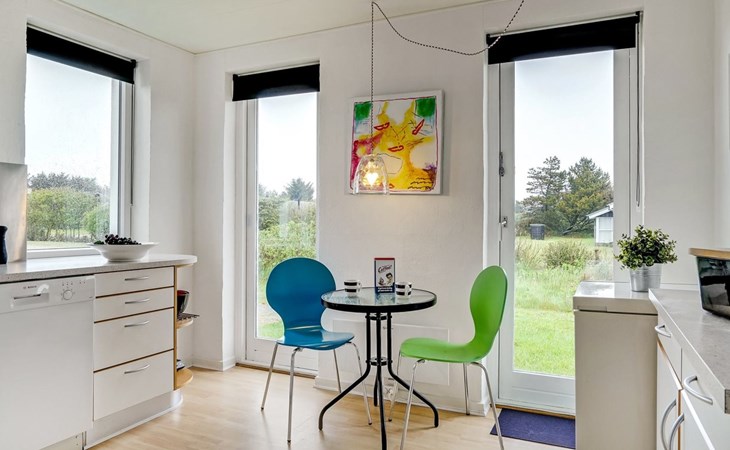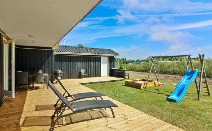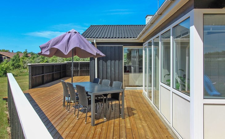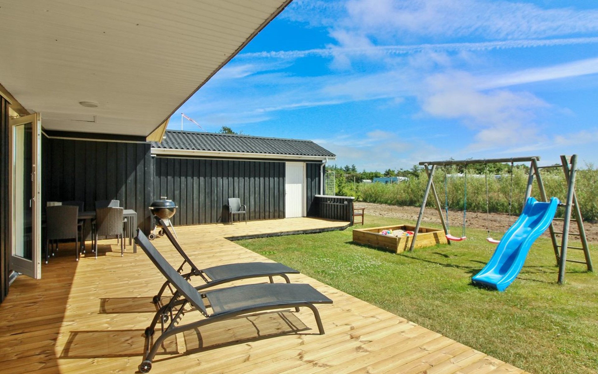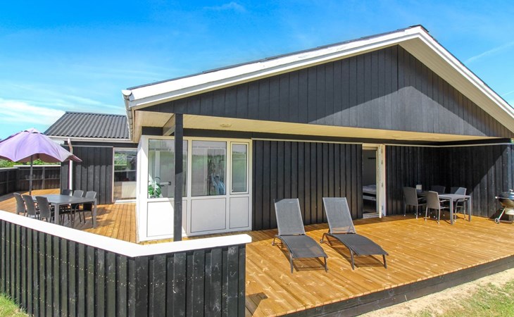 Eengezinswoning, bouwjaar 1979. 750 m van zee. Voor alleengebruik: wild terrein 1.228 m2. Terras (15 m2), kinderspeelplaats (glijbaan, schommel). In het huis: sauna, wasmachine. Parkeerplaats bij het huis. Levensmiddelenwinkel 1.2 km. De eigenaar accepteert geen jeugdgroepen.