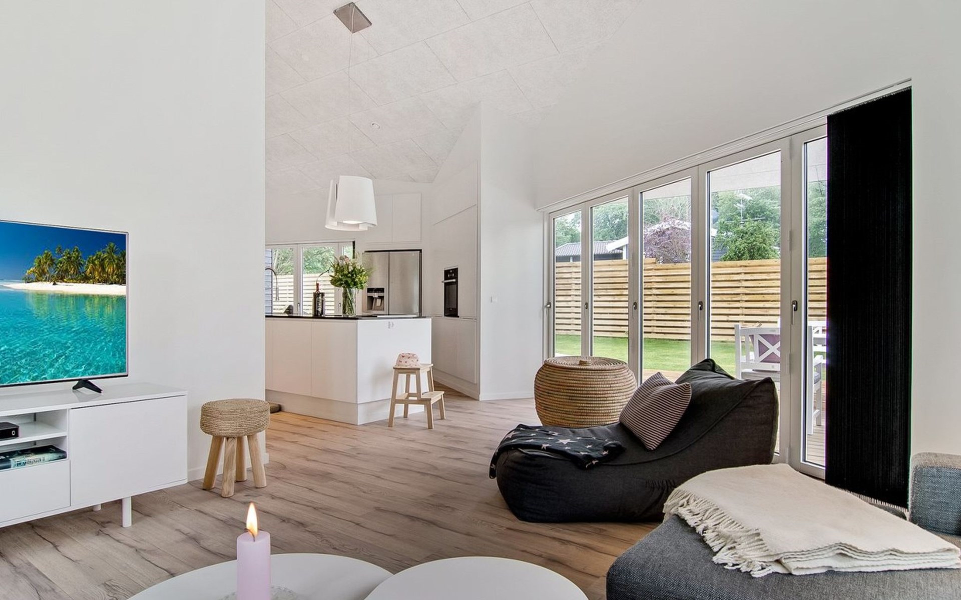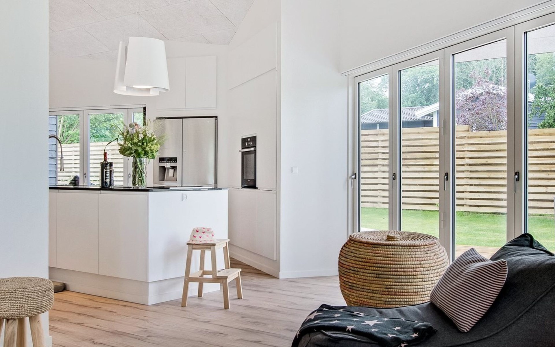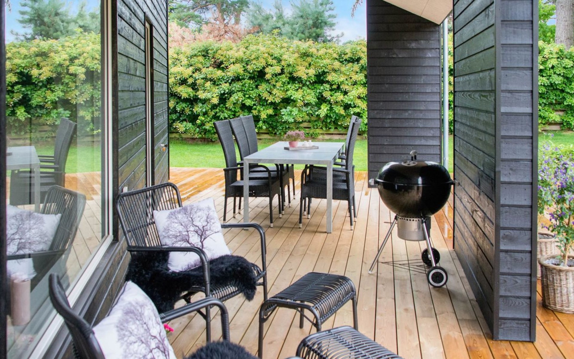 Eengezinswoning, bouwjaar 2016. 800 m van zee. Voor alleengebruik: wild terrein 825 m2. Buitendouche, terras (130 m2), barbecue. In het huis: wasmachine, droger. Parkeerplaats bij het huis. Levensmiddelenwinkel 1.1 km. Golfterrein 7.2 km. De eigenaar accepteert geen jeugdgroepen.