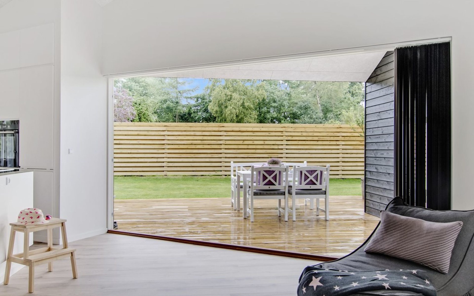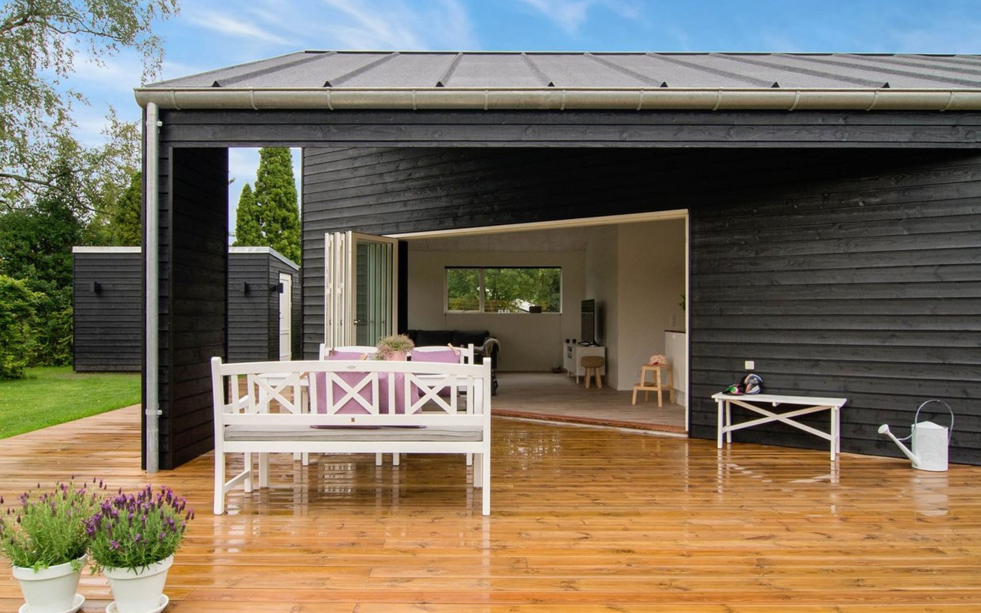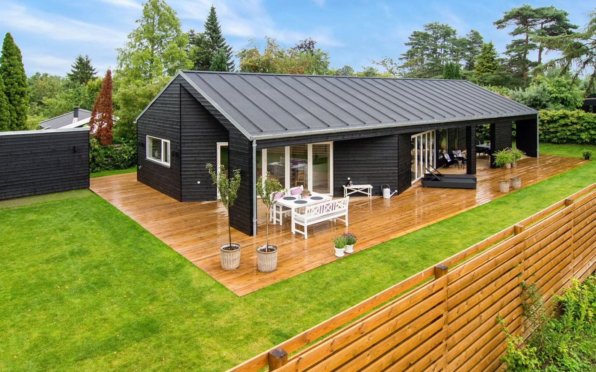 Eengezinswoning, bouwjaar 2016. 800 m van zee. Voor alleengebruik: wild terrein 825 m2. Buitendouche, terras (130 m2), barbecue. In het huis: wasmachine, droger. Parkeerplaats bij het huis. Levensmiddelenwinkel 1.1 km. Golfterrein 7.2 km. De eigenaar accepteert geen jeugdgroepen.