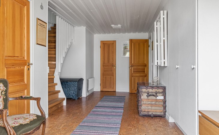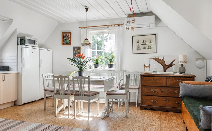 Trensum 4 km van Hällaryd: Mooi eengezinswoning "Matvik". 4 km van het centrum van Hällaryd, 10 km van het centrum van Karlshamn, tegen een helling, 600 m van zee, aan een doodlopende weg, te midden van groen. Voor medegebruik: wild terrein 2.000 m2, tuin (niet omheind). Badsteiger. Voor alleengebruik: terrein 1.000 m2 met bomen, weide. Beschikbaar: kano (extra). Roeiboot met motor (op aanvraag), parkeerplaats (voor 2 auto's) op het terrein. Oplaadstation. Winkel 4 km, supermarkt 10 km, bushalte 3 km, station "Karlshamn" 10 km, veerboot "Helsingborg" 185 km, zandstrand 1.2 km, overdekt zwembad 10 km. Jachthaven 600 m, golfterrein (27 holes) 18 km, Vismogelijkheden 600 m.