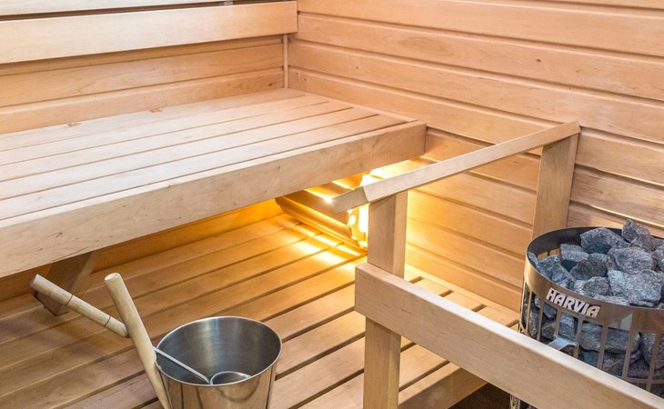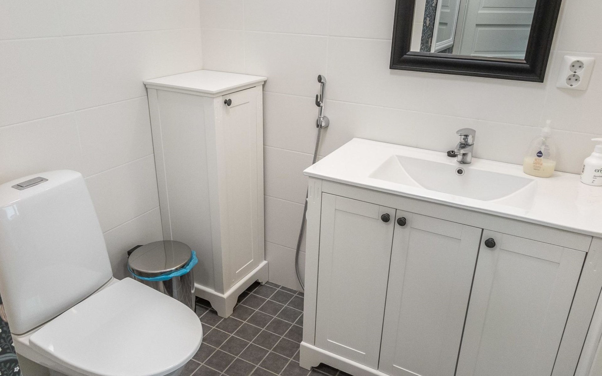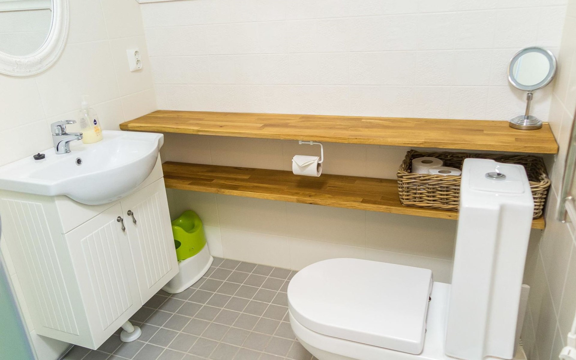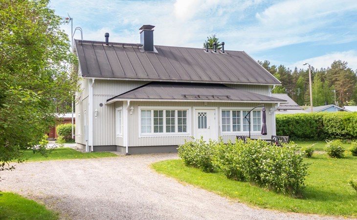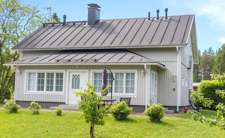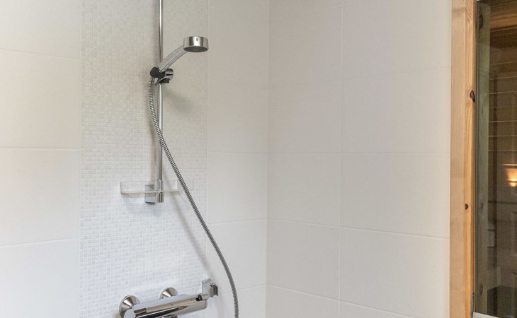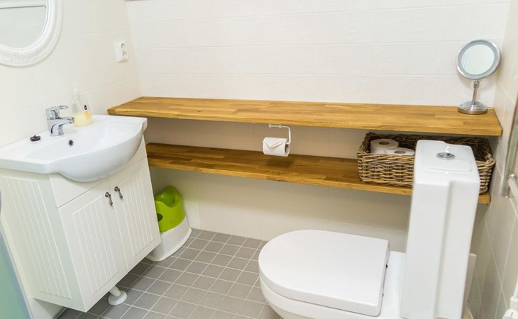 Downstairs: kitchen, dining area and living room, possibility to made 2 extra bed in sofa-bed (140 cm). Covered veranda, utility room (washmachine and tumble-dryer), washroom, sauna (electric stove) and 2 toilets. In dining room is wooden warming oven.