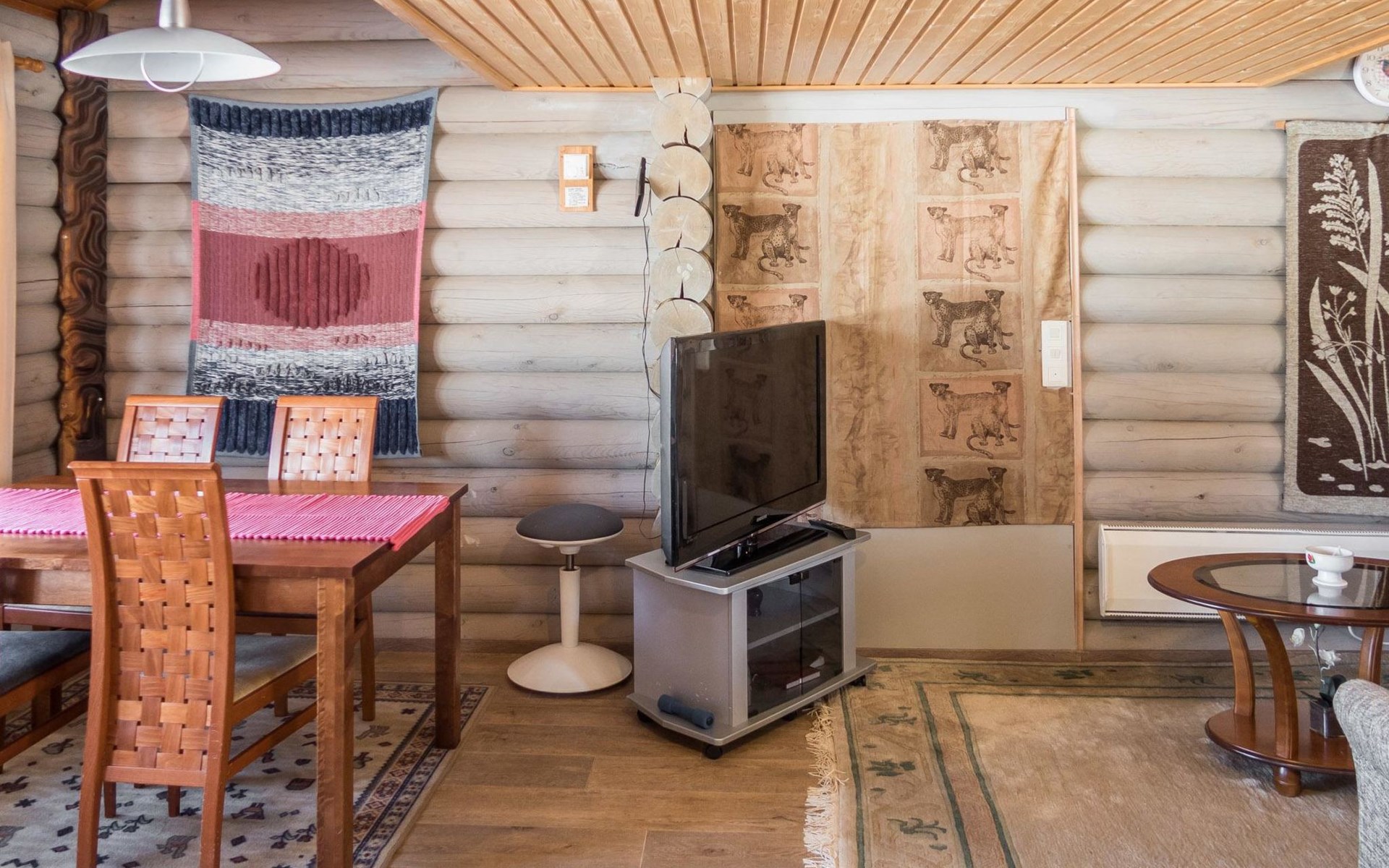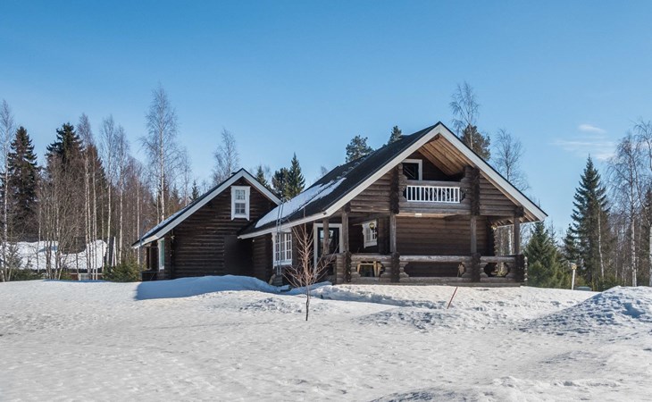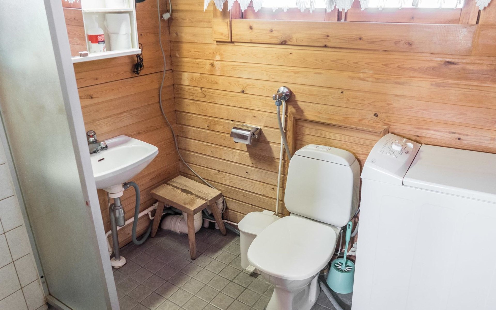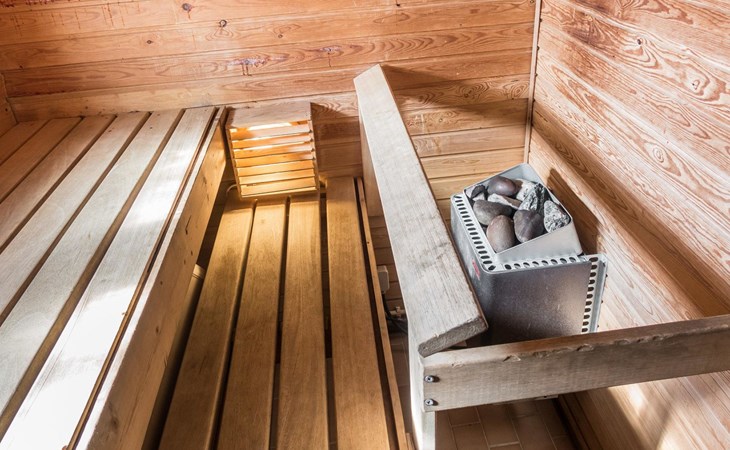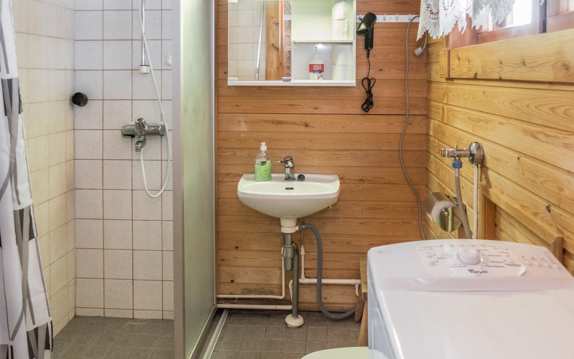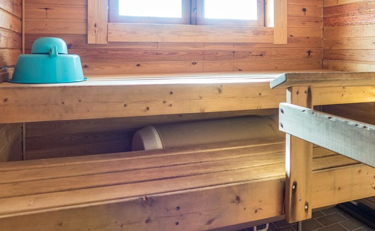 Vuokatticottage E living area 57 m², on two floors. Kitchenette, bright living room with dining table, sofa, TV 42 ", fireplace. Shower/toilet, sauna with electric stove. Loft with steep stairs, small lobby with access to both bedrooms, one with double bed (access to balcony), one with twin beds for 2. Small terrace.