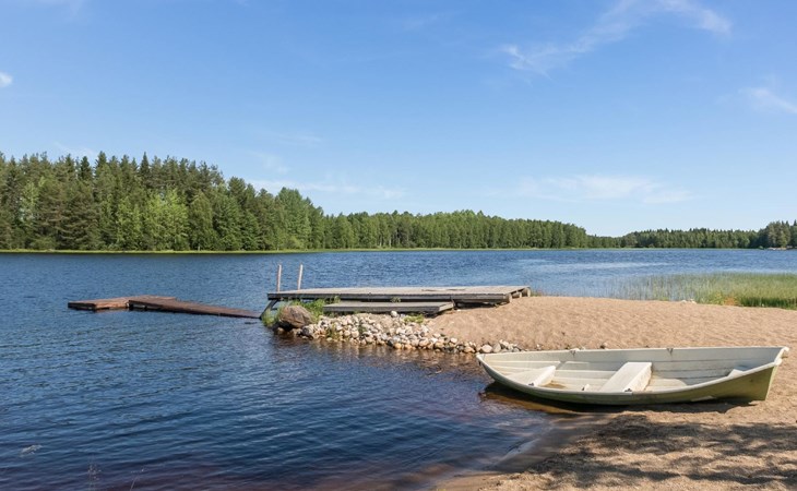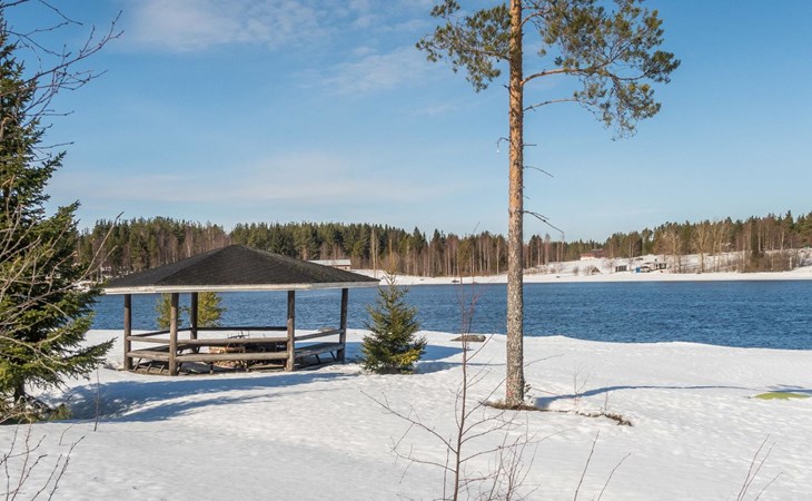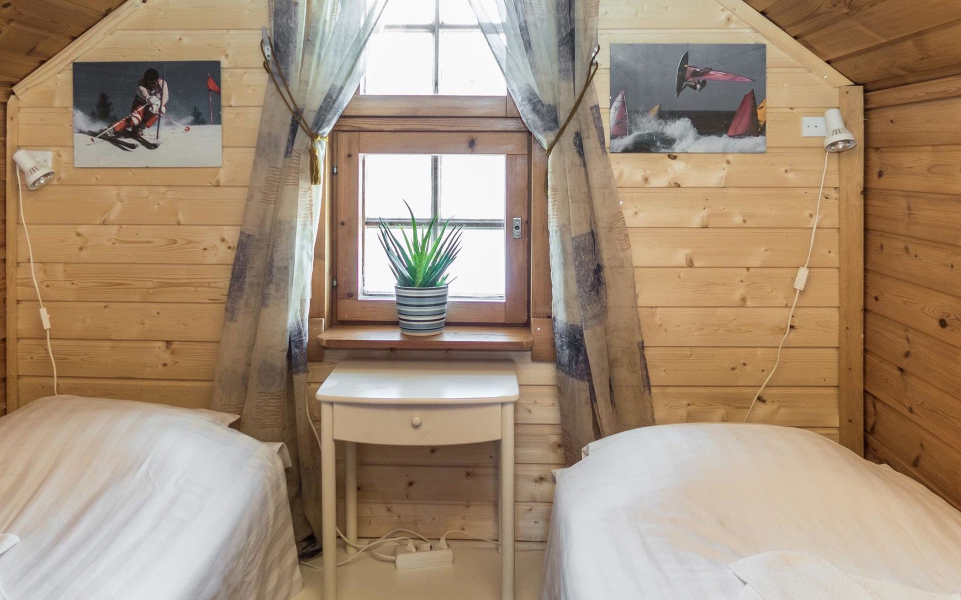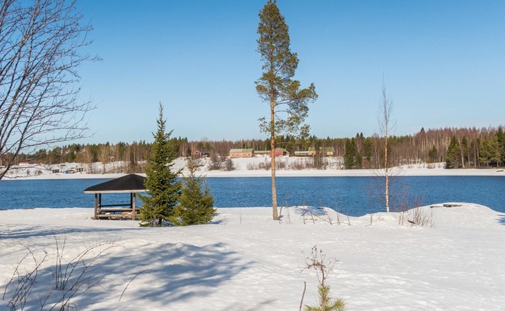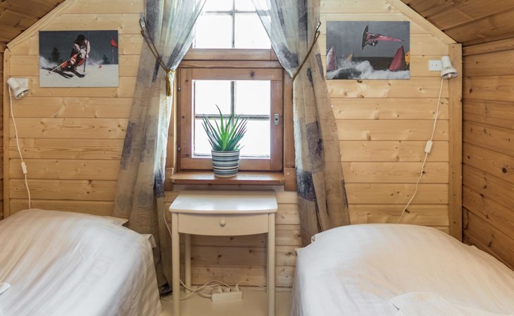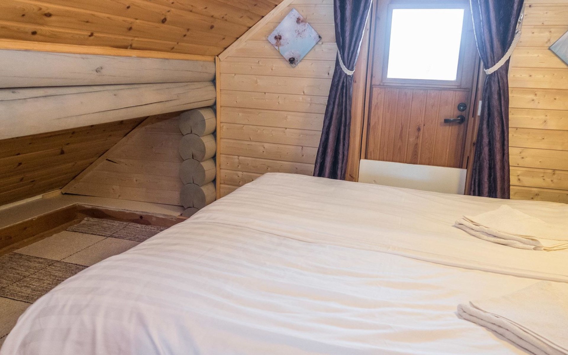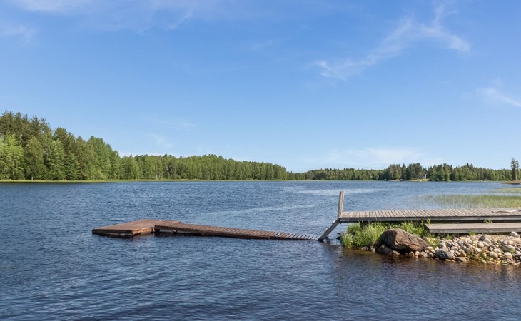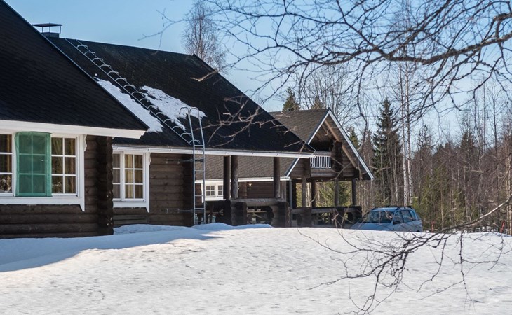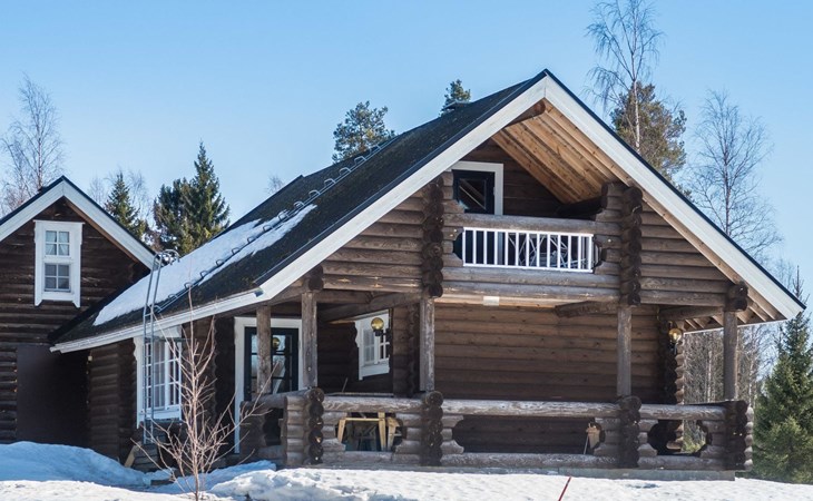 Vuokatticottage E living area 57 m², on two floors. Kitchenette, bright living room with dining table, sofa, TV 42 ", fireplace. Shower/toilet, sauna with electric stove. Loft with steep stairs, small lobby with access to both bedrooms, one with double bed (access to balcony), one with twin beds for 2. Small terrace.