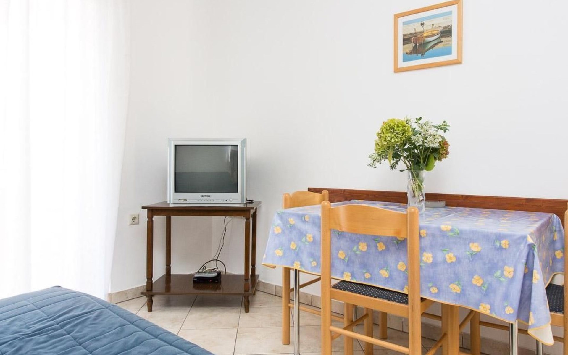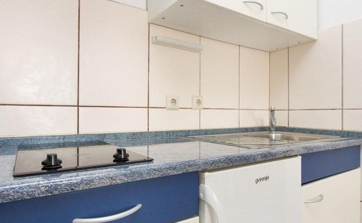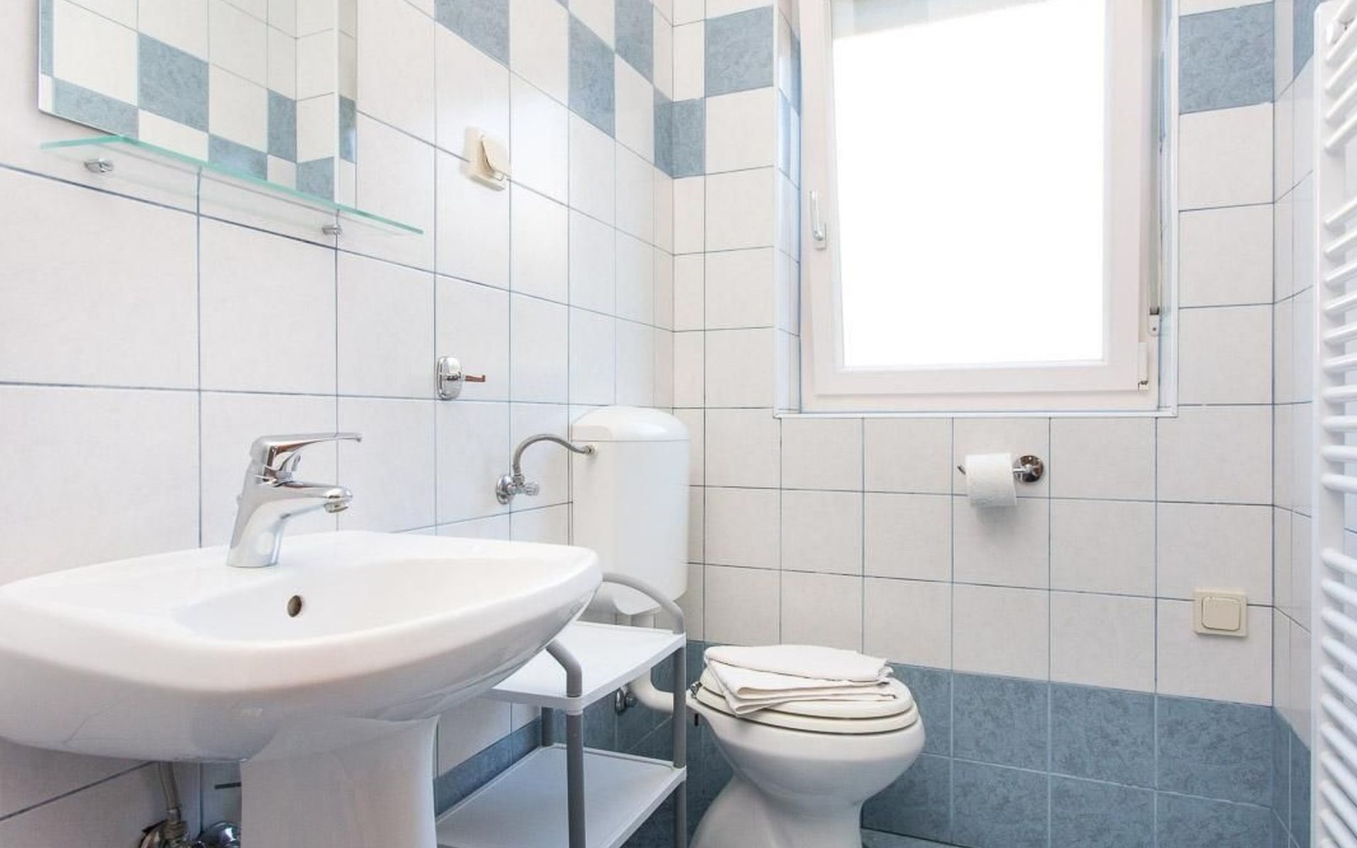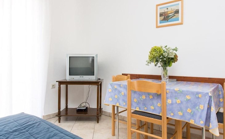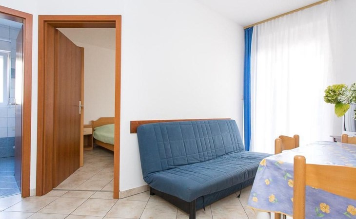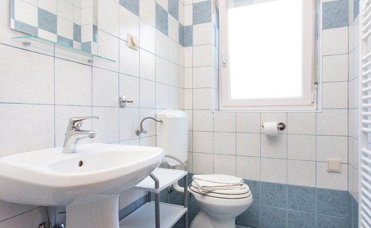 No. of persons: 2-3 / without air conditioning Places: 32 m2 (ground floor) Equipment holiday flat: Bedroom : double room , French bed , tiled Living area : dining room and kitchen are one unit; dining table and seating for all persons; an additional sleeping possibility on a sofa bed; with terrace; tiled Kitchen : kitchenette, crockery, pots and pans, cutlery, etc. are available, dish towels, electric cooker, number of hotplates: 2, refrigerator without freezer compartment, coffee machine Bathroom : bathroom with WC, with shower. dishes available, dish towels available, electric cooker, number of hotplates: 2, fridge without freezer compartment, coffee machine bathroom : bath with WC, with shower special features of the accommodation unit : satellite TV, bed linen provided in weekly change, towels available (2 small/person and week), one pet allowed (up to 45 cm shoulder height), The prices include the following additional costs: change of bed linen (weekly), final cleaning as well as the consumption of electricity, gas and water. Terrace : private terrace, covered terrace, table and chairs for the terrace are available, surface of the terrace: 5sqm outdoor area : barbecue, free car park