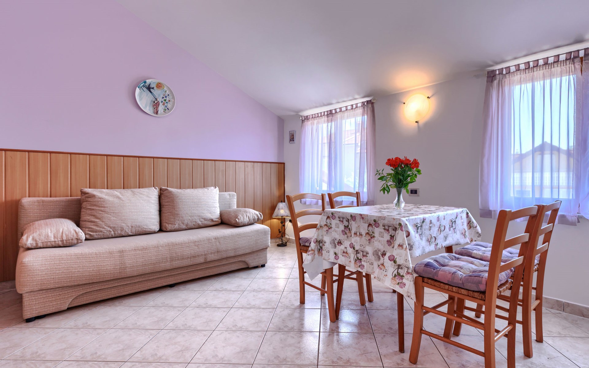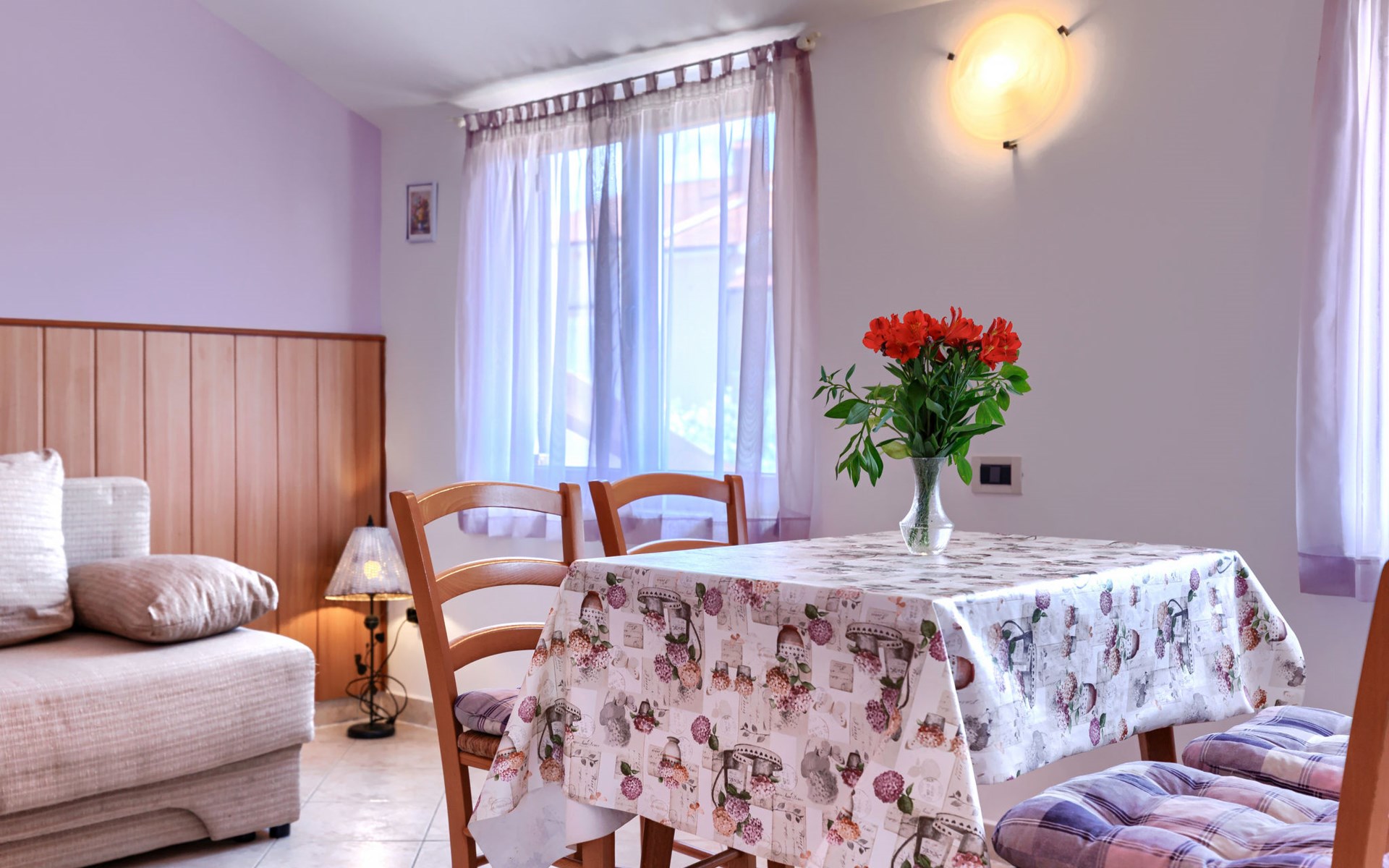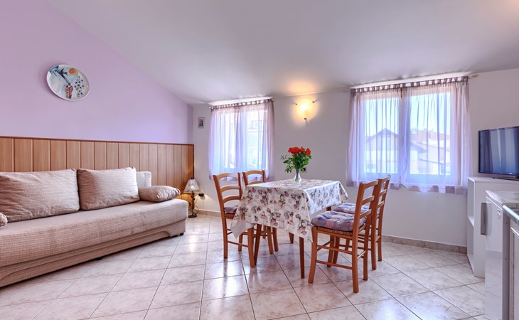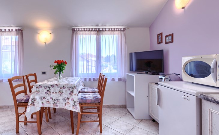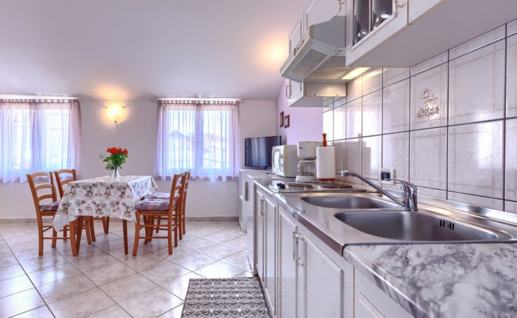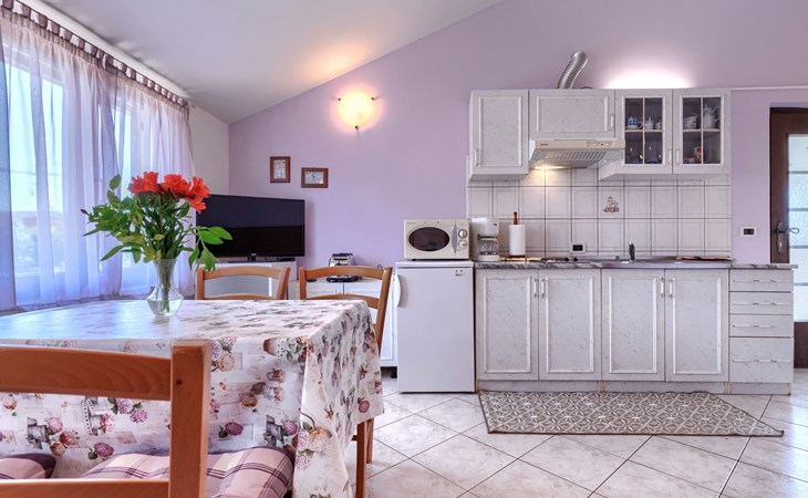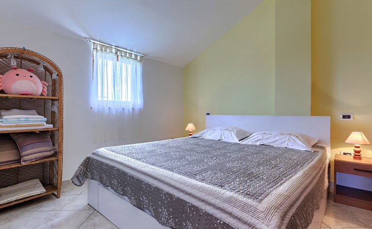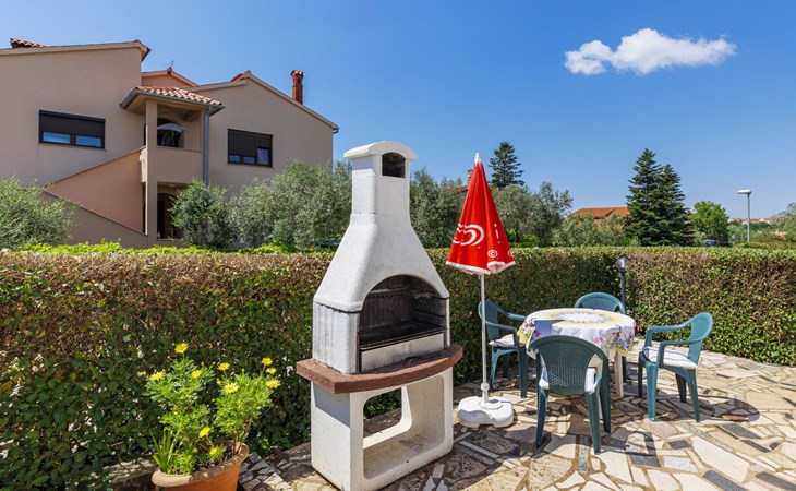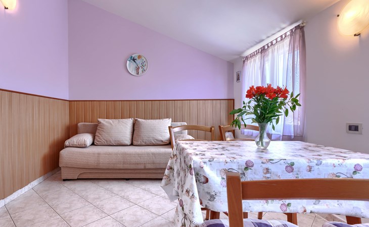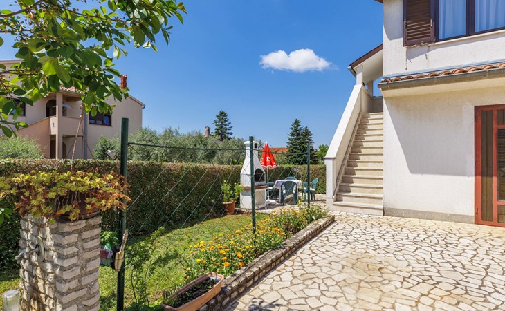 Appartementencomplex "Fabiana". In het gehucht Valdebek, 2 km van het centrum van Pula, 4 km van zee, 4 km van het strand, aan een doodlopende weg. Voor alleengebruik: terrein. Terras (20 m2), tuinmeubelen, barbecue. In het huis: internetaansluiting. Parkeerplaats bij het huis op het terrein. Winkel, restaurant 50 m, bushalte 300 m, kiezelstrand 4 km, rotsstrand 4 km. Tennis 4 km. Vliegveld 10 km van het huis.