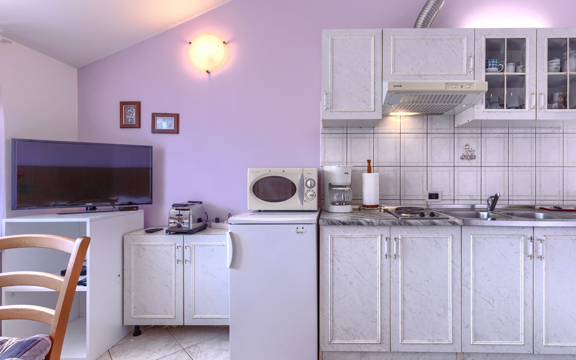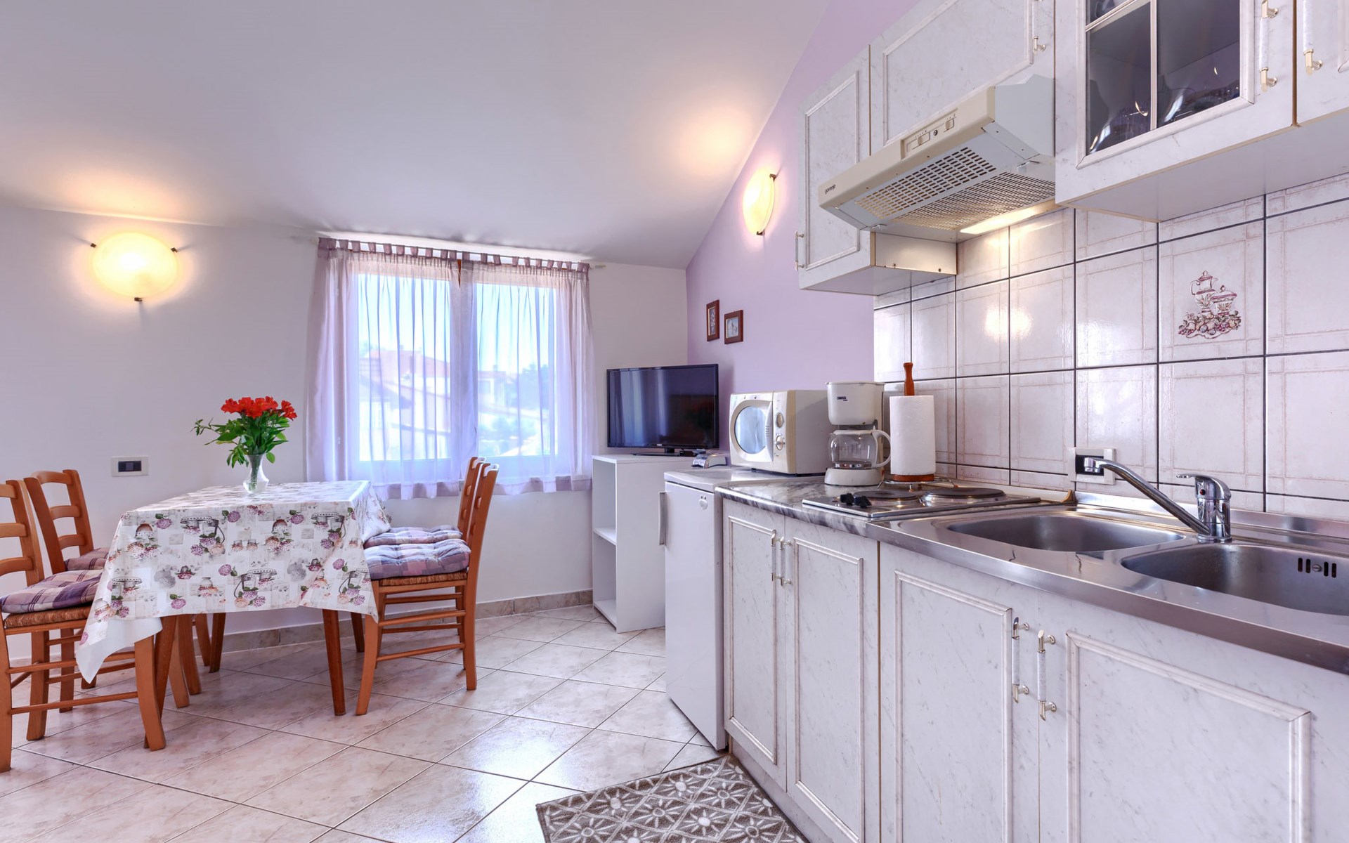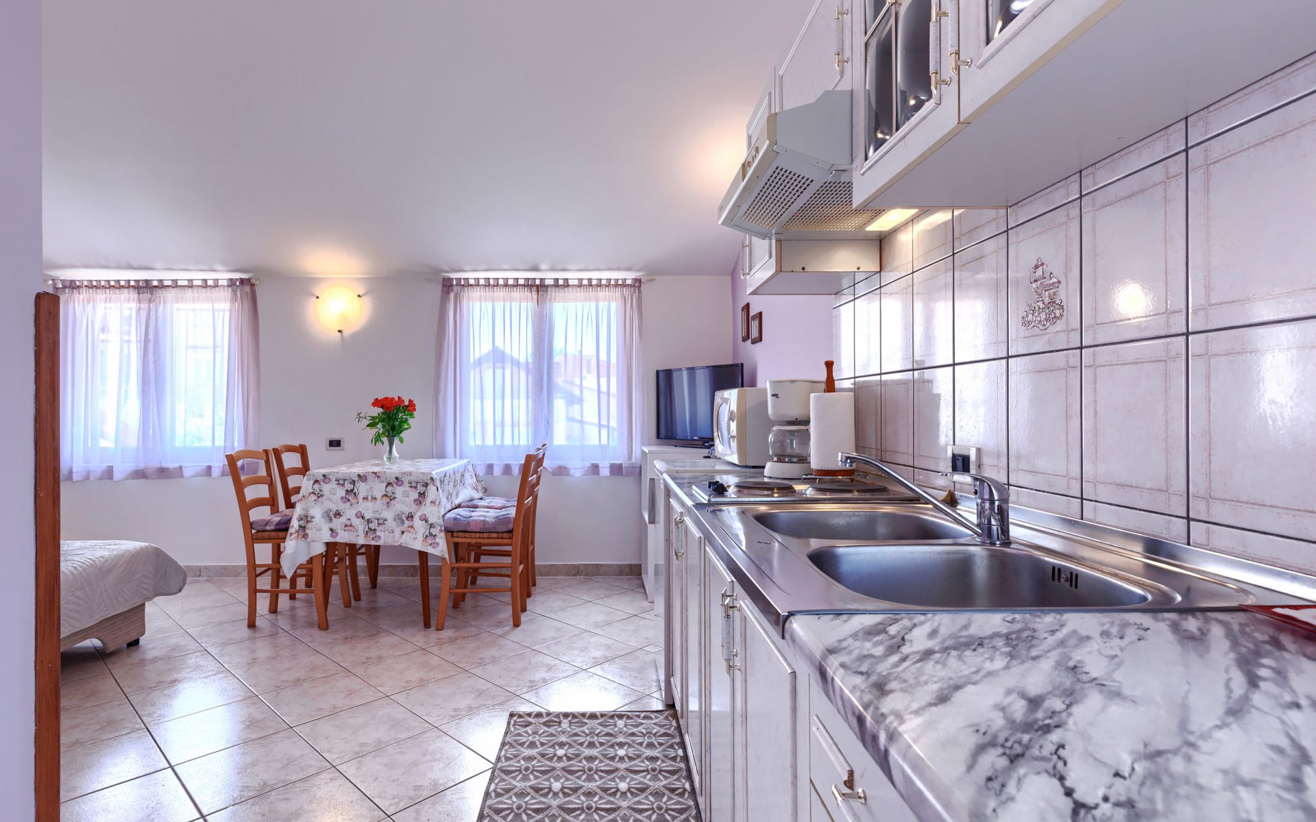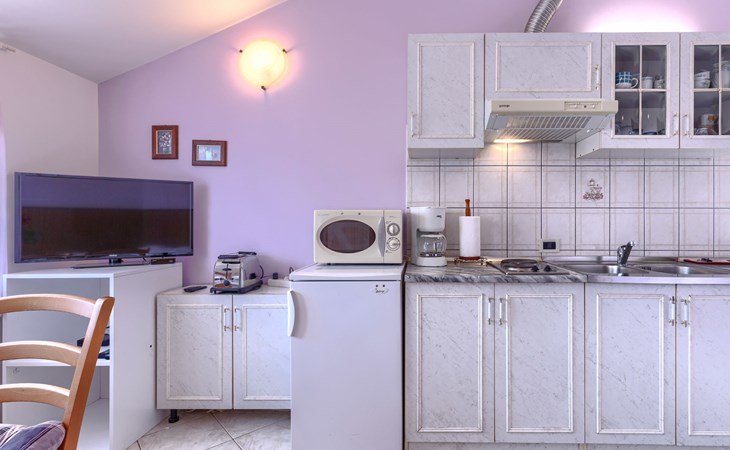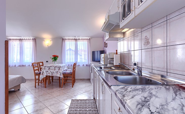 Appartementencomplex "Fabiana". In het gehucht Valdebek, 2 km van het centrum van Pula, 4 km van zee, 4 km van het strand, aan een doodlopende weg. Voor alleengebruik: terrein. Terras (20 m2), tuinmeubelen, barbecue. In het huis: internetaansluiting. Parkeerplaats bij het huis op het terrein. Winkel, restaurant 50 m, bushalte 300 m, kiezelstrand 4 km, rotsstrand 4 km. Tennis 4 km. Vliegveld 10 km van het huis.