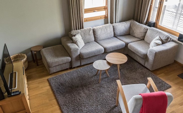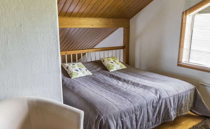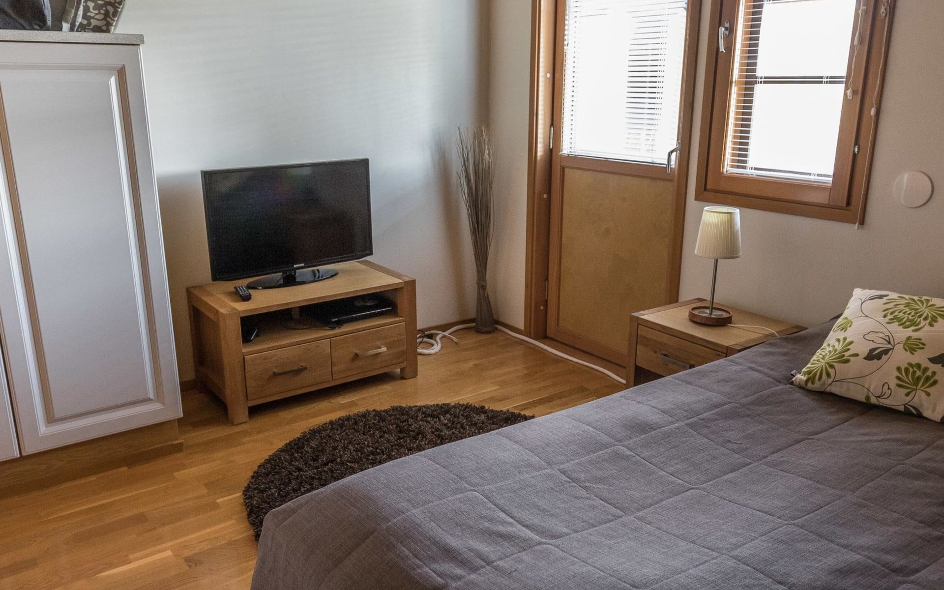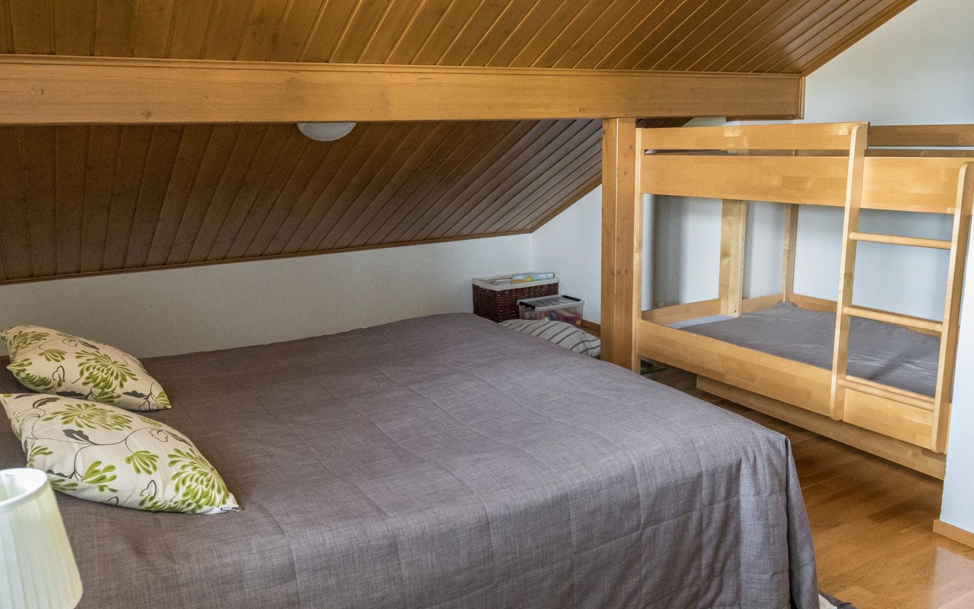 In upstairs bed room with two beds and bunk bed for children (size 70 x 155 cm, short, no suitable for adults), loft two beds. In the bed room upstairs there is also tv, child gate in the stairs. Note! Apartment is suitable for max. 6 adults + 2 children.