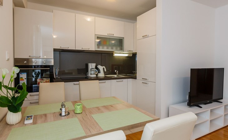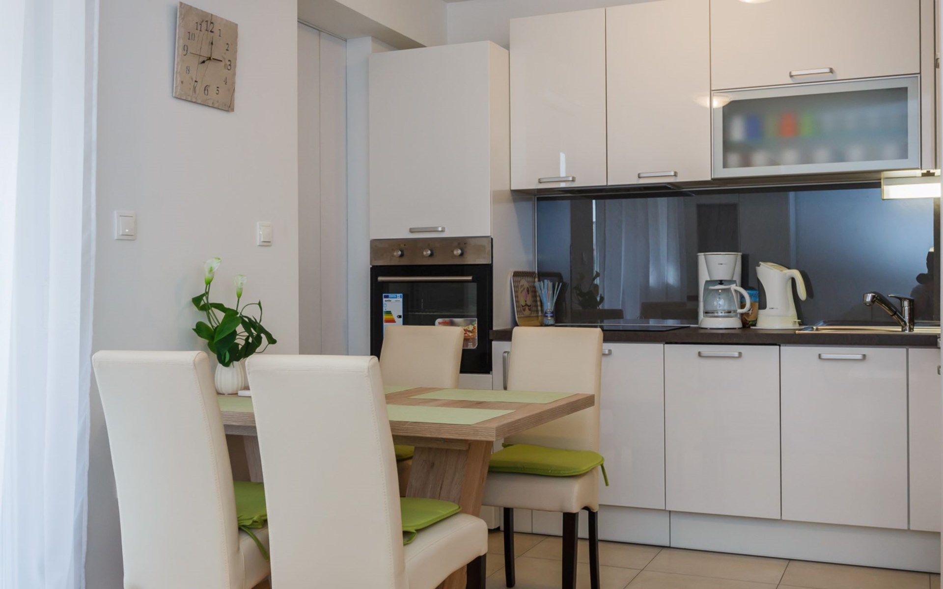 Flatgebouw van 2 verdiepingen. 1 km van het centrum van Kaštel Stari, rustige, zonnige ligging, 1 km van zee, 1 km van het strand, op het zuiden. In het huis: internetaansluiting. Parkeerplaats nr. 5 bij het huis op het terrein. Winkel, restaurant 500 m, bushalte 800 m, kiezelstrand 1 km. Vliegveld 4 km van het huis.