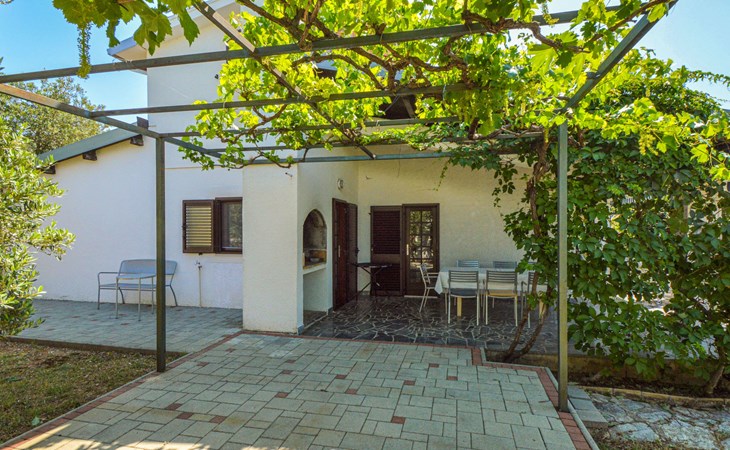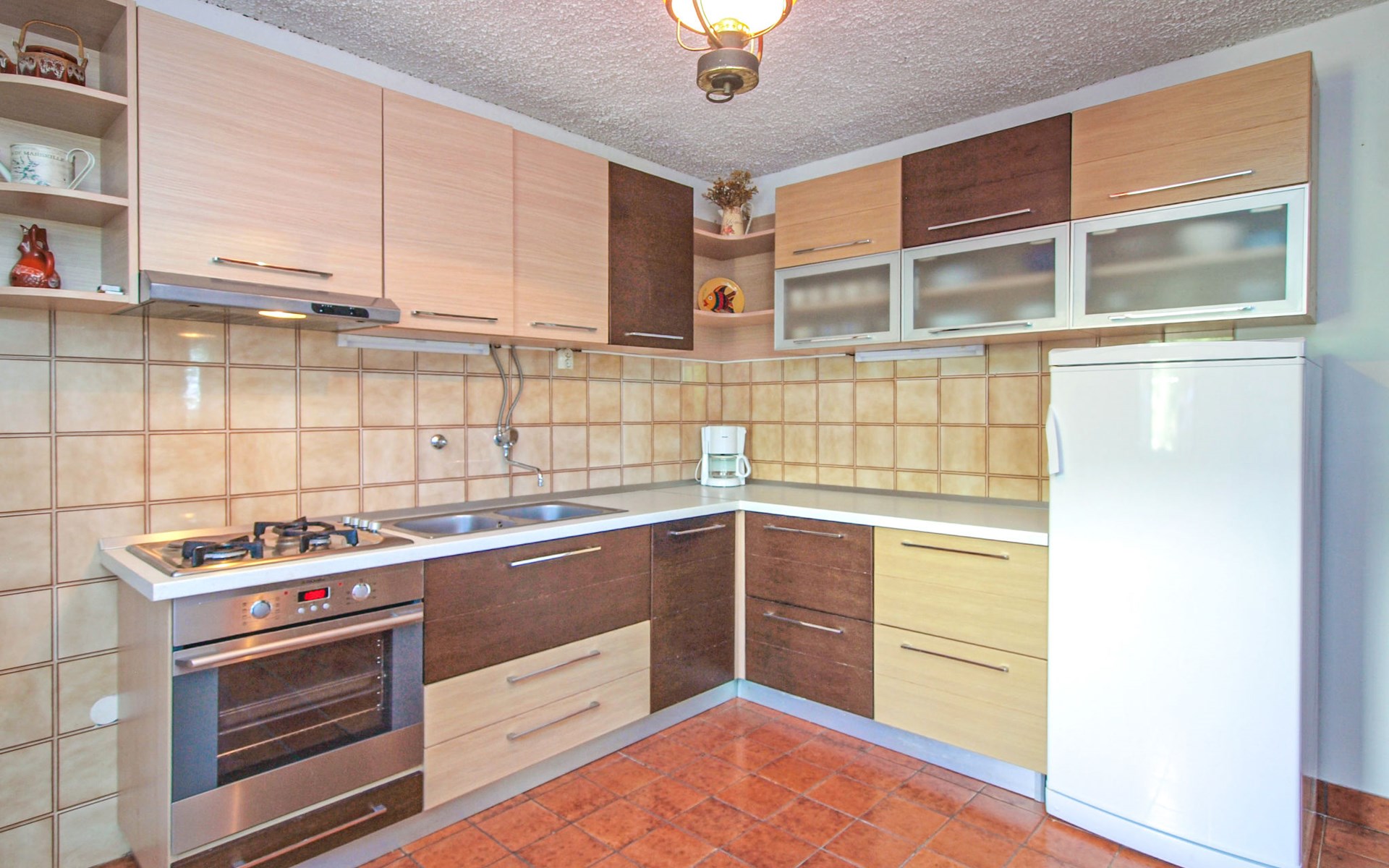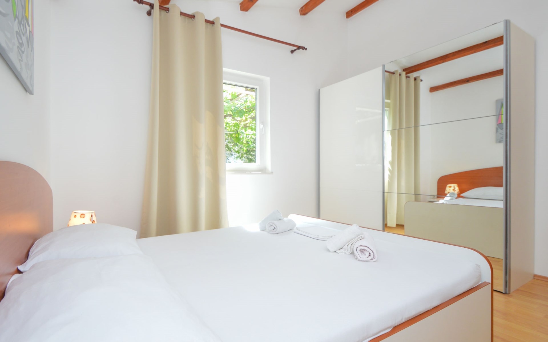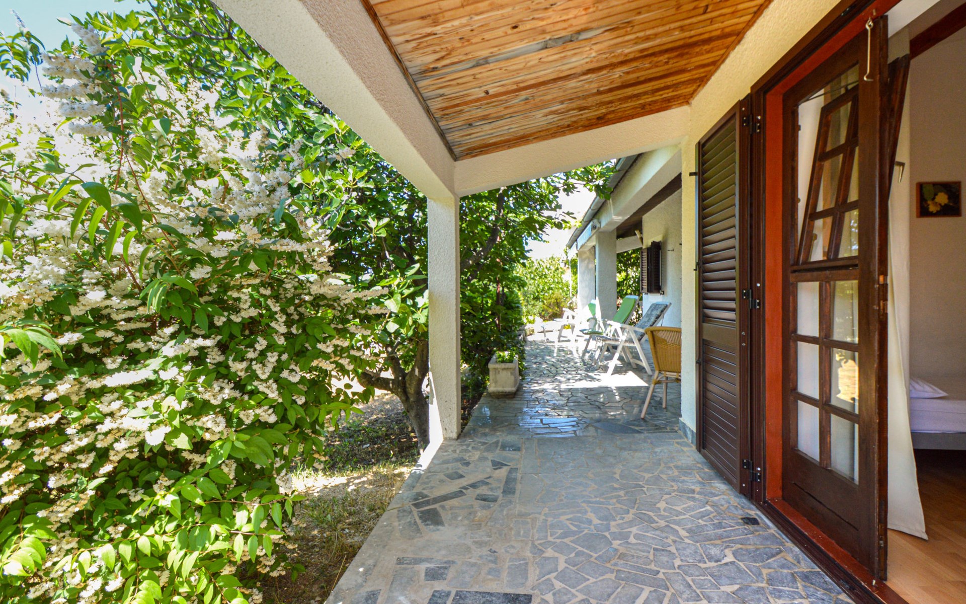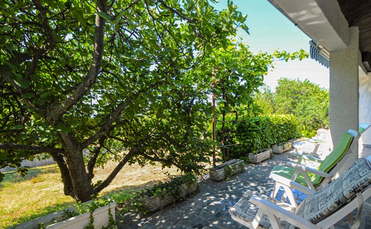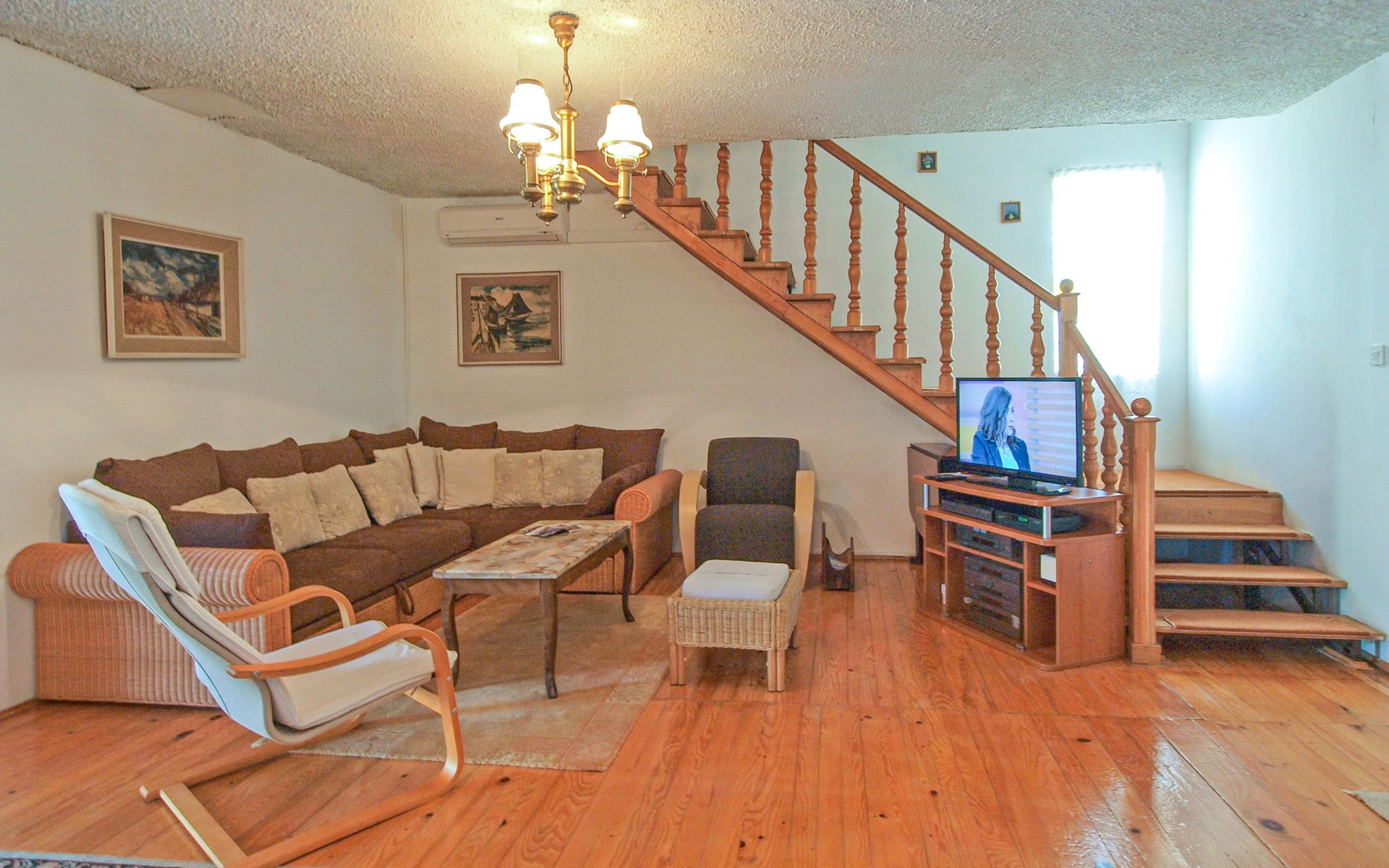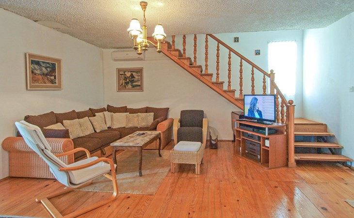 Eengezinswoning "Karmela", van 2 verdiepingen. Buiten de plaats, 1 km van het centrum, rustige, zonnige, verhoogde ligging, 500 m van zee. Voor alleengebruik: terrein 850 m2, tuin (omheind) met bomen, wilde tuin, parkeerplaats bij het huis op het terrein. Winkel 500 m, restaurant 1 km, bushalte 2.4 km, kiezelstrand, stenenstrand 500 m.