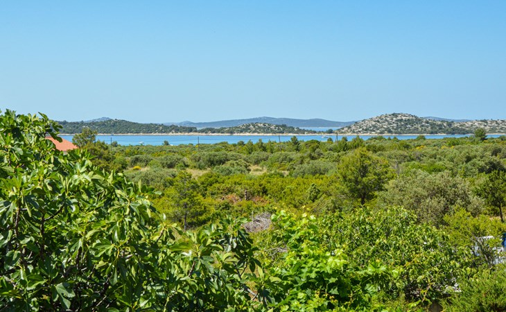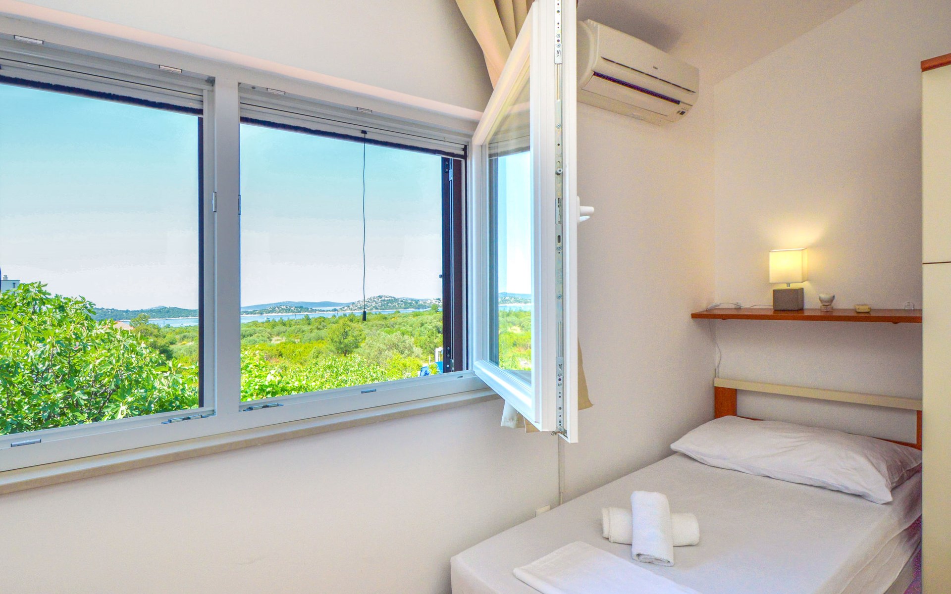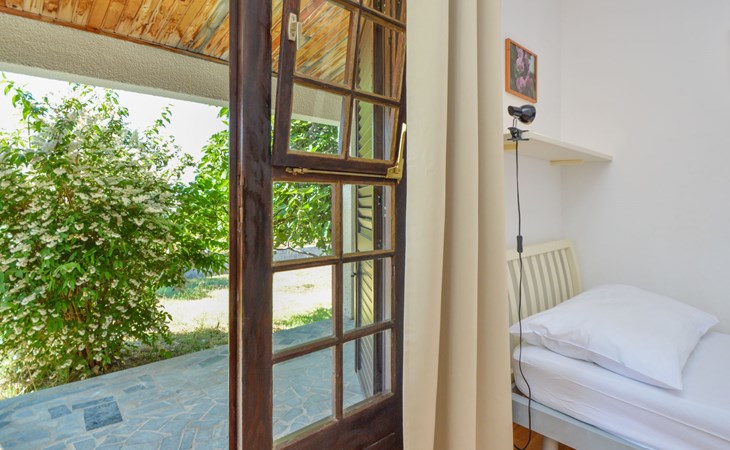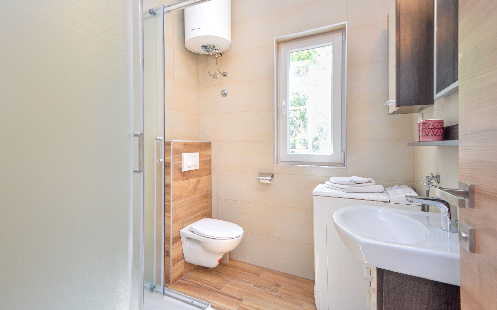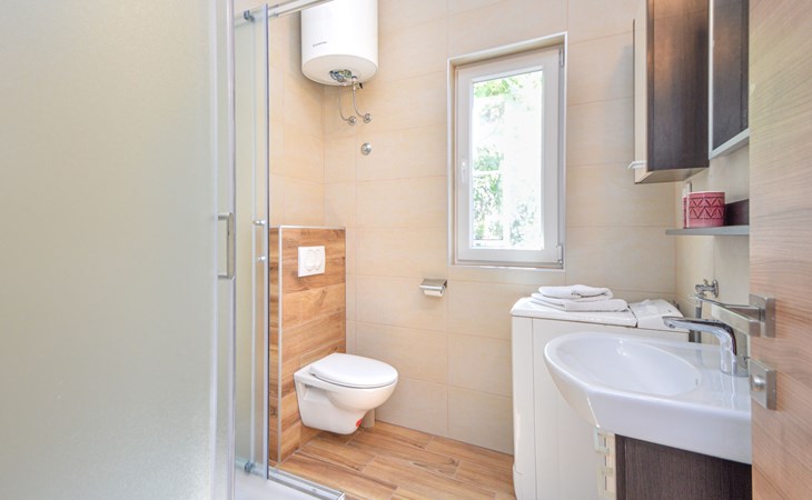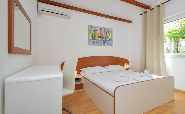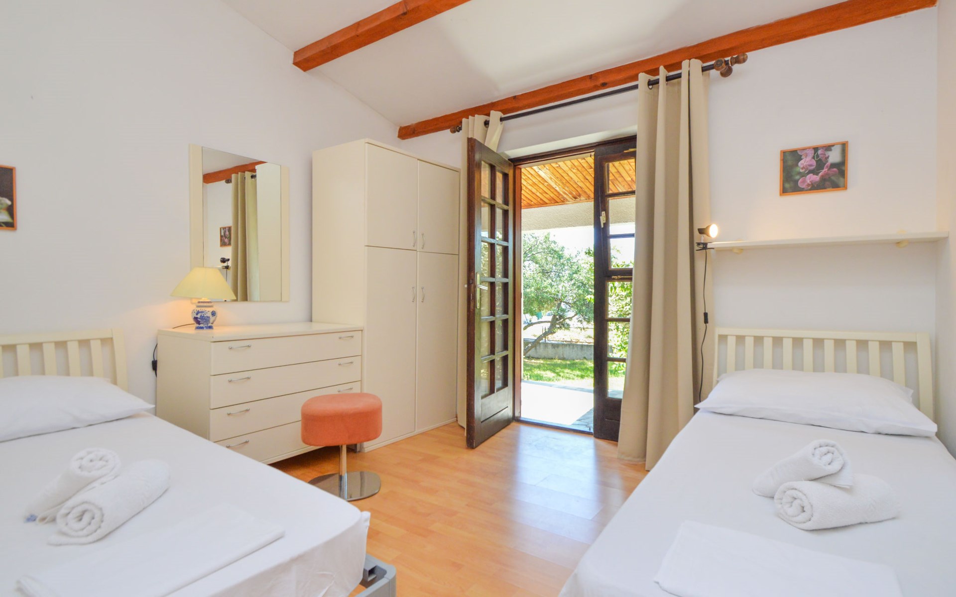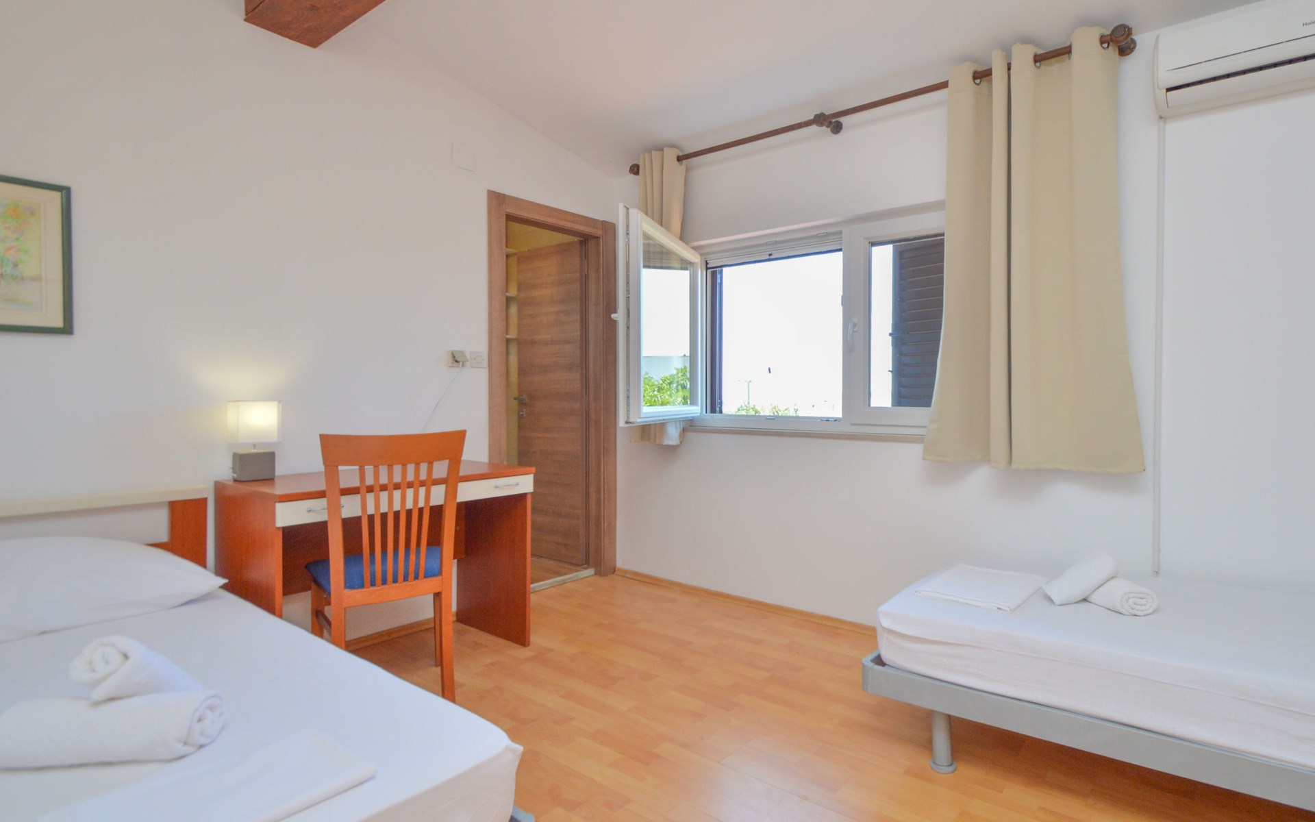 Eengezinswoning "Karmela", van 2 verdiepingen. Buiten de plaats, 1 km van het centrum, rustige, zonnige, verhoogde ligging, 500 m van zee. Voor alleengebruik: terrein 850 m2, tuin (omheind) met bomen, wilde tuin, parkeerplaats bij het huis op het terrein. Winkel 500 m, restaurant 1 km, bushalte 2.4 km, kiezelstrand, stenenstrand 500 m.
