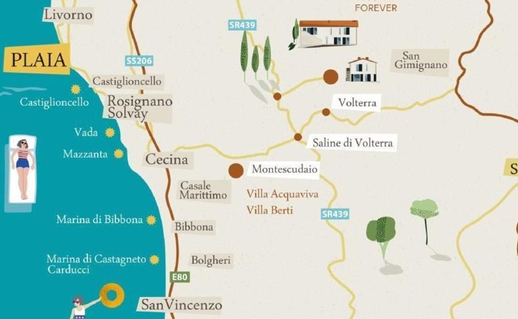 VILLA V VOLTERRA FIRST FLOOR APARTMENT This is new 125m2 first floor apartment.With 3 bedrooms and 2 bathrooms it comfortably accommodates all family.The apartment has beautiful master bedrooms with King size bed , the second bedroom with King size bed, the next with 3 single beds. The bathrooms are finished with beautiful marble.Open-plan living/lounge/dining area is ideal for entertaining in. A fully-equipped kitchen provides convenience for your home cooking. Apartment is well equipped with commodities :washing machine, dishwasher , cooker with oven, kitchen hood, hover.The apartment also features balcony/terrace . Outside space with table and chairs in the garden , where you can have breakfast, lunch. Situated among the villages , vineyards and golden hills of Tuscany . Our garden is huge, shared for all guests. Free tennis court , swimming pools , playground and parking space.FREE:•Cot (bed) for baby, highchair, •Box with toys if you travel with a kid•Bed linen, bathroom/indoor towels ( weekly change )•We provide basic toiletries•Internet WiFi•Tennis court• Swimming pools OPEN FROM 01 MAY-20 OCTOBER•Swimming pool for kids •The innovation –a new swimming pool with lazy river-flow current system ! •Playground for kids•Communal terrace and BBQ•Free private parking lot•Tourist informationEXTRA SERVICE RESTAURANT AT THE LOCATION OSTERIA ETRUSCA •Heating on request extra paid•cleaning service ON REQUEST extra paid •Picking up guests, members of family or friends from the airport•Shopping FIRST BREAKFAST KIT / basic grocery shoppingINTERACTIVE ACTIVITIES •Bike rental •Wine tours •Cooking classes •Individual and group lessons of Italian•Organising trips e.g. journeys around Tuscany and close neighbourhood in Italy, tourist guides In the heart of Tuscany, among villages, vineyards and on golden hills overlooking the medieval walls and towers of Volterra, in the middle of ETRUSCAN historical centre, there is a new estate consisting of 12 villas, named Tuscany Forever Residence. It is not only a lovely place to live but also a wise project which offers a unique lifestyle in a remarkably beautiful corner of the world. Tuscany Forever Residence is an example of the interesting architectural philosophy, which grows out of the spirit of Tuscany, its colour of the earth and stones. Energy saving houses are a contemporary interpretation of rural Tuscan farmhouse. The space created by the architect allows to admire the hilly landscape of Volterra. Let yourself contemplate the world. Enjoy starry nights and feel a part of the Universe. We offer 12 villas with 29 apartments on our location available for all year round. UNIQUE BENEFITSWe know, where the happy kids are. SUMMER 2017TUSCANY FOREVER featuring family friendly properties. Our mission is to simplify modern family travelling. Please bring the kids. Based on the experience that we gained during the last few years, we have built some ideas to make traveling with children a rewarding, meaningful experience. We are sure you will love the positive energy of the apartments .Of course we provide free cots (bed) for babies, highchairs. You will also find more wooden toys, sweet dolls for your kids.For years on a special search of objects , design toys , books , and vintage furniture linked to the world of the child. We love with that way so simple but so special to create art accessible and available to everyone . We believe that aesthetics is a daily quest , a quest to learn from an early age . And we certainly do not stop because we're too grown up !OSTERIA ETRUSCA Bring the kids and visit OSTERIA ETRUSCA located at the bottom of VILLA III APICIUS OSTERIA ETRUSCA is a homely family business which focuses on Italian cuisine art. Italian cuisine grows out of different regional traditions. We recommend that each family could plan at least one special, interactive cooking workshop for children and master classes for adults. Our clients consistently report that it’s the structured, hands-on experiences with local traditions and people that create the best holiday memories.•Breakfast buffet , lunch, dinner •Each morning we have fresh bread & croissants delivered from friends’ bakery.•Cooking lesson•Organising receptions in the apartment or within the area of the estate•The OSTERIA ETRUSCA presents a range of social functions throughout the year and is an ideal venue for weddings, conferences, birthday or anniversary celebrations, conferences and integrative hospitality. COOKING CLASSES Kids’ cooking lessonsWe share practical skills to become the ambassador of the italian Cuisine Start: 4.30 pm Every Tuesday. Cooking master classes with Luisella for adults Start: 7 pm Every Tuesday.Space is limited so enroll early APPETITO DI BELLEZZAEven if you haven’t visited this part of Tuscany , you will certainly recognize its golden wheat fields punctuated by vineyards, olive groves and lofty cypress trees, as the backdrop to countless Renaissance frescos. The remote vale that stretches between the peak of Volterra and the etruscan coast. Situated among the villages , vineyards and golden hills of Tuscany .This is no Disney-fied version of Tuscany . This is one of the glimpses of our land . In spring, the fields are intense green with yellow spots of flowers. In summer, they are gold and black due to different kinds of wheat. This is an enchanting place, it seems from another planet. A hidden gem situated among the villages , vineyards and golden hills of Tuscany .This is a natural canyon several meters deep and surrounded by mosses and shrubs on the wet walls of the impressing rocks. All these things give rise to a magical place full of charm.This is partly due to the strict conservation rules but also a debt is owed to Tuscany Forever collaboration with artists, designers and craft mans. The landscape, history and local character were essential to our version for Tuscany Forever, as such , the aestheti