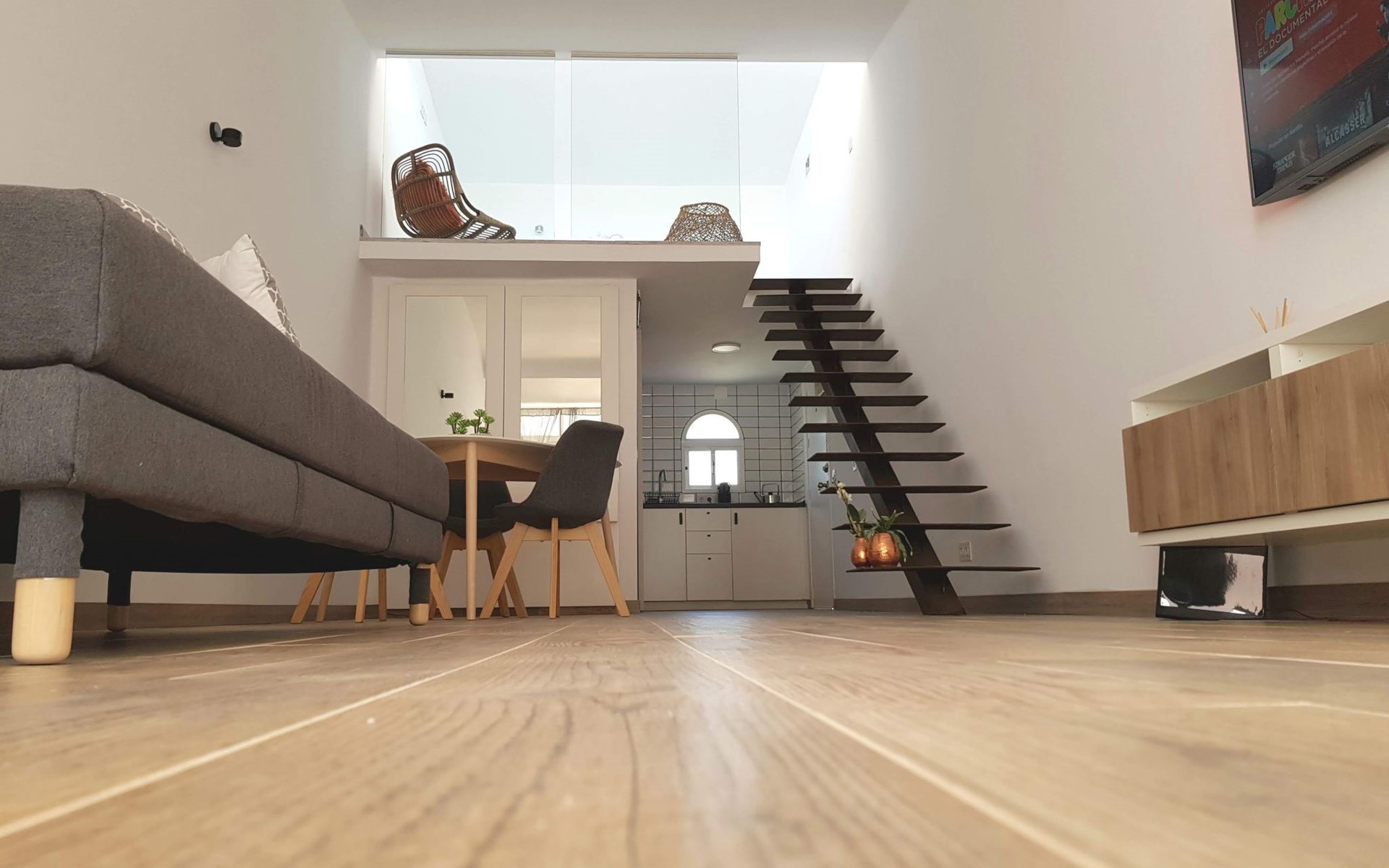 Beautiful Loft located in front of the Playa del Cristo in Estepona with capacity for 3 adults or two adults and a child, in Andalusian style urbanization, with outdoor parking, very close to the marina of Estepona and the city centre, very bright, to enjoy the views and the starry nights in its south facing terrace, to breathe the pure air of nature and enjoy walks in Estepona, the Garden of the Costa del Sol. Very quiet area.Communal garden, Solarium, Free outdoor parking.Wifi Laptop area Air conditioning Heating Washing machine Clothes hangers Iron Sheets Towels Soap Toilet paper Shampoo Hairdryer First aid kit Coffee machine Toaster Crockery TV Netflix Amazon Video Safety box100m from Playa del Cristo beach and 300m from Estepona marina, with restaurants, bars, supermarket, pharmacy, nightlife.It is a loft flat with possibility of 3 adults or 2 adults and 1 child, bathroom with relaxing shower and with a very neat aesthetic, hairdryer, washing machine, iron, Nespresso coffee machine, crockery, ceramic hob and fridge, also has two air conditioning hot / cold, fiber optic internet, Netflix, and HiFi bluetooth speakers to enjoy your favourite music. Ask about the possibility of renting your electric skateboard before you arrive and enjoy a ride around the city on an electric and uncomplicated means of transport. ESFCTU0000290360001669390000000000000000VFT/MA/34