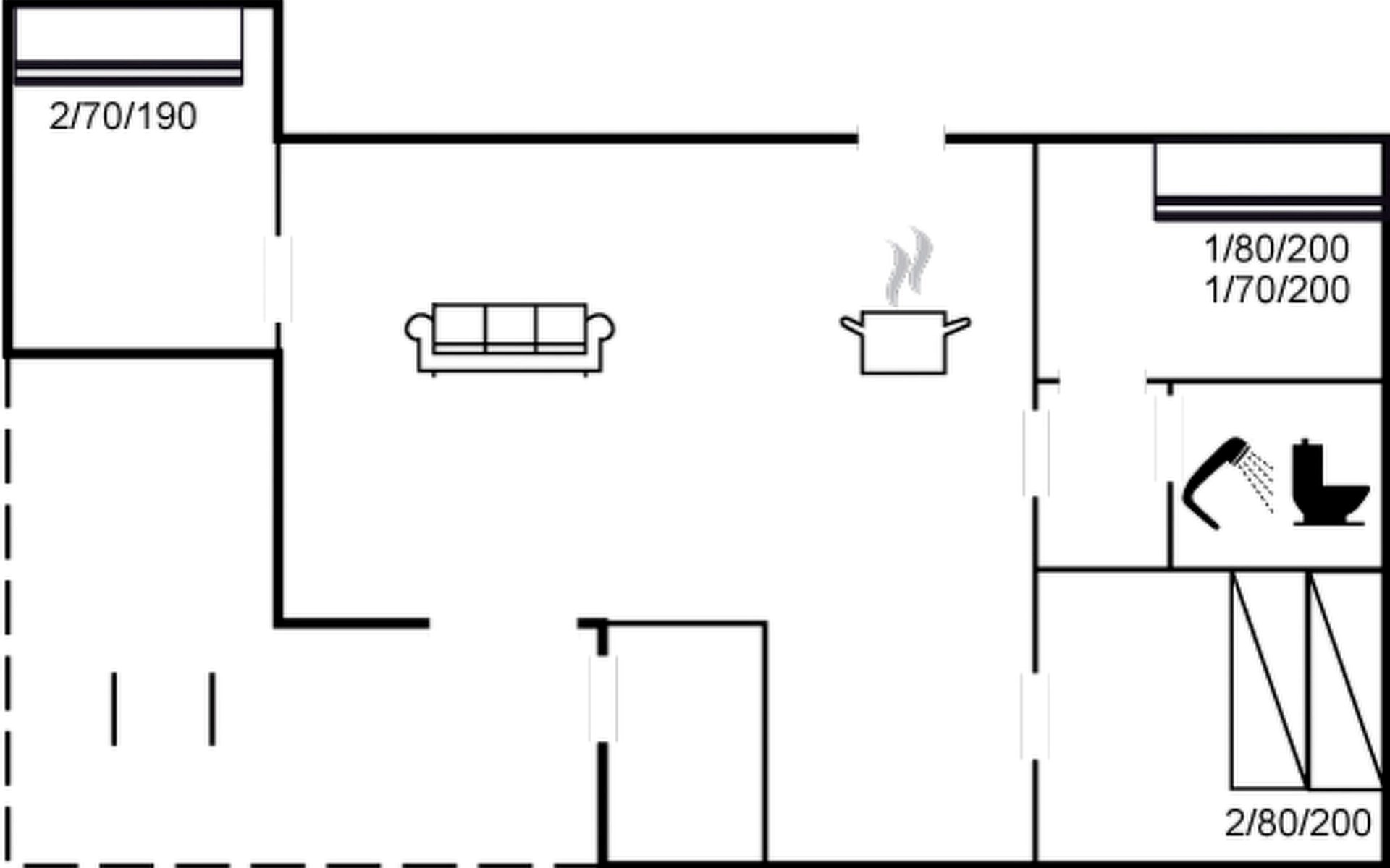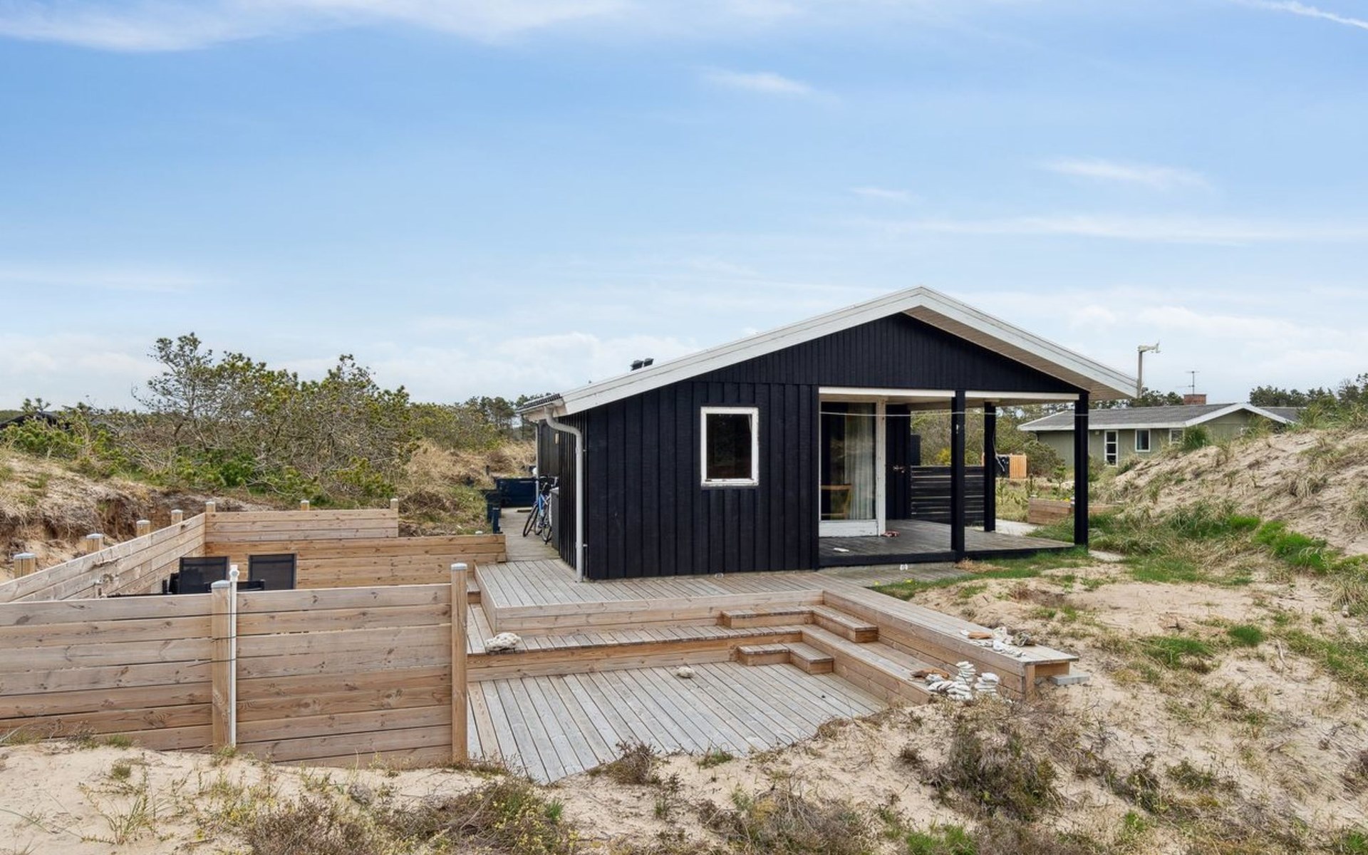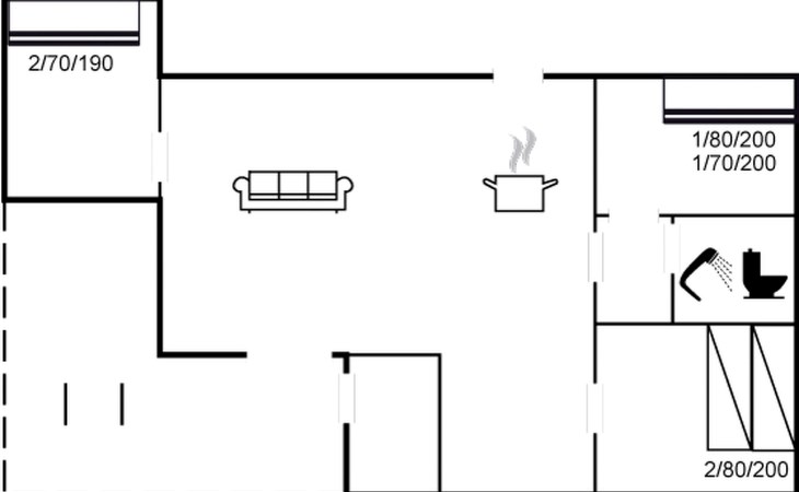 Eengezinswoning, bouwjaar 1980. 1.4 km van zee. Voor alleengebruik: wild terrein 400 m2. Terras (50 m2), barbecue. In het huis: wasmachine. Parkeerplaats bij het huis. Levensmiddelenwinkel 850 m. Golfterrein 5 km. De eigenaar accepteert geen jeugdgroepen.