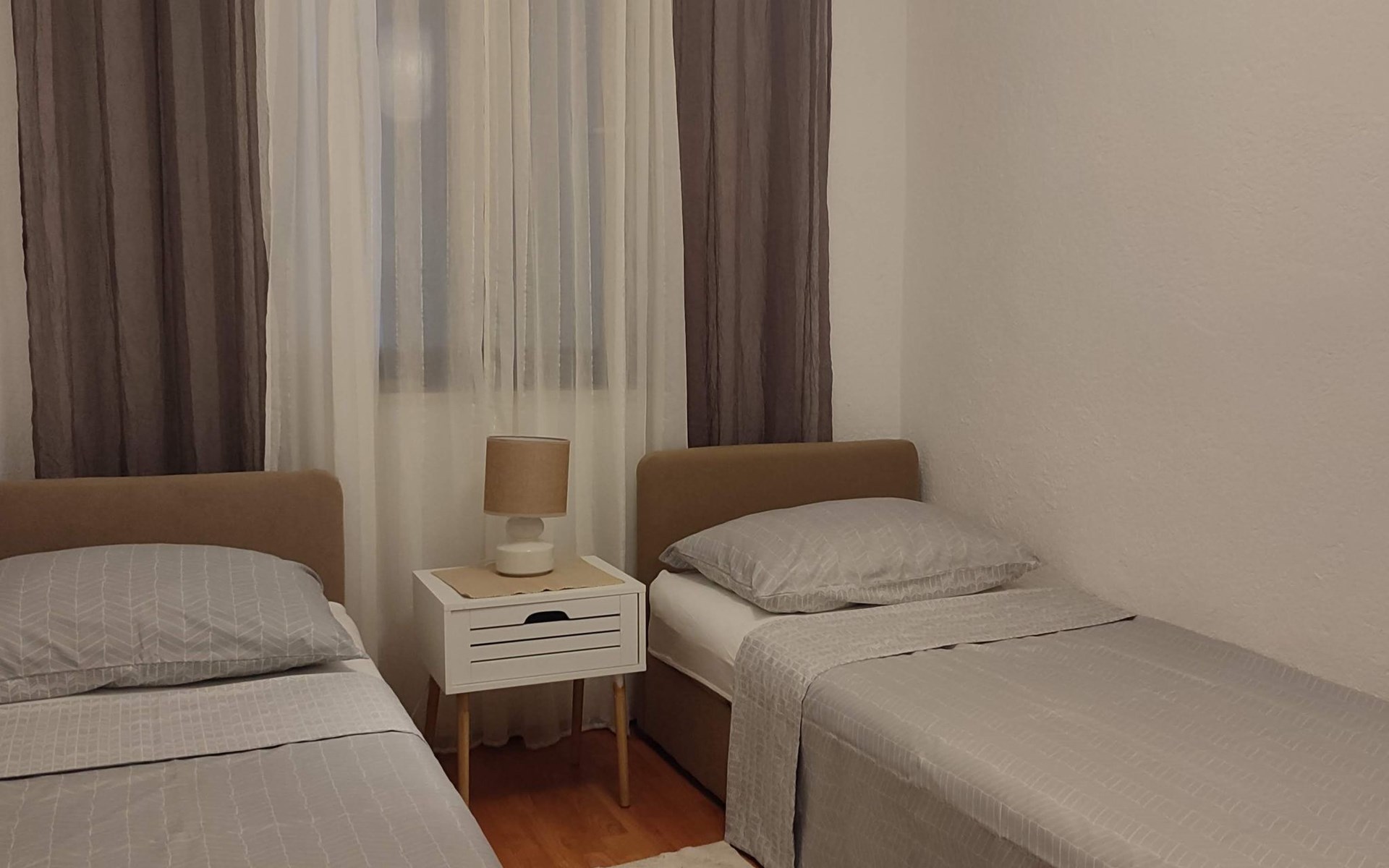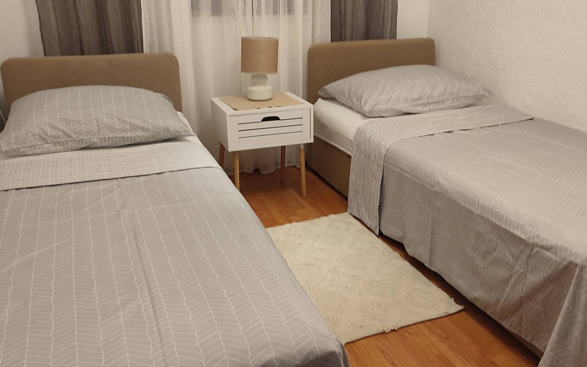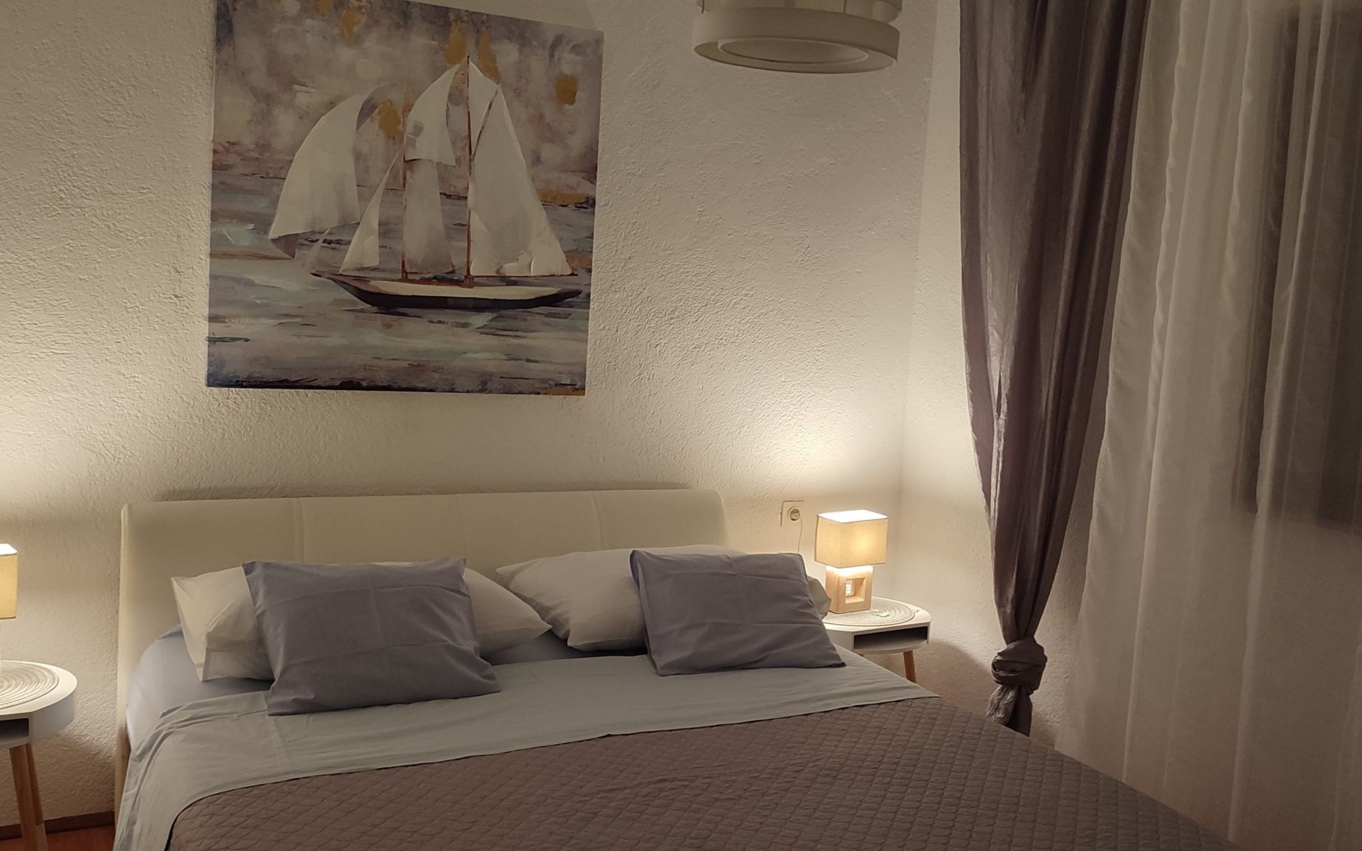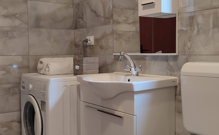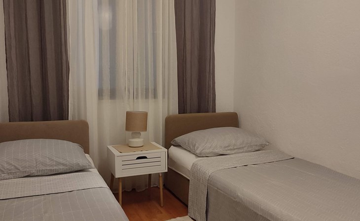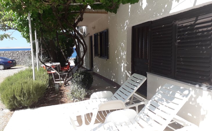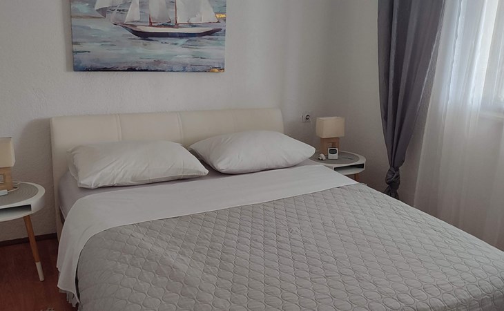 Welcome to Apartment Beli 1, located in the peaceful and picturesque village of Tribanj, just 13 km north of Starigrad Paklenica. This spacious 65 m^2 apartment is located on the ground floor of a family holiday home and offers the perfect oasis of peace ideal for a family holiday. Given its isolated position in a bay with crystal clear sea and surrounded by natural beauty, this accommodation is an ideal retreat for anyone looking for privacy and relaxation, but also for those looking for an active holiday and adventure in the Paklenica National Park.The apartment boasts a large kitchen and living room equipped with two sofa beds for relaxation and the possibility of additional accommodation, making it perfect for families or groups of friends. There are two bedrooms, one with a French bed measuring 160X200 cm and the other with two single beds measuring 90X200 cm, providing comfortable accommodation for up to four people. The bathroom is equipped with a shower and a washing machine, and the apartment also includes all necessary appliances, bed linen, free air conditioning, satellite TV and Wlan.Enjoy the outdoor space that offers two terraces; one under the vine with garden furniture ideal for outdoor meals and socializing, and the other under the arches with a direct view of the sea. Guests have access to an outdoor barbecue for preparing meals outdoors and free parking, making this accommodation the perfect choice for a relaxing holiday by the sea.The location of Apartment Beli 1 is extremely convenient for various excursions and activities. Whether you decide to visit the Paklenica National Park, explore the historical sights of Zadar and Šibenik, enjoy the crystal clear sea or explore the beautiful Plitvice Lakes, all of this is within easy reach. Also, given the proximity of Starigrad where you can enjoy evening entertainment, fish market, restaurants and beaches, this apartment offers everything you could need for an unforgettable holiday.Indulge in the charms of Apartments Beli 1, where peace, privacy and comfort make the perfect combination for your next vacation. Whether you want to explore the beauties of the Croatian coast and national parks or are simply looking for a place to relax and enjoy nature away from the hustle and bustle of the city, this is the ideal place for you. Book your stay now and create memories that will last forever.