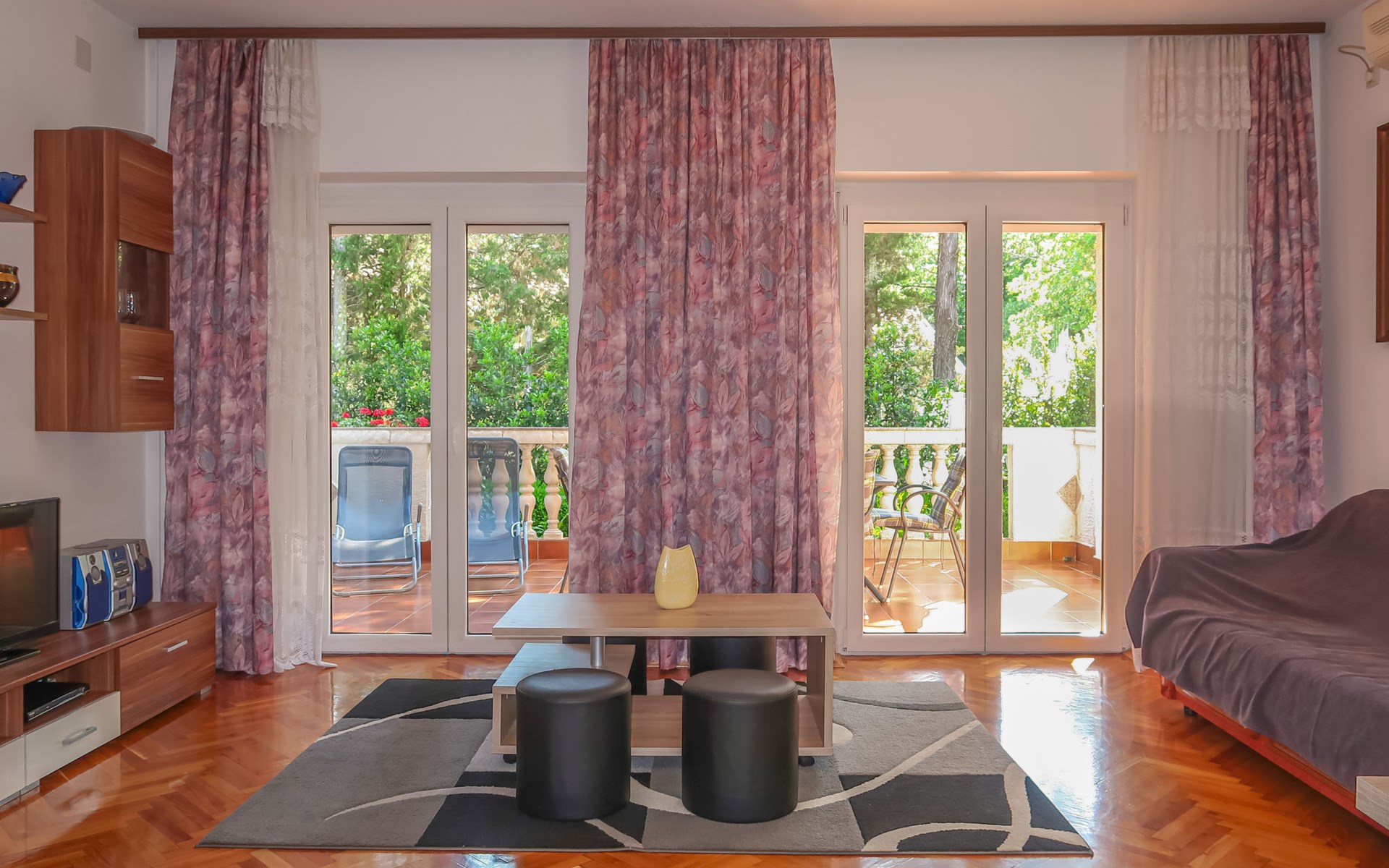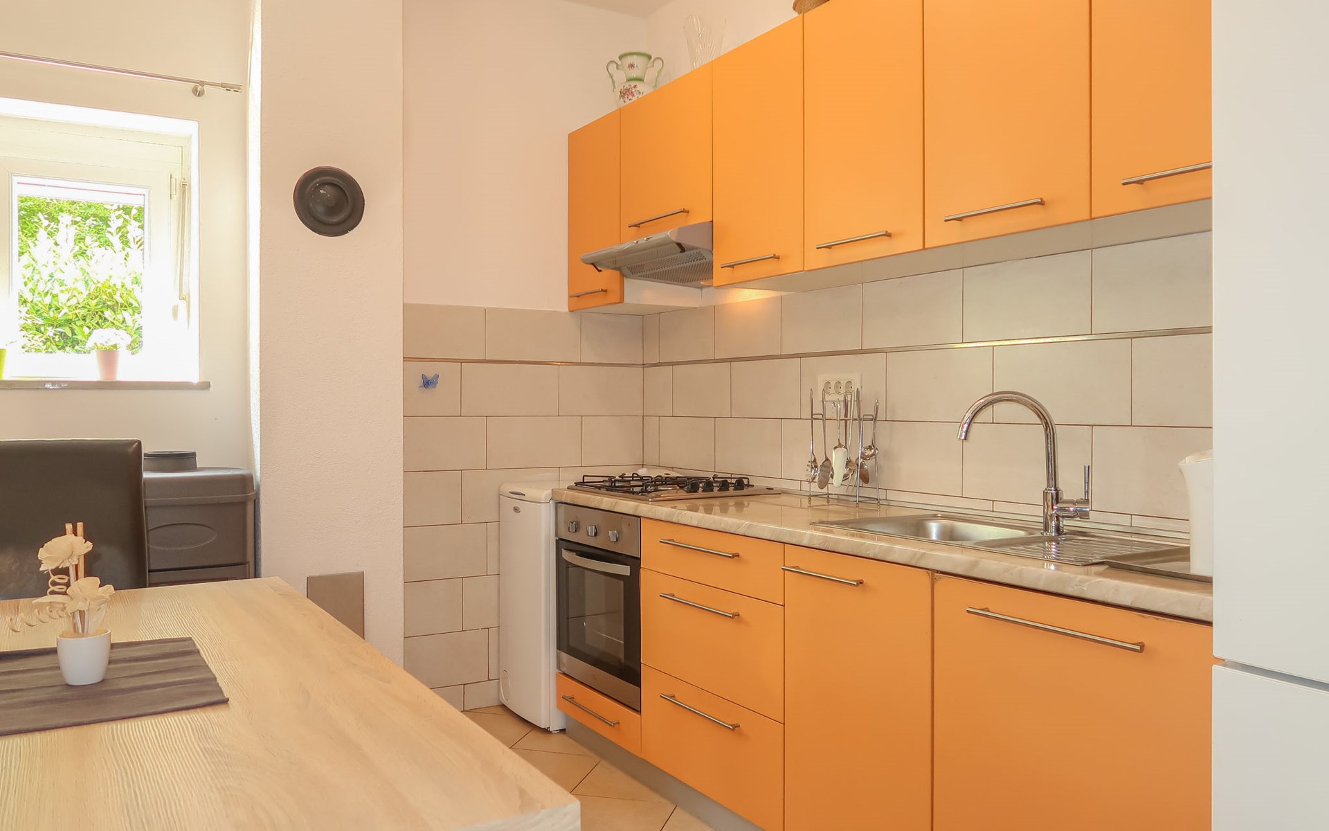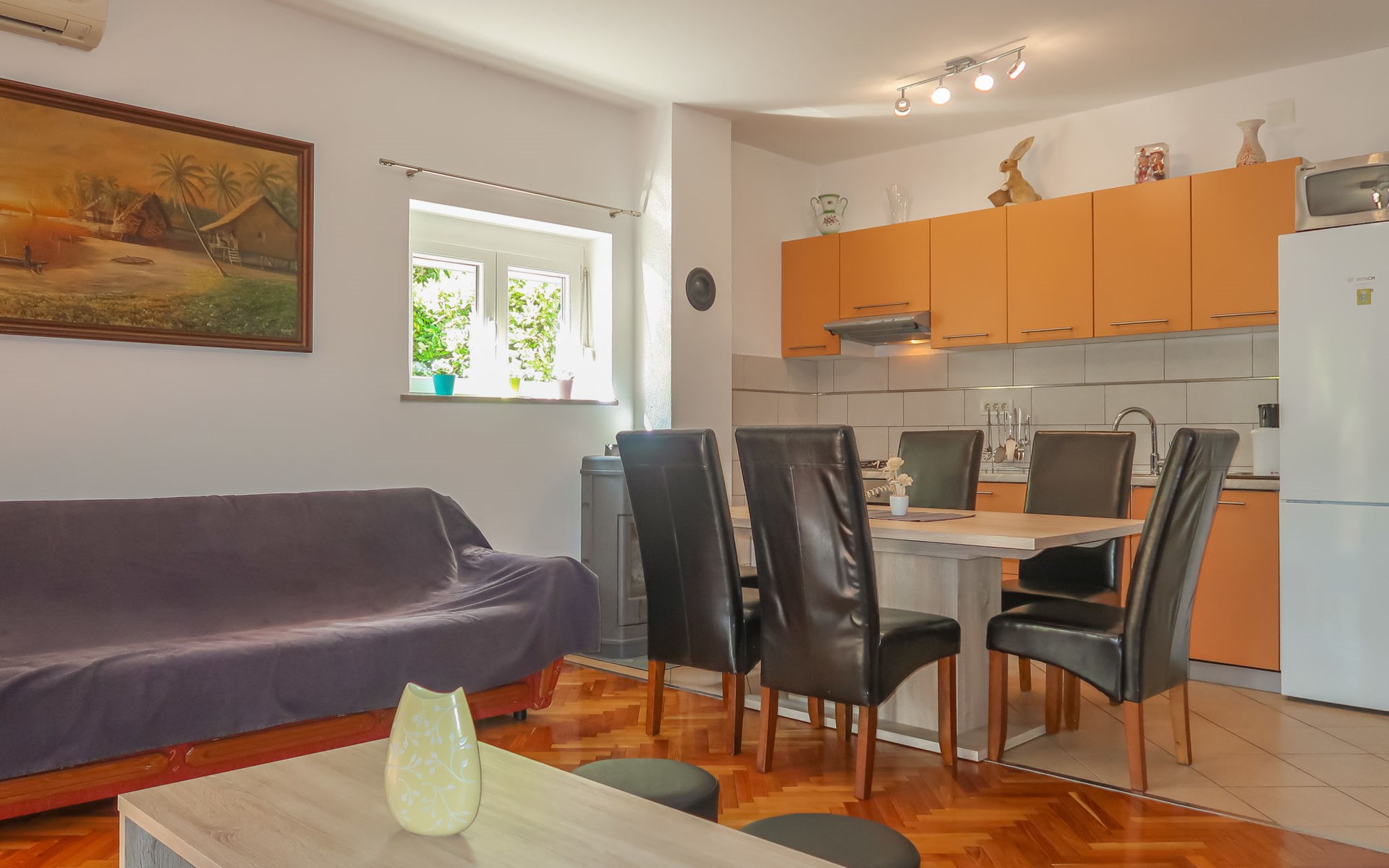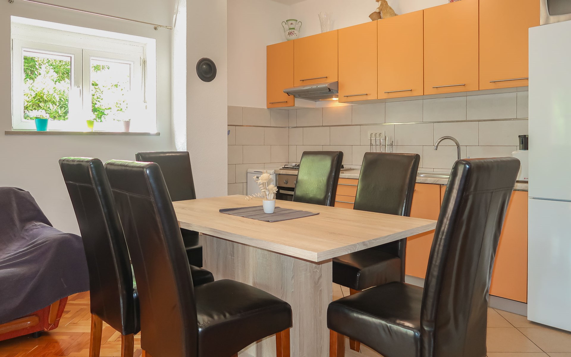 Twee onder één kap woning "Mila". 1.5 km van het centrum van Jadranovo, 7 km van het centrum van Dramalj, 13 km van het centrum van Crikvenica, 250 m van zee, 250 m van het strand, aan een doodlopende weg. Voor medegebruik: terrein 500 m2 met bomen. In het huis: internetaansluiting. Parkeerplaats op het terrein. Winkel 500 m, bushalte 550 m, kiezelstrand 250 m. Vliegveld 14 km van het huis.