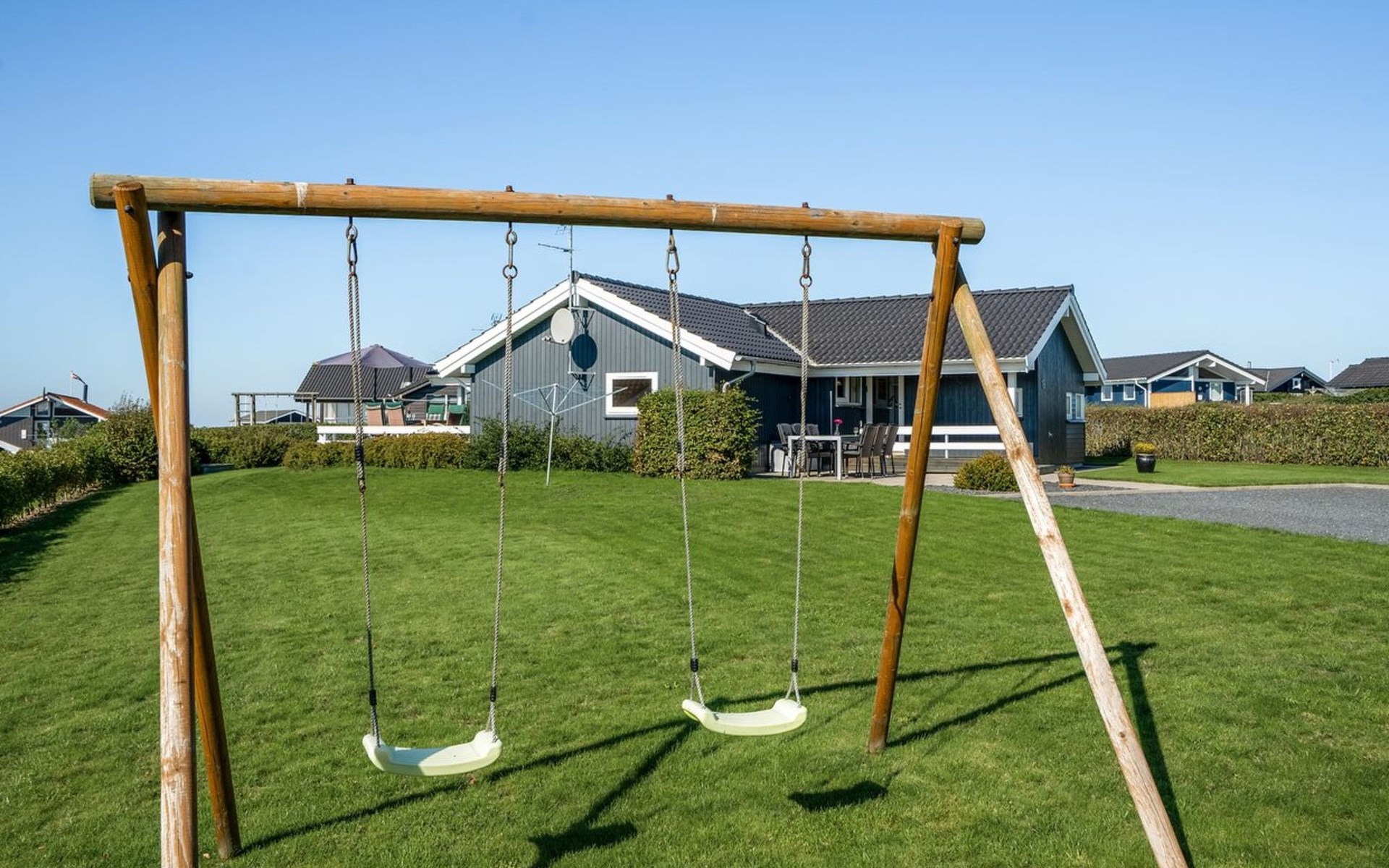 Eengezinswoning, bouwjaar 2005. Voor alleengebruik: terrein 1.000 m2, verzorgde tuin. Terras (55 m2), kinderspeelplaats (schommel). In het huis: sauna, wasmachine. Parkeerplaats bij het huis. Levensmiddelenwinkel 500 m. De eigenaar accepteert geen jeugdgroepen.