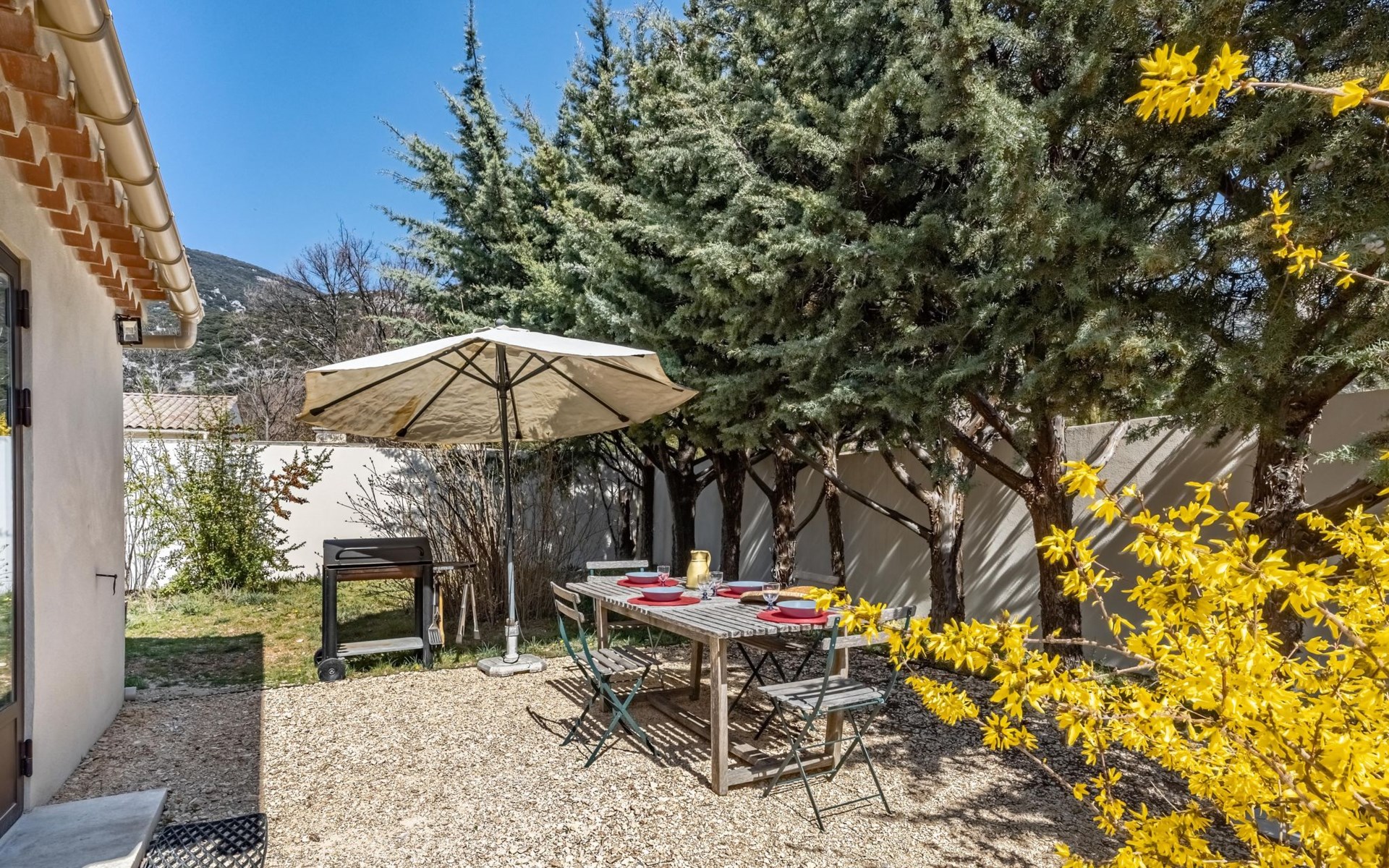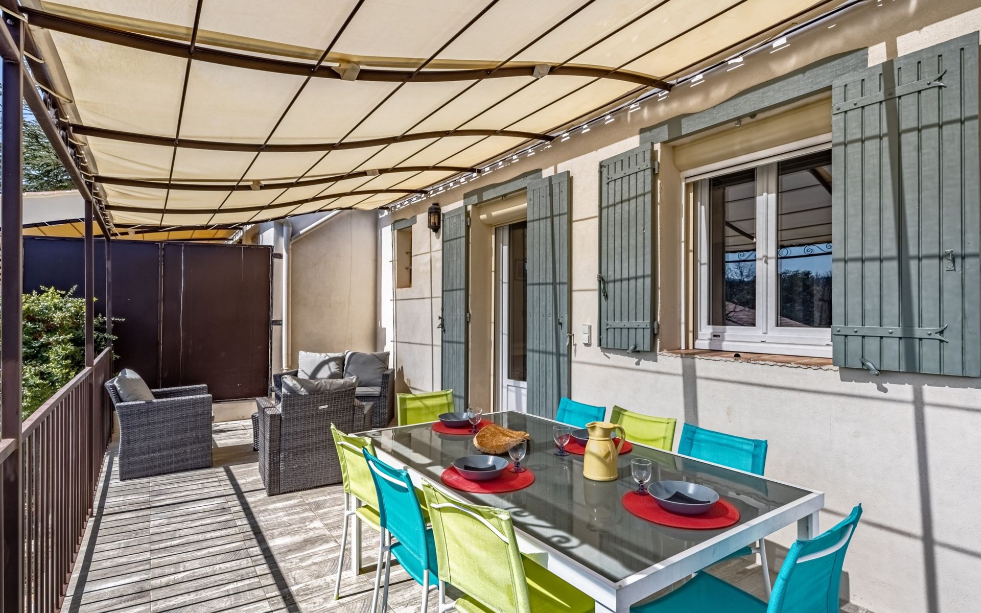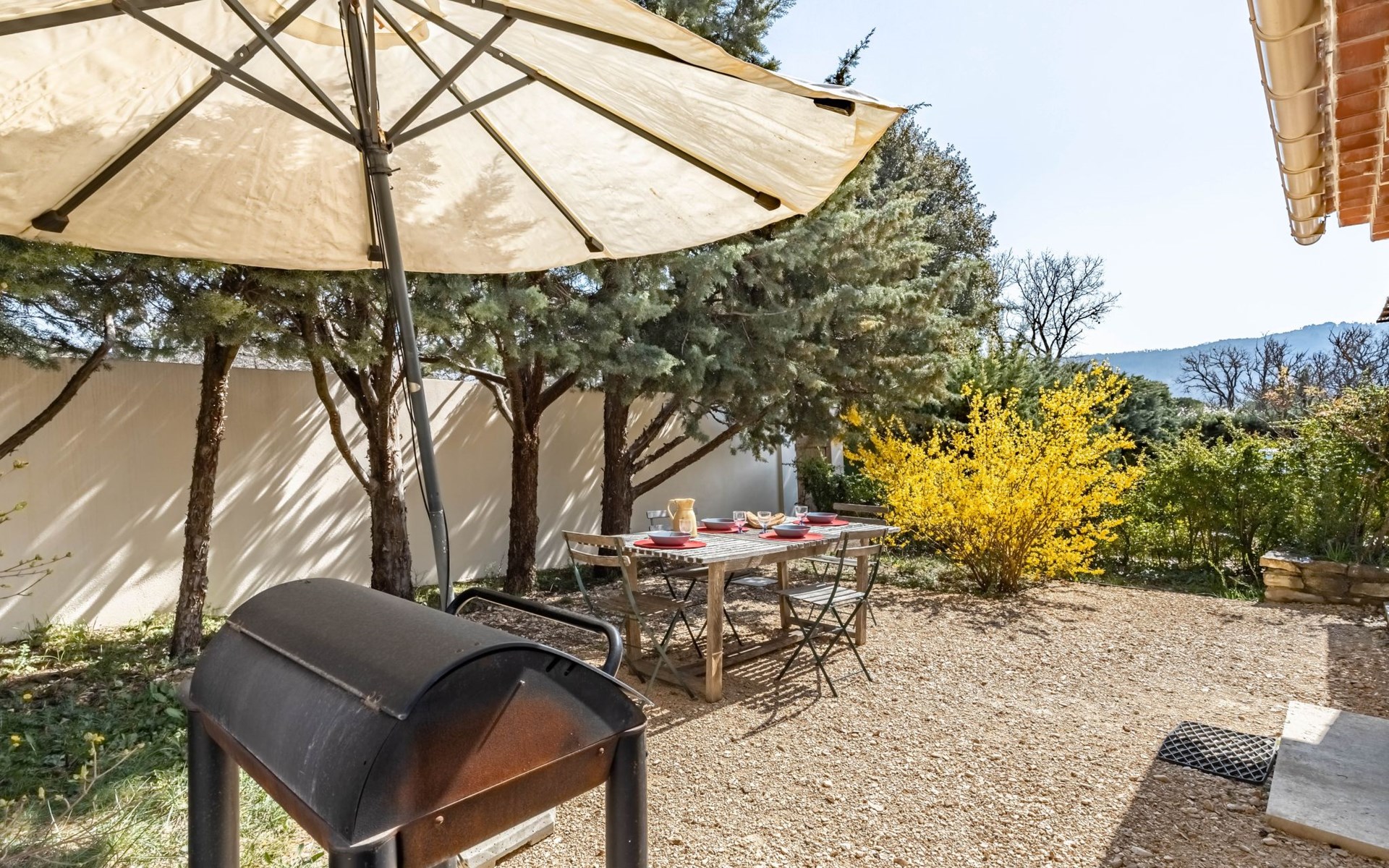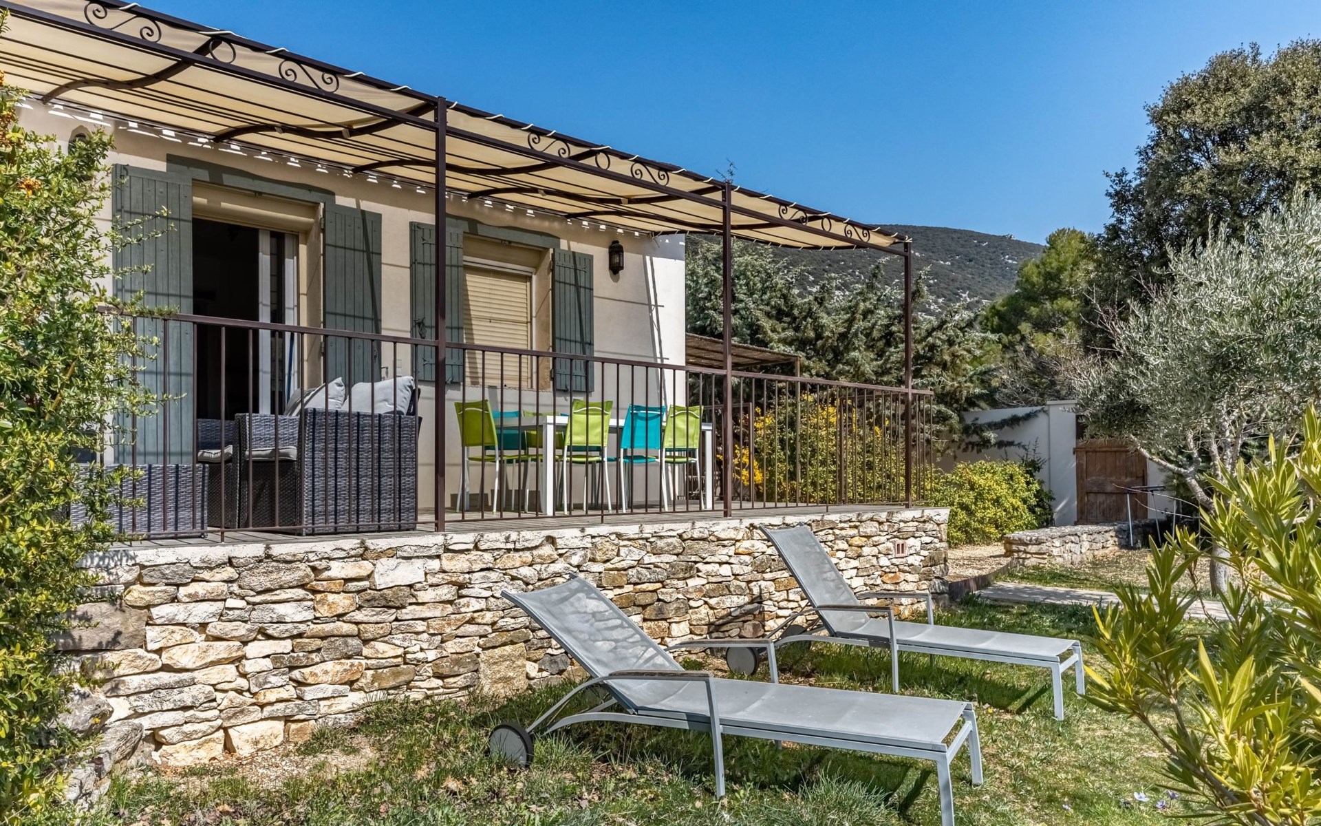 Mooi rijtjeshuis "La campagne du Colorado". Voor alleengebruik: verzorgde tuin 800 m2 (omheind) met planten, openluchtzwembad (verhoogd) (5 m diameter, seizoensgebonden beschikbaarheid: 01.Jul. en 15.Sep.). Terras, tuinmeubelen, barbecue, grill, onderhoud zwembad door de eigenaar/tuinman. Overdekte parkeerplaats (voor 2 auto's). Winkel 10 km, levensmiddelenwinkel 500 m, supermarkt 10 km, restaurant 1 km, bakkerij 750 m, café 1 km, fietsverhuur 11 km, bushalte "Centre Ville" 700 m, openluchtzwembad 1 km. Golfterrein (9 holes) 6 km, tennis 14 km, manege 5 km, kinderspeelplaats 20 km. Attracties in de buurt: Apt 10 km, Avignon 60 km, L'Isle sur la sorgue 45 km, Bonnieux 27 km, Gordes 27 km. Bekende meren kunnen gemakkelijk worden bereikt: Plan d'eau de la Riaille 13 km. Wandelgebied Luberon 17 km, Colorado Provençal 700 m, Forêt des Cèdres 28 km. Auto noodzakelijk.