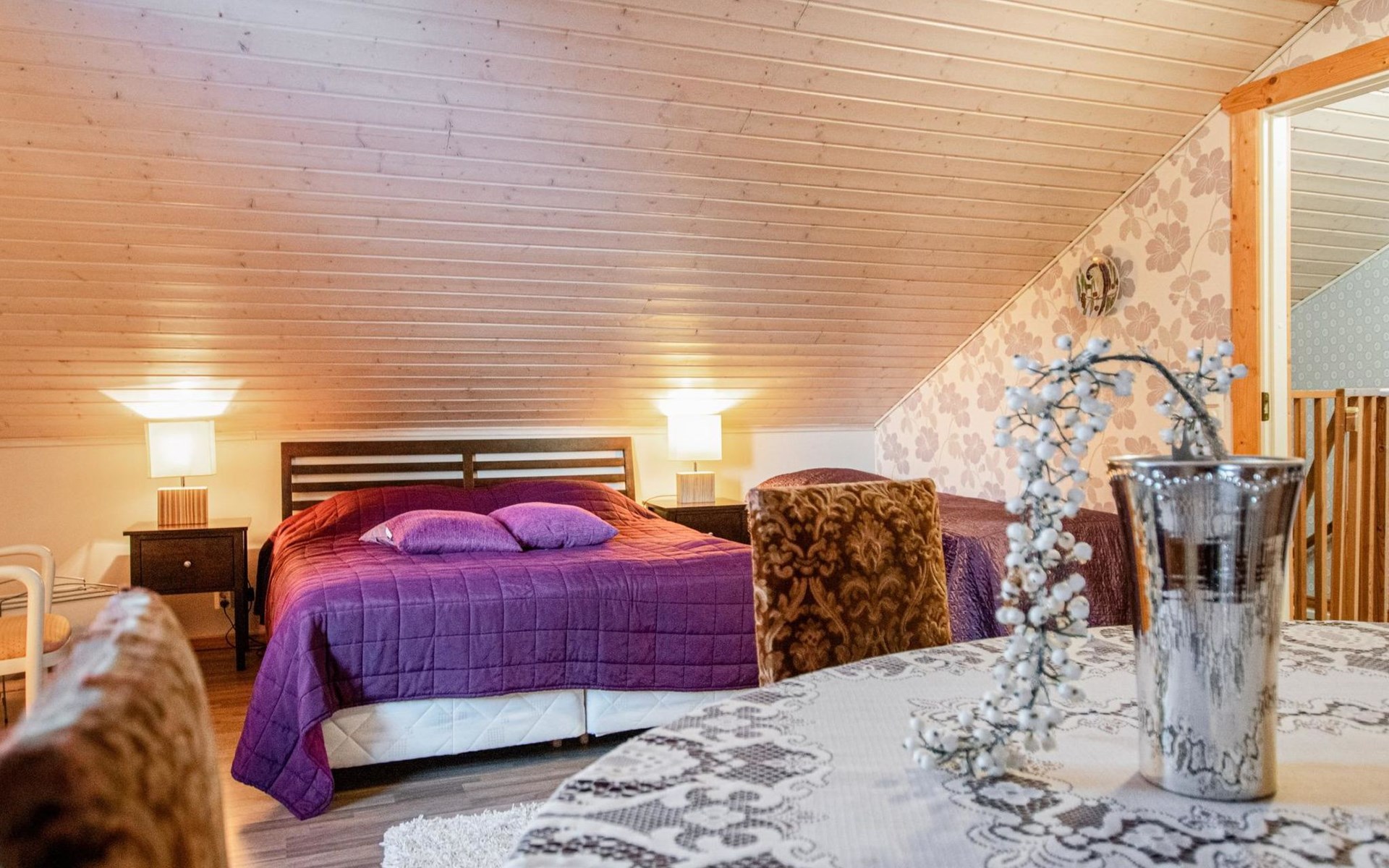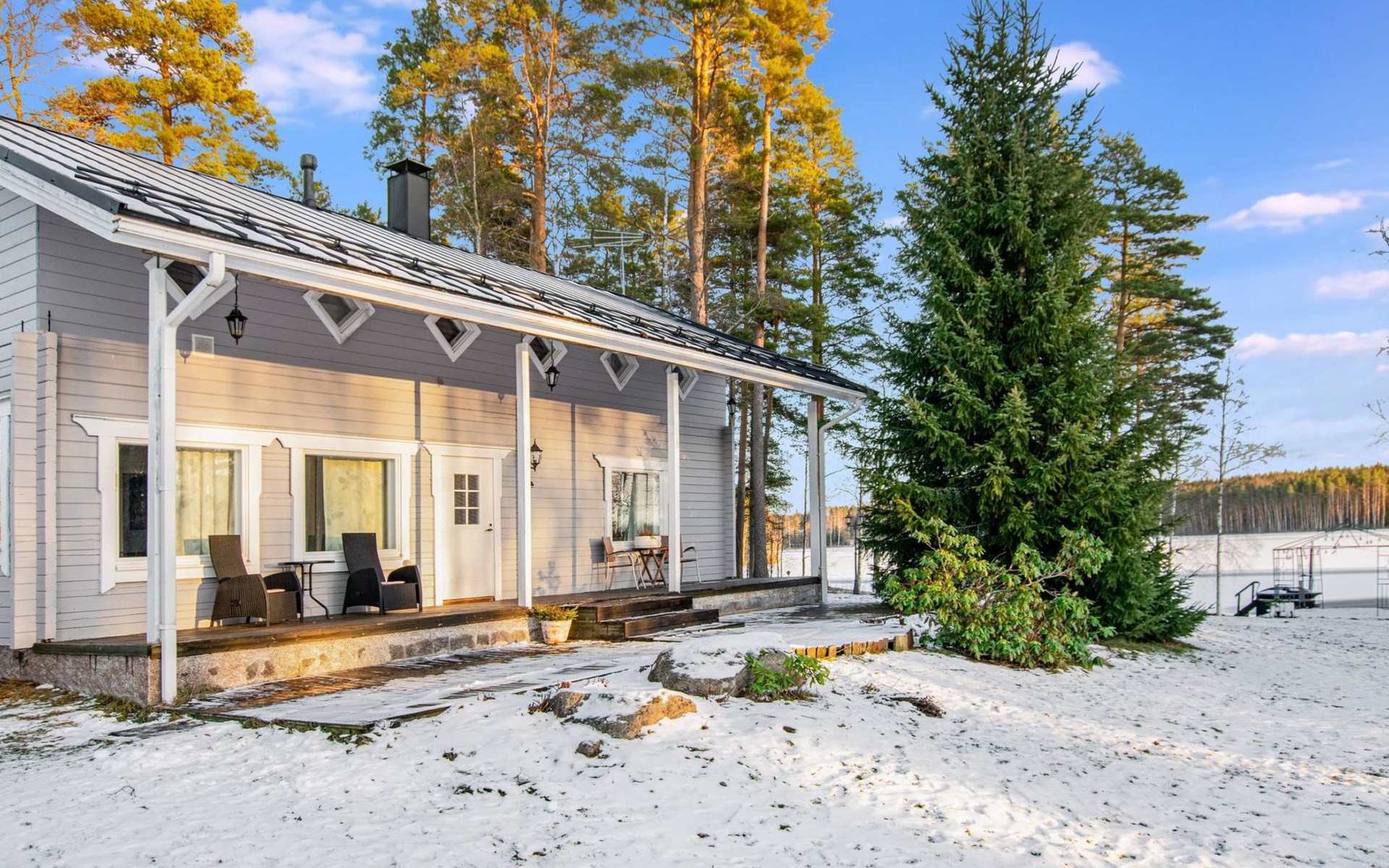 Located 100 km north of Tampere, 40 m from Lake Nerkoonjärvi, own pier, rowing boat, and outboard motor.