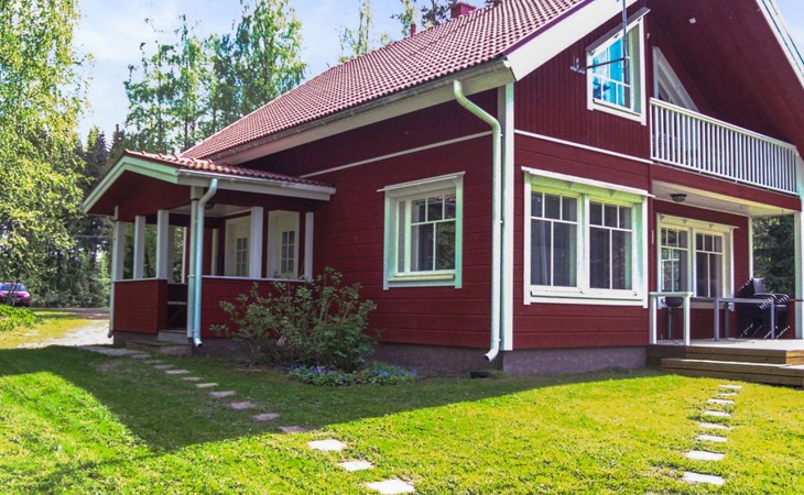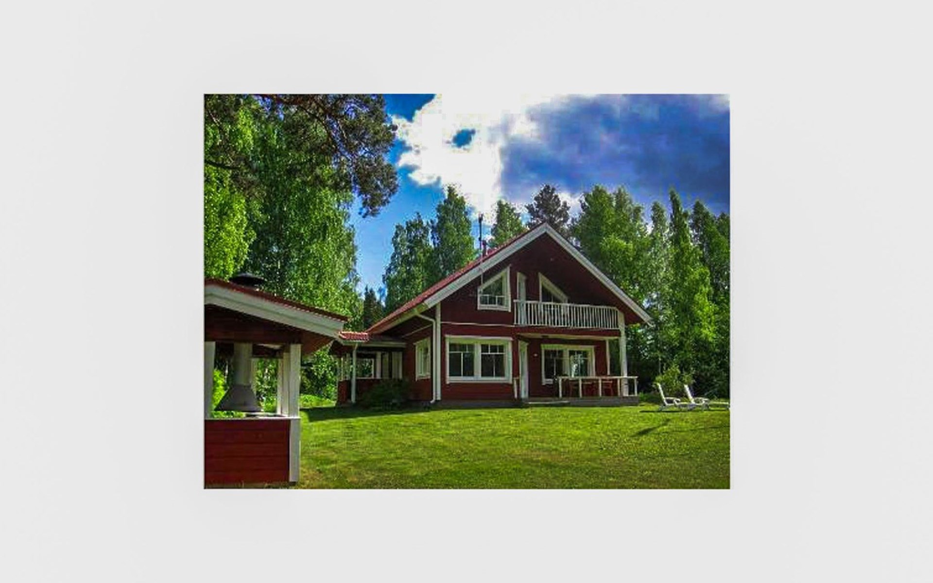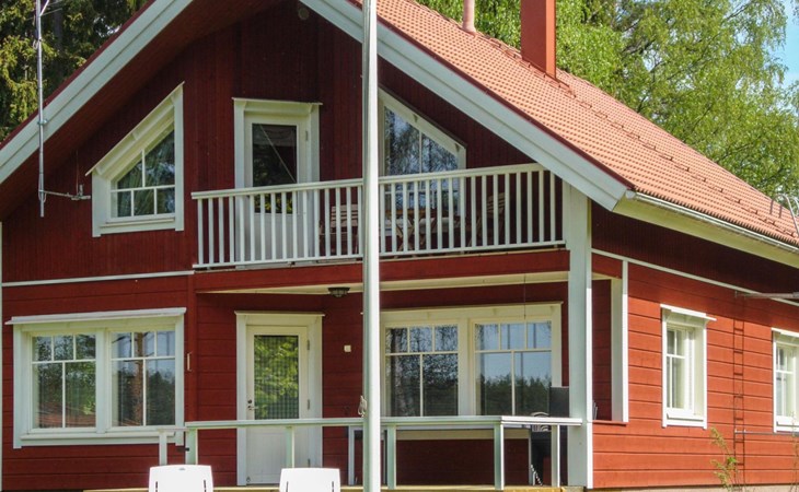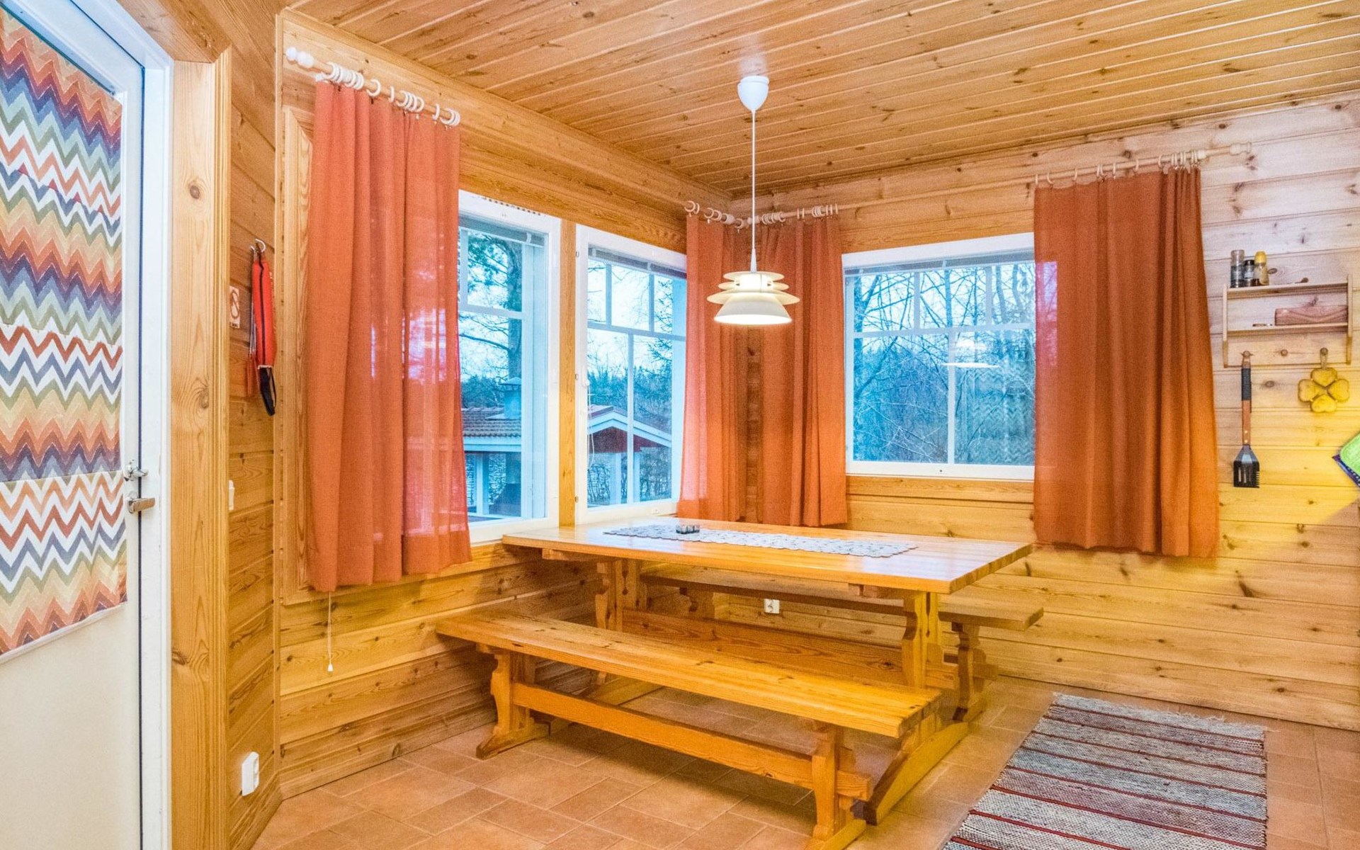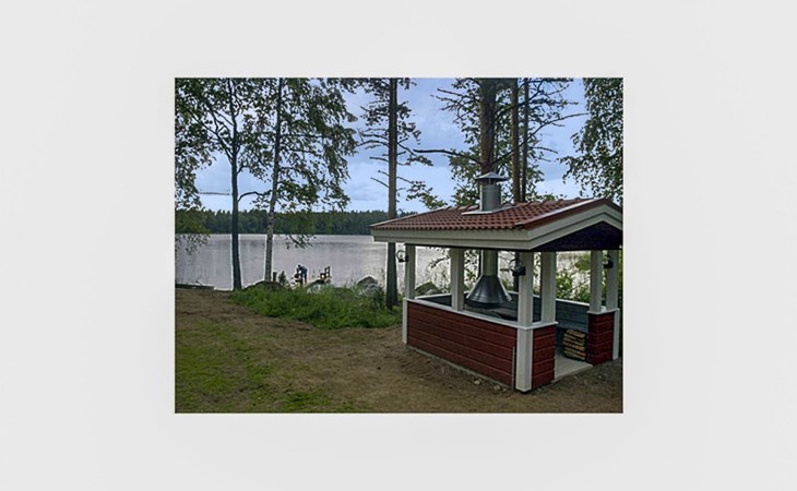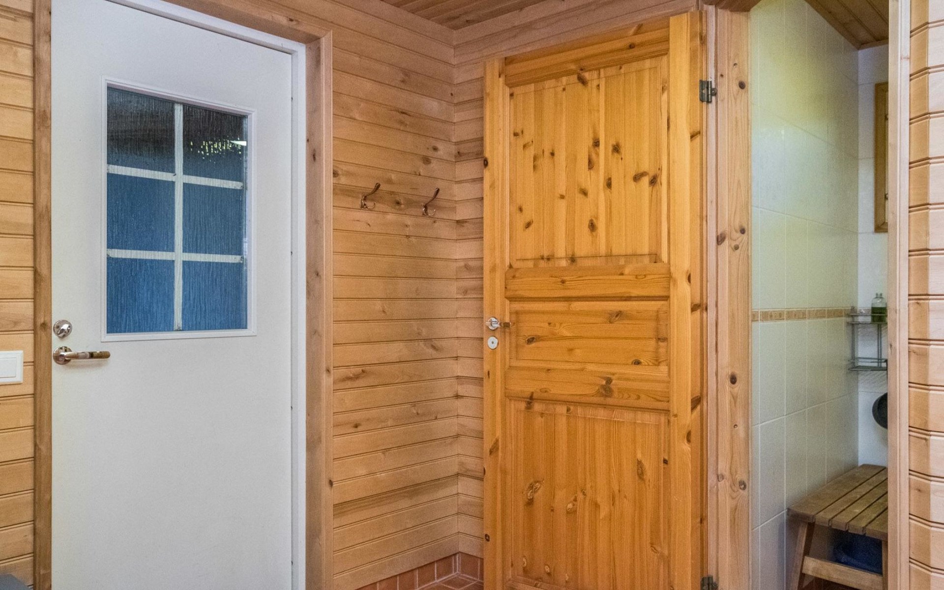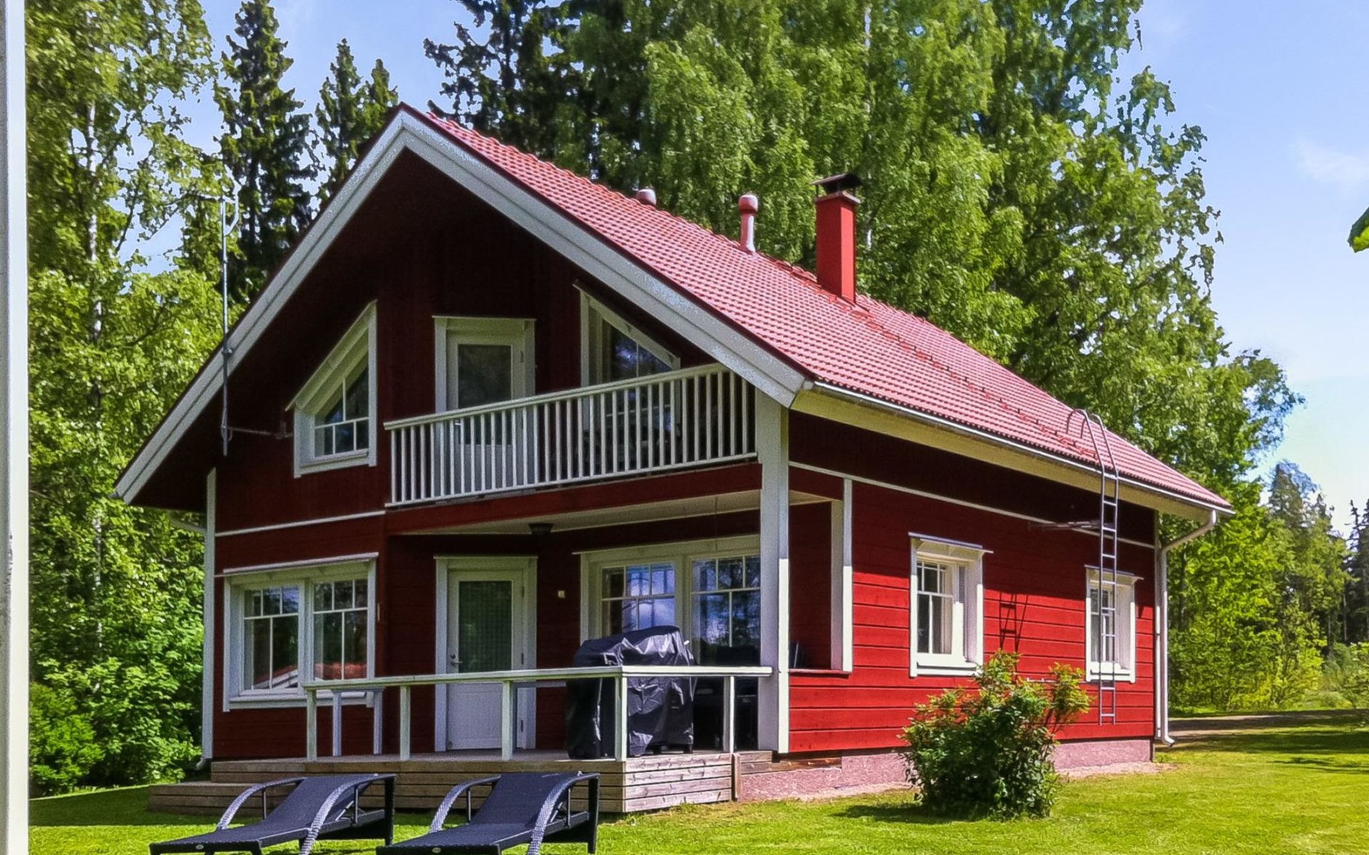 Log-panelled chalet 2002, living room/kitchen, bedroom with double bed, upstairs 2 bedrooms with 2 beds in each, upstairs hall area with convertible sofa, dressing room, washroom, sauna renovated 2016 (elec. stove), toilet, 2 x porch.
