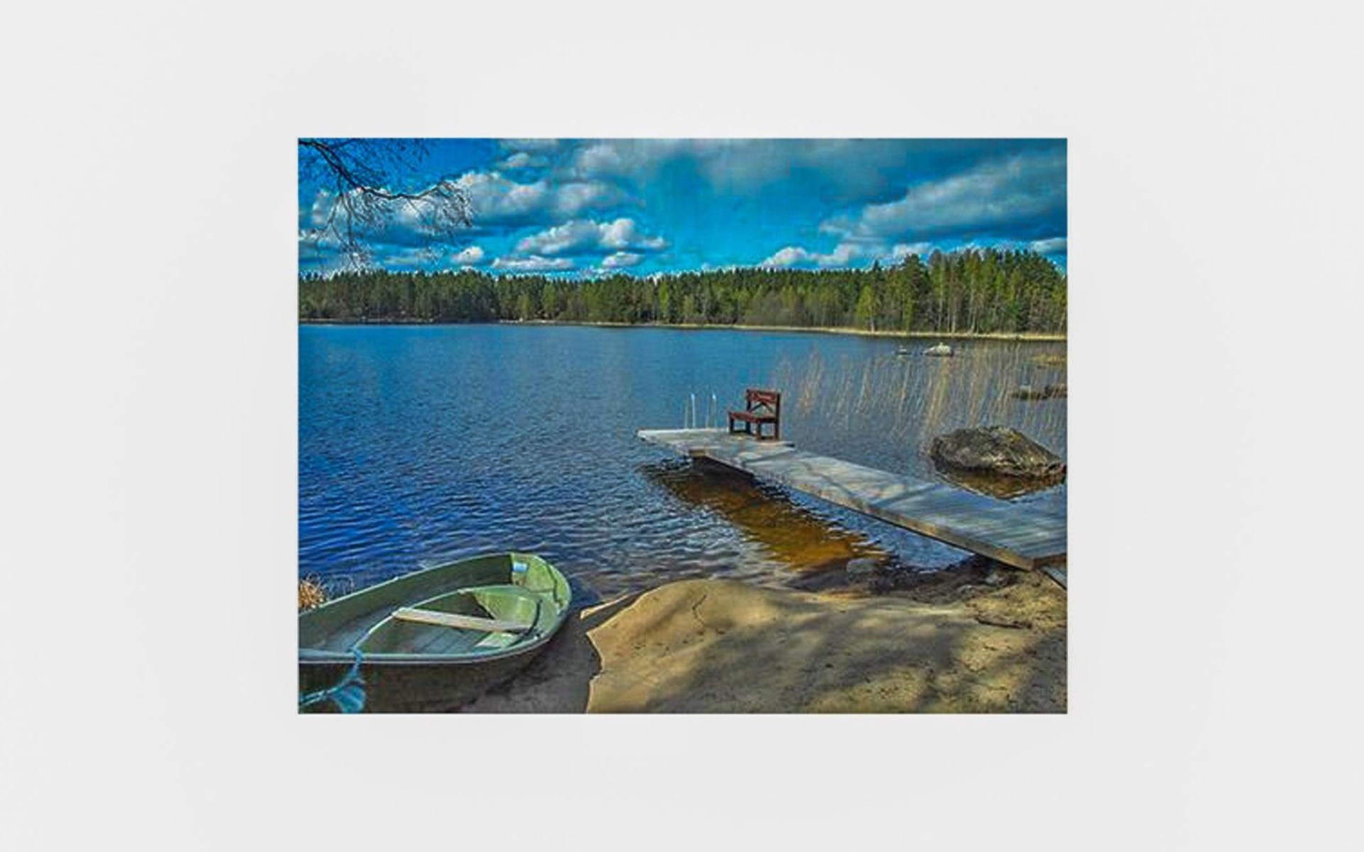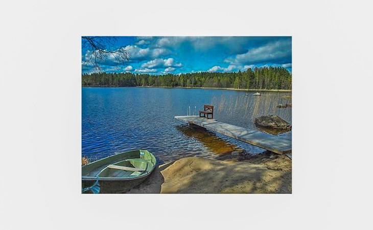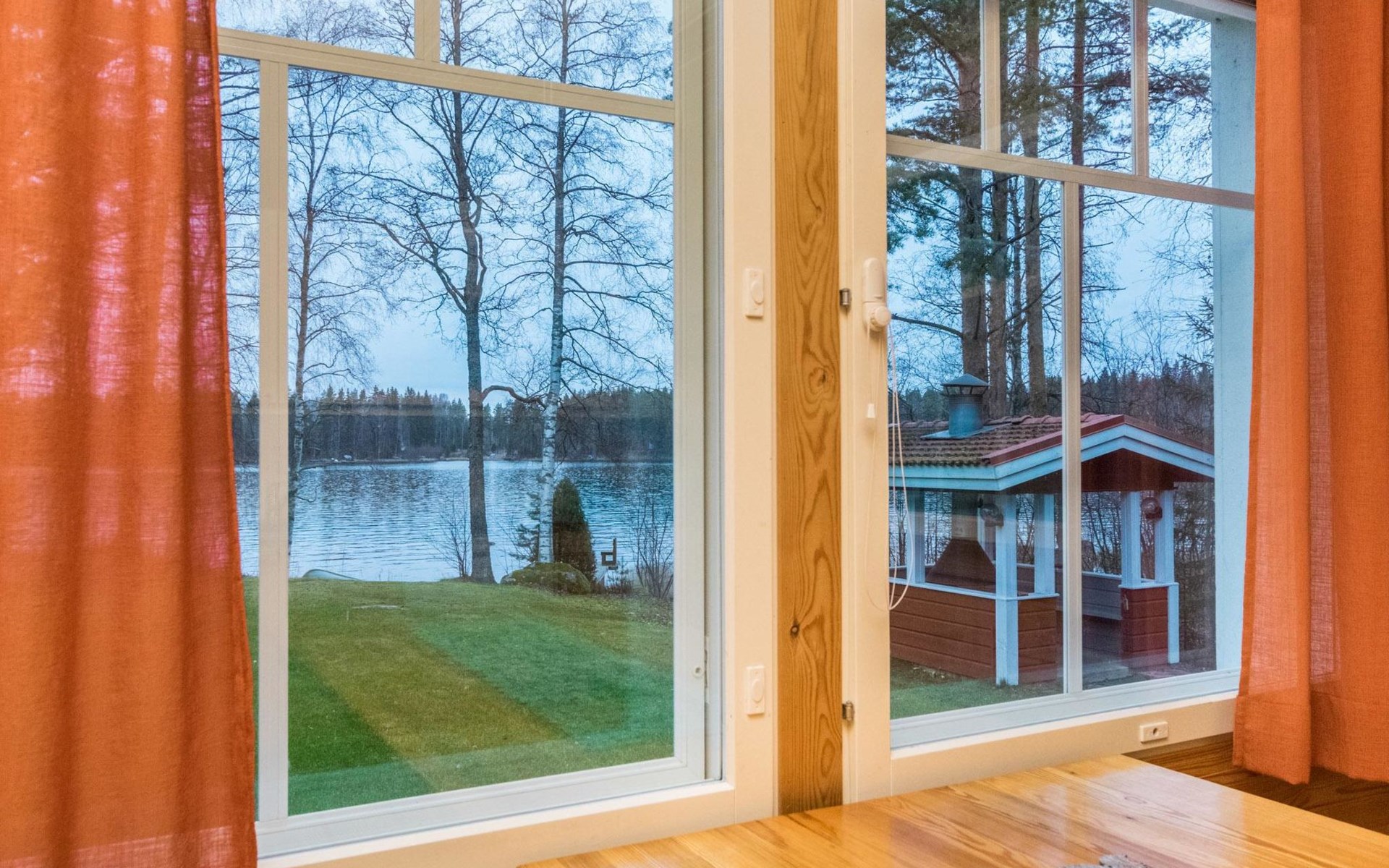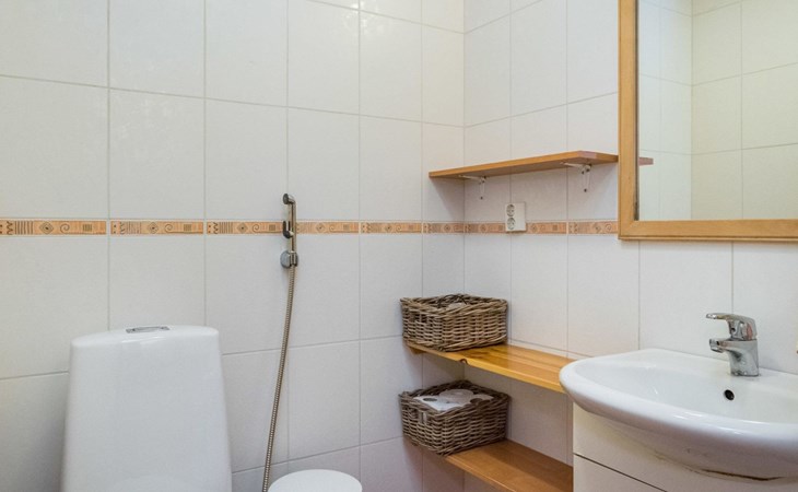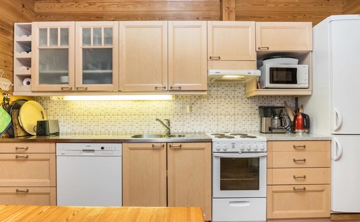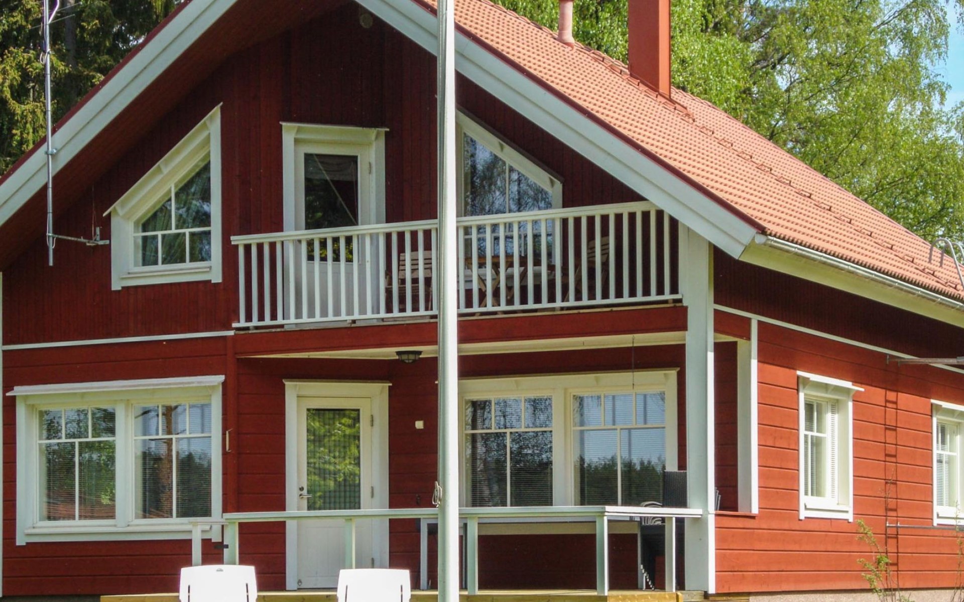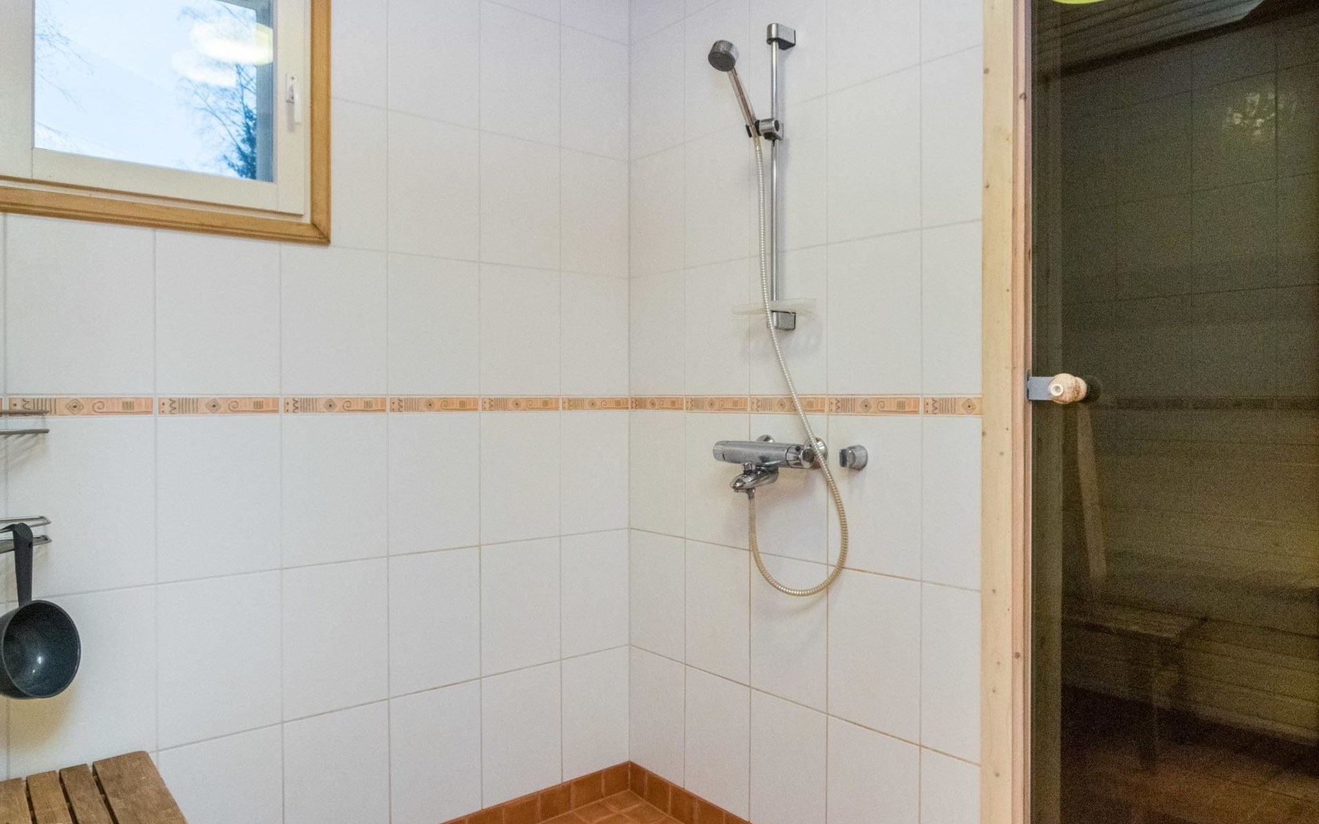 Log-panelled chalet 2002, living room/kitchen, bedroom with double bed, upstairs 2 bedrooms with 2 beds in each, upstairs hall area with convertible sofa, dressing room, washroom, sauna renovated 2016 (elec. stove), toilet, 2 x porch.
