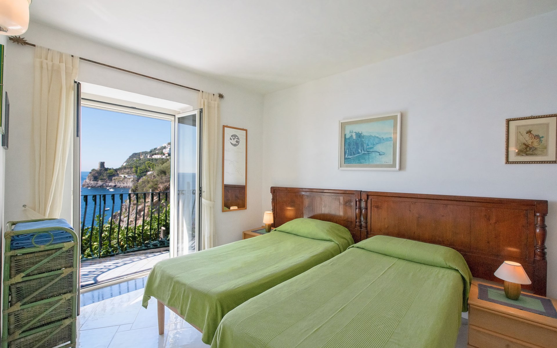 Furore 8 km van Amalfi: Mooi, gezellige villa "Il Corallo", omgeven door bomen. 2 huizen in de woning. Tegen een helling, villa wijk, 50 m van zee, van het strand, directe toegang tot het strand, op het zuidoosten. Voor medegebruik: openluchtzwembad (4 x 7 m, 70 - 150 cm diepte, seizoensgebonden beschikbaarheid: 15.Apr. - 15.Okt.) met trap. Buitendouche. Voor alleengebruik: tuin op verschillende niveaus, 300 m2 (omheind) met bloemen en bomen, boomgaard (omheind). In het huis: Internet (WiFi), fitnessruimte, zonneterras, air-conditioning, wasmachine, Verwarming ter plaatse te betalen, verwarming alleen beschikbaar van 01.Nov. - 31.Mrt.. 2 maal per week schoonmaak (incl.). Boodschappenpakket mogelijk bij aankomst. Luchthaventransfer (extra). Parkeerplaats (voor 2 auto's) bij het huis. Parkeerplaats of garage alleen voor een kleine/middelgrote auto. Winkel 1 km, levensmiddelenwinkel 1 km, supermarkt 1 km, restaurant 1 km, bushalte 30 m, treinstation "Sorrento" 20 km, veerboot "Positano" 11 km, kiezelstrand "La Praia" 1 km. Attracties in de buurt: Praiano 4 km, Amalfi 8 km, Ravello 11 km, Salerno 25 km, Pompei 50 km, Napoli 60 km. Auto noodzakelijk, geen lift. Laden en lossen van de baggage is mogelijk bij het huis. Gesloten residentie met een elektrische deur.
