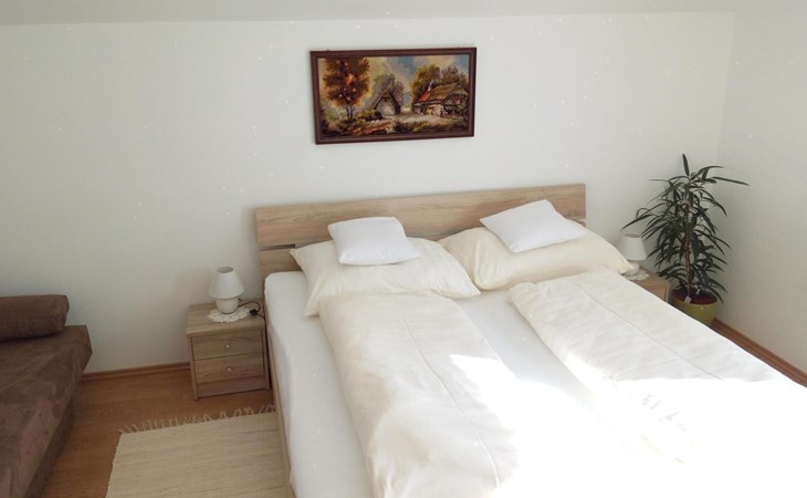 Op 120m² is een welzijn-oase op de begane grond en de eerste verdieping ontstaan voor max. 10 personen. Na een spannende dag voor volwassenen en kinderen kunt u zich in de twee appartementen, met woonkeukens, waarvan één met een grote bank, verheugen op een gezamenlijk spel. Een houtkachel zorgt voor een gezellige sfeer. Terwijl iemand in de volledig uitgeruste keuken met 4-kookplaten fornuis en oven, koffiezetapparaat en koelkast met vriesvak per keuken een ontbijt, lunch of diner voorbereid, kunnen de andere gasten een spannende film kijken (SAT-TV aanwezig) of via het internet hun ervaringen delen met vrienden. Voor uw aangename nachtrust staan twee aparte slaapkamers met tweepersoonsbedden ter beschikking, waarbij één slaapkamer op de eerste verdieping een balkon met uitzicht op de omliggende bergen biedt. Deze kamer kan naar wens met een vijfde bed worden uitgerust. In de ruime badkamer kunt u heerlijk ontspannen met een douche en massage-jets. Het onderste appartement beschikt evenzo over twee aparte slaapkamers, waarbij één kamer kan worden uitgebreid met een slaapbank.