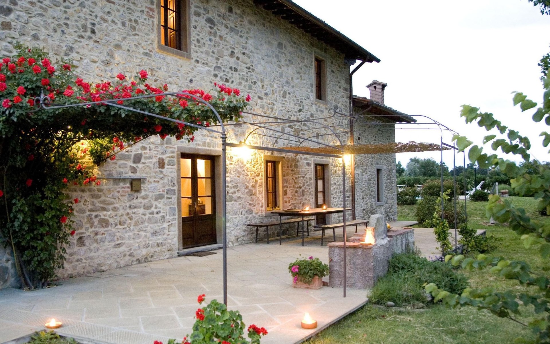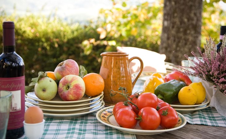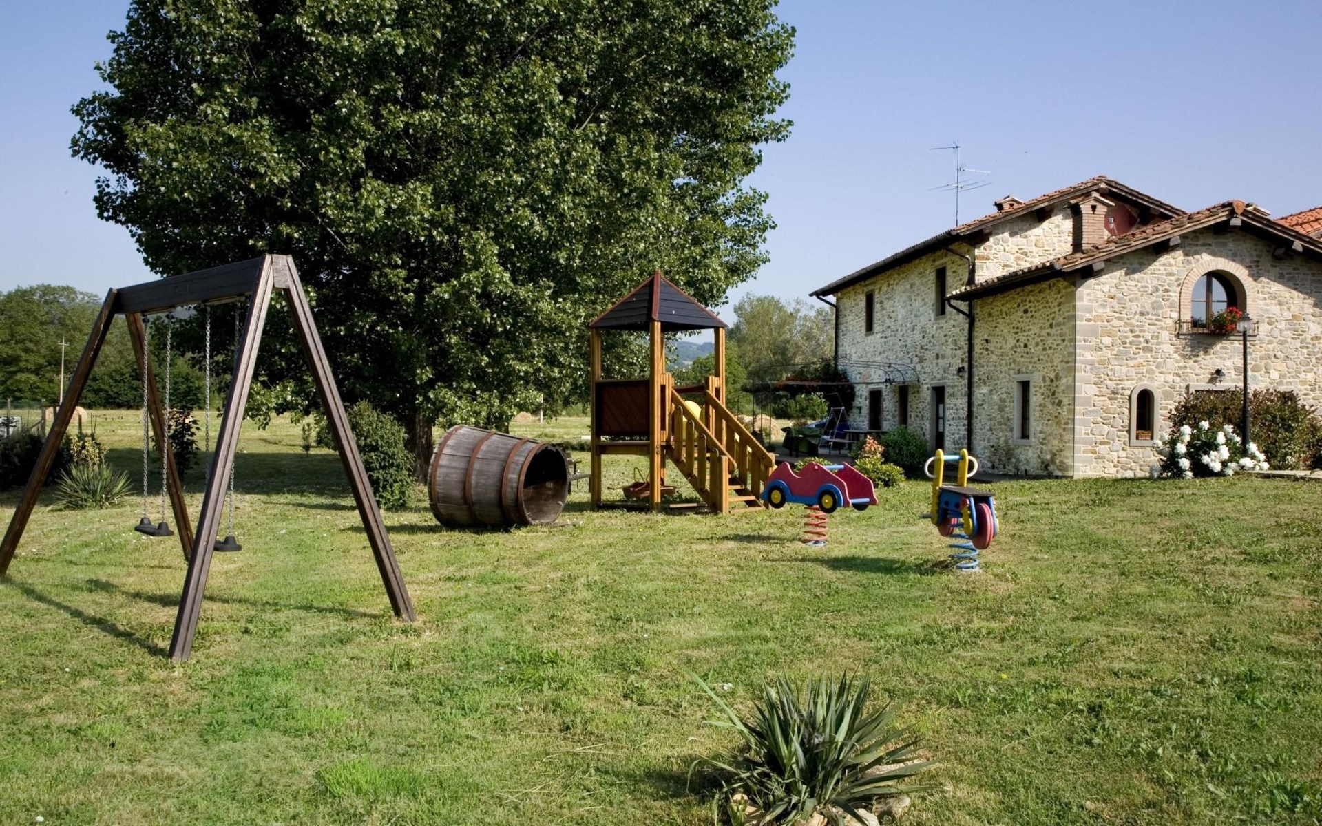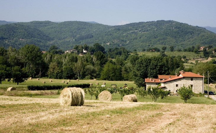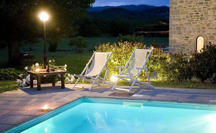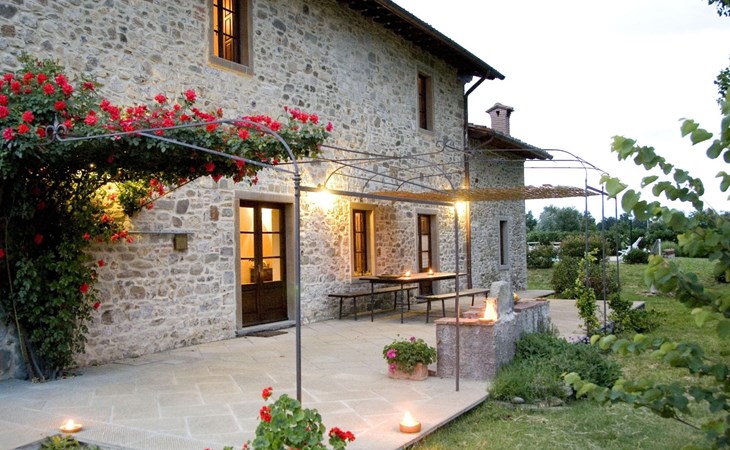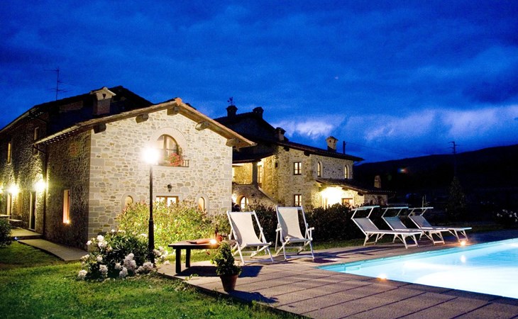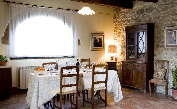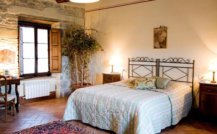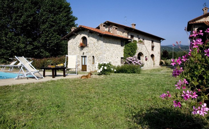 Maximaal 3 huisdieren/honden toegestaan. The country house can accommodate nine people The house has four bedrooms, three bathrooms and 160 m² of living space on two floors. The ground floor (80 m²) has a large, bright living room with two large bay windows, which offer a wonderful panorama as if painted. The living room offers two sofas, a fireplace, satellite TV, a dining table with chairs, and a kitchenette equipped with a five-burner gas hob, an oven, an extractor hood, a refrigerator with freezer, a dishwasher, and other electrical. appliances. There is a bathroom with window, shower, WC, bidet, washbasin and washing machine. The large bedroom has a double bed (or two single beds) and a window with a blackout mosquito net and terrace door that can also be blacked out, giving access to the outside terrace. From the living room there are wooden stairs to the first floor (60 sq. m.), with a bedroom with a double bed, entrance via external staircase, windows that can be darkened, private bathroom with shower, bidet, toilet and washbasin. The third bedroom with a double bed and blackout window offers a beautiful view of the hills and the medieval castle of Romena, the fourth bedroom with a double bed and blackout window has a lovely balcony. Next door is a bathroom with shower, bidet, toilet and two sinks. The double beds all measure 180 x 190 cm. All rooms are tastefully and comfortably furnished and also have heating. Towels and bed linen are included (towels are changed weekly, bath and bed linen every 14 days). Internet access is available for a fee.Please note: With bookings for up to seven guests, 3 rooms and 3 bathrooms are available. Important information for guests staying with pets: The property is completely fenced off with a two-metre high fence. IT051031B58F5ZCYWC
