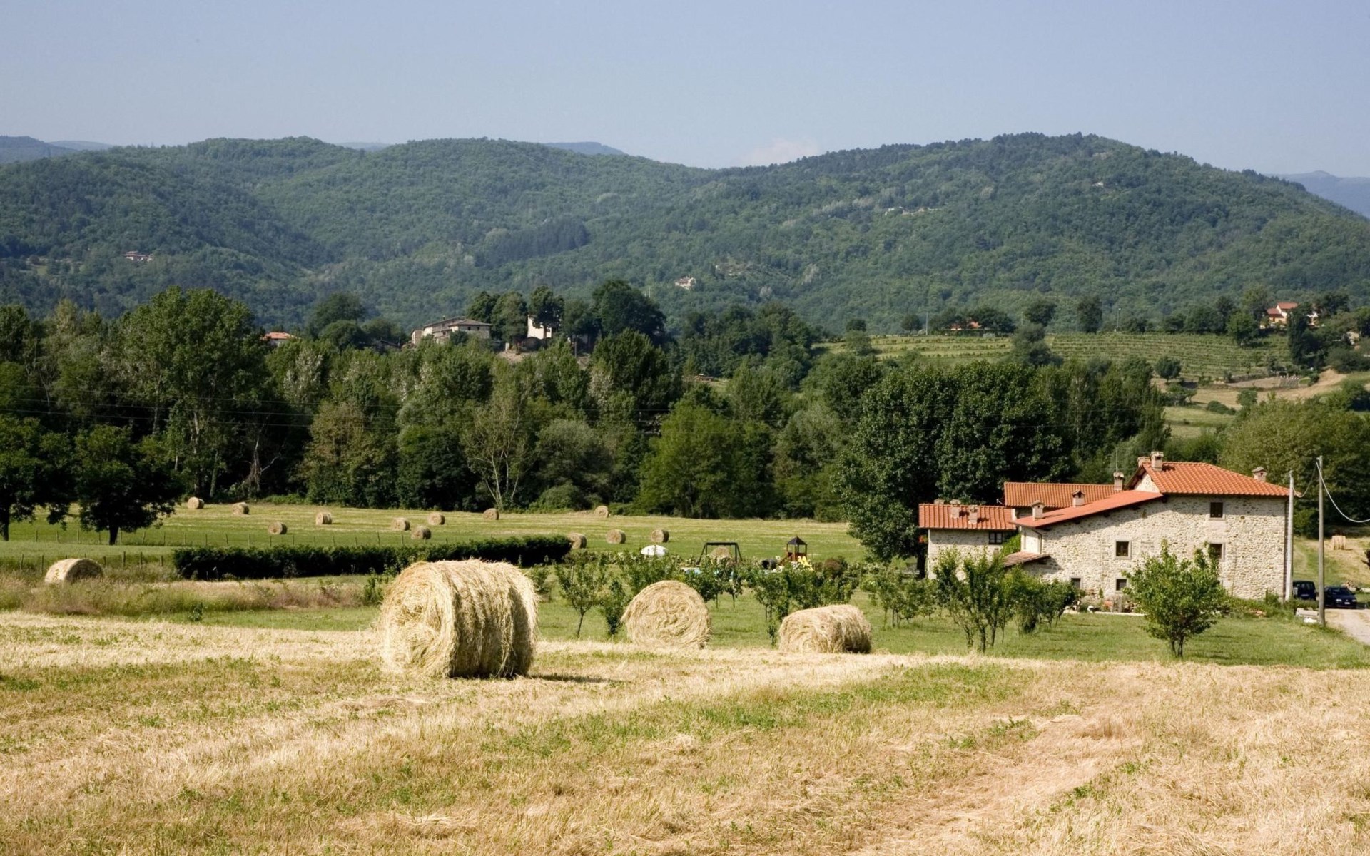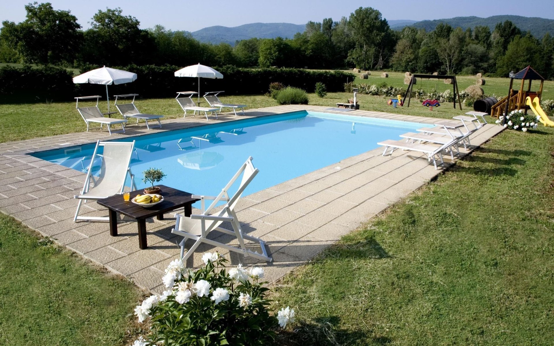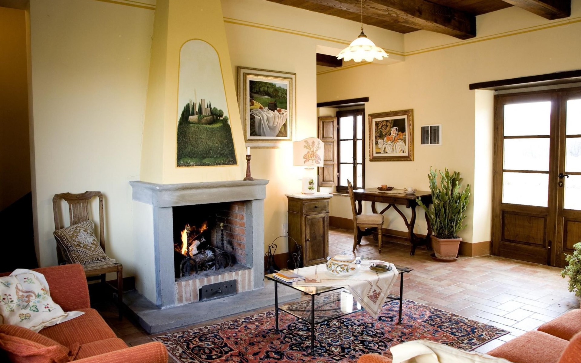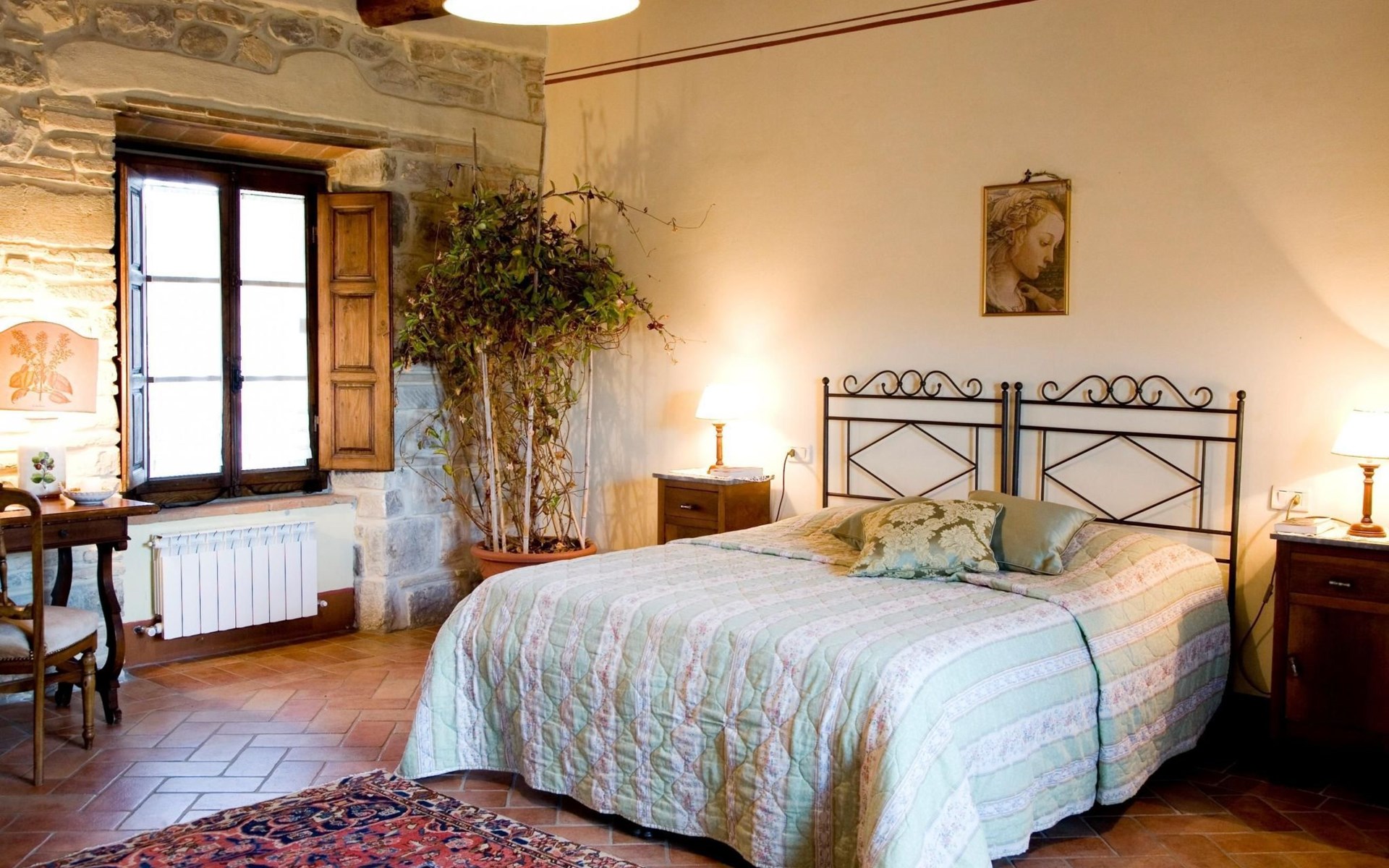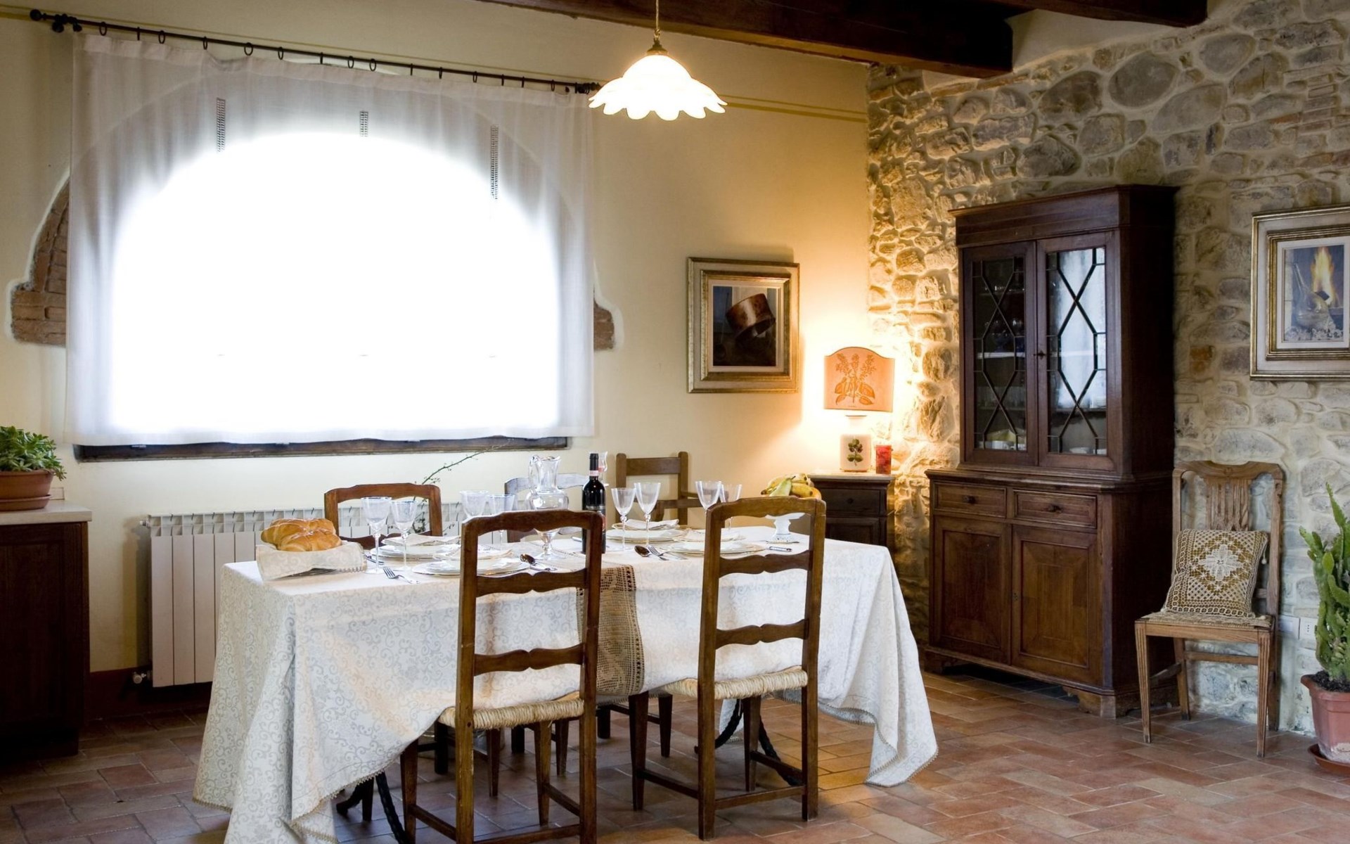 Maximaal 3 huisdieren/honden toegestaan. The country house can accommodate nine people The house has four bedrooms, three bathrooms and 160 m² of living space on two floors. The ground floor (80 m²) has a large, bright living room with two large bay windows, which offer a wonderful panorama as if painted. The living room offers two sofas, a fireplace, satellite TV, a dining table with chairs, and a kitchenette equipped with a five-burner gas hob, an oven, an extractor hood, a refrigerator with freezer, a dishwasher, and other electrical. appliances. There is a bathroom with window, shower, WC, bidet, washbasin and washing machine. The large bedroom has a double bed (or two single beds) and a window with a blackout mosquito net and terrace door that can also be blacked out, giving access to the outside terrace. From the living room there are wooden stairs to the first floor (60 sq. m.), with a bedroom with a double bed, entrance via external staircase, windows that can be darkened, private bathroom with shower, bidet, toilet and washbasin. The third bedroom with a double bed and blackout window offers a beautiful view of the hills and the medieval castle of Romena, the fourth bedroom with a double bed and blackout window has a lovely balcony. Next door is a bathroom with shower, bidet, toilet and two sinks. The double beds all measure 180 x 190 cm. All rooms are tastefully and comfortably furnished and also have heating. Towels and bed linen are included (towels are changed weekly, bath and bed linen every 14 days). Internet access is available for a fee.Please note: With bookings for up to seven guests, 3 rooms and 3 bathrooms are available. Important information for guests staying with pets: The property is completely fenced off with a two-metre high fence. IT051031B58F5ZCYWC