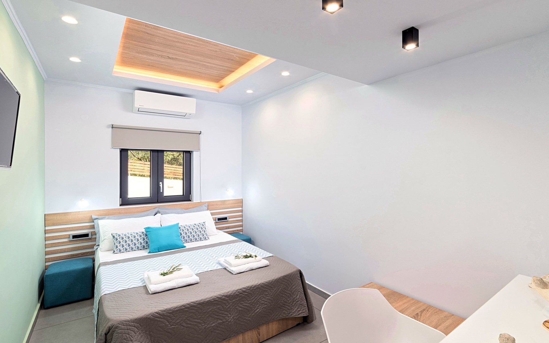 If you truly want to feel the positive healing powers of nature all around you, to sense and relish the beauty of the sea, then your path inevitably leads to Stavento Luxury Suite.Every detail of Stavento Luxury Suite is designed to offer you beautiful moments with your family or friends while enjoying all modern comforts, the timeless wonders of Cretan nature, as well as the enchanting view of the Cretan Sea from your terrace.Decorated using natural materials, the beautiful constructions inspired by nature and the sea will replenish the senses and soothe the spirit.This suite boasts a comfortable living area, fully equipped kitchen three bedrooms and two individual toilets with shower.You have direct access to the swimming pool so you can easily enjoy the sun or a refreshing swim.Furthermore, in the morning you have the opportunity to see the enchanting sunrise and feel the caress of the Meltemi wind, experiences you will cherish forever.Stavento Luxury Suite is a pleasant surprise for those in search of peace and quiet in Crete’s charming natural paradise. It’s based on the road to Kournas Traditional Village, just 2km from the largest sandy beach of Crete, minutes’ drive from Kournas lake. Stavento Suite is a semi-detached ground floor apartment of two independent apartment building, owned by the same family. With private entrance, private parking, private large garden area with private use of an infinity swimming pool.Facilities● A living room with a large Corner Sofa (can accommodate up to two quests) with direct access to the terrace and the pool area● A fully equipped Kitchen with an oven, microwave dishwasher, a fridge, a coffee maker, tea facilities, a toaster, a kettle and dining facilities. ● A bedroom with two twin push together single beds.● A second bedroom with a queen-size double bed.● A third bedroom with two single beds● Two independent large bathrooms with walking separate shower area.General Facilities● Smart TV at the living room.● Air-conditioning in all areas.● Free Wi-Fi internet access.● Outdoor dining set (table with chairs).● Washing machine.● Iron and ironing board.● Safe deposit box.● Hair dryer in both bathrooms.● Linen and towels.● Toiletries.● Swimming pool towels.● Baby cot.● High chair for children.● Towels and bed linen changed and cleaned every 3 or 4 days.● Private parking area.● Direct access to the swimming pool area.● Sun lounge area ● Outdoor sitting area sofa and armchairs.● BBQ area with outdoor kitchen facilities (fridge-dishwasher)● Private Swimming pool.The house offers a private pool and great views of the cretan mountains and the sea. Places such as tavernas, cafes, shops etc can be easily reached by foot within 1500 meters distanceKournas is a pretty traditional village 8 km from Georgioupoli and about 4 km from Lake Kournas.If you are visiting Lake Kournas it is worth driving 15 minutes further along the narrow uphill road to Kournas.While the lake is 'touristy', Kournas village is completely unaffected by tourism and takes visitors on a journey back in time, as do many villages in the interior of Crete agapinakis taverna in kournasThe old houses, the village square, the pottery workshop opposite the large kafeneio and Agapinakis's taverna "Kali Kardia", with its wonderful salads and delicious meat, are the first things you will notice in the village of Kournas.The village of Kournas has 500 inhabitants and lies at an altitude of 200 metres in the foothills of Mount Dafnomadara (1680 m). Kournas prospered from the 16th century onwards and is linked to many battles for freedom from the Turks. It was the seat of the Revolutionary Government in the Rising of 1866 and the seat of the Cretan General Assembly in 1897.The village of Kournas lacks particular facilities for tourists, but nearby Georgioupoli offers everything you might need.In the village of Kournas is the church of Agios Georgios, to which leads a road to the right of the square. It was built in Byzantine times, with architectural features added later during the Venetian period. The church is locked and you will not be able to see inside unless you find someone in the neighbourhood to give you the key, but it’s worth a try. 00001852169