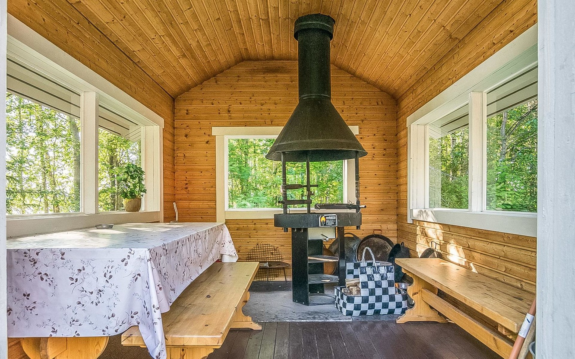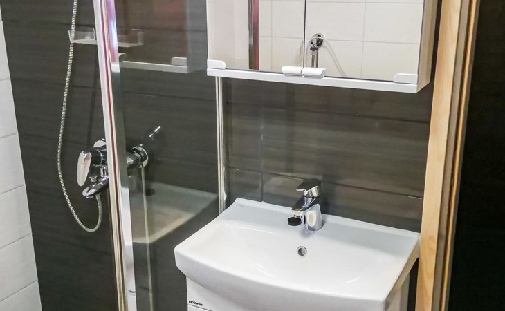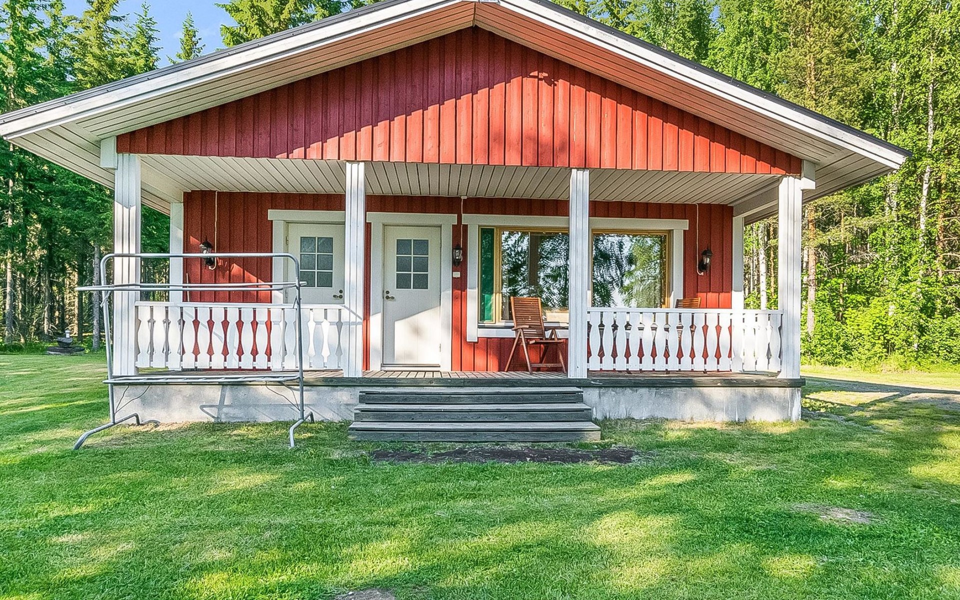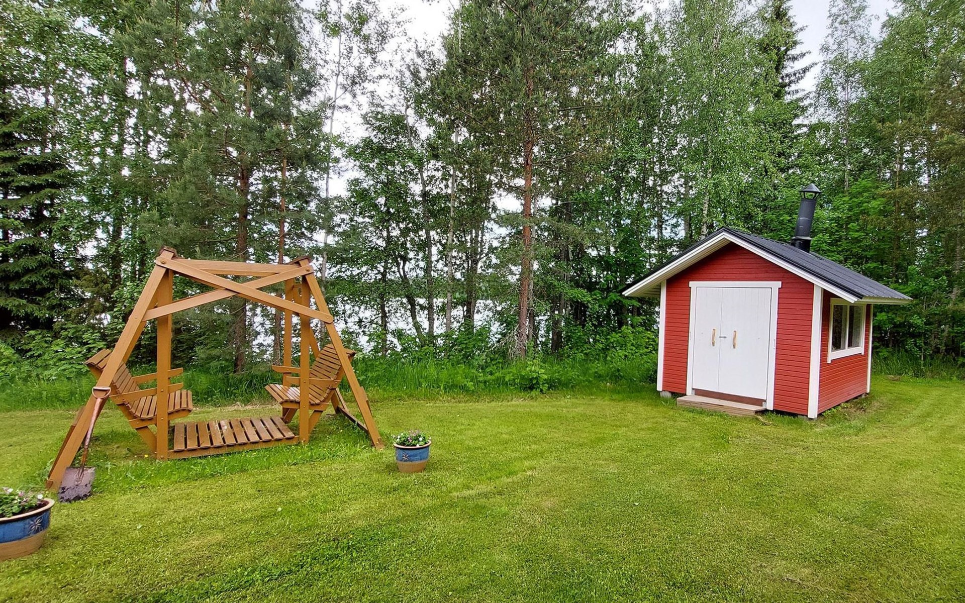 Wooden cottage 2002, kitchen, living room with convertible sofa, bedroom with double bed, washroom, sauna, open porch.