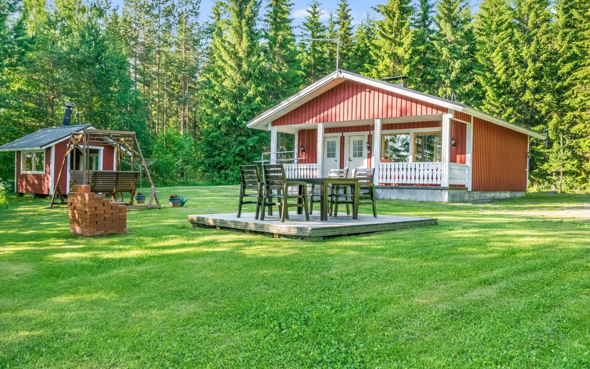 For an extra charge baby travel cot: incl. duvet and pillow with linen. Cottage with plenty of space for a family. Level yard area, shore faces south, so good evening sunbathing place. Haukivuori 21 km and Pieksämäki 21 km.