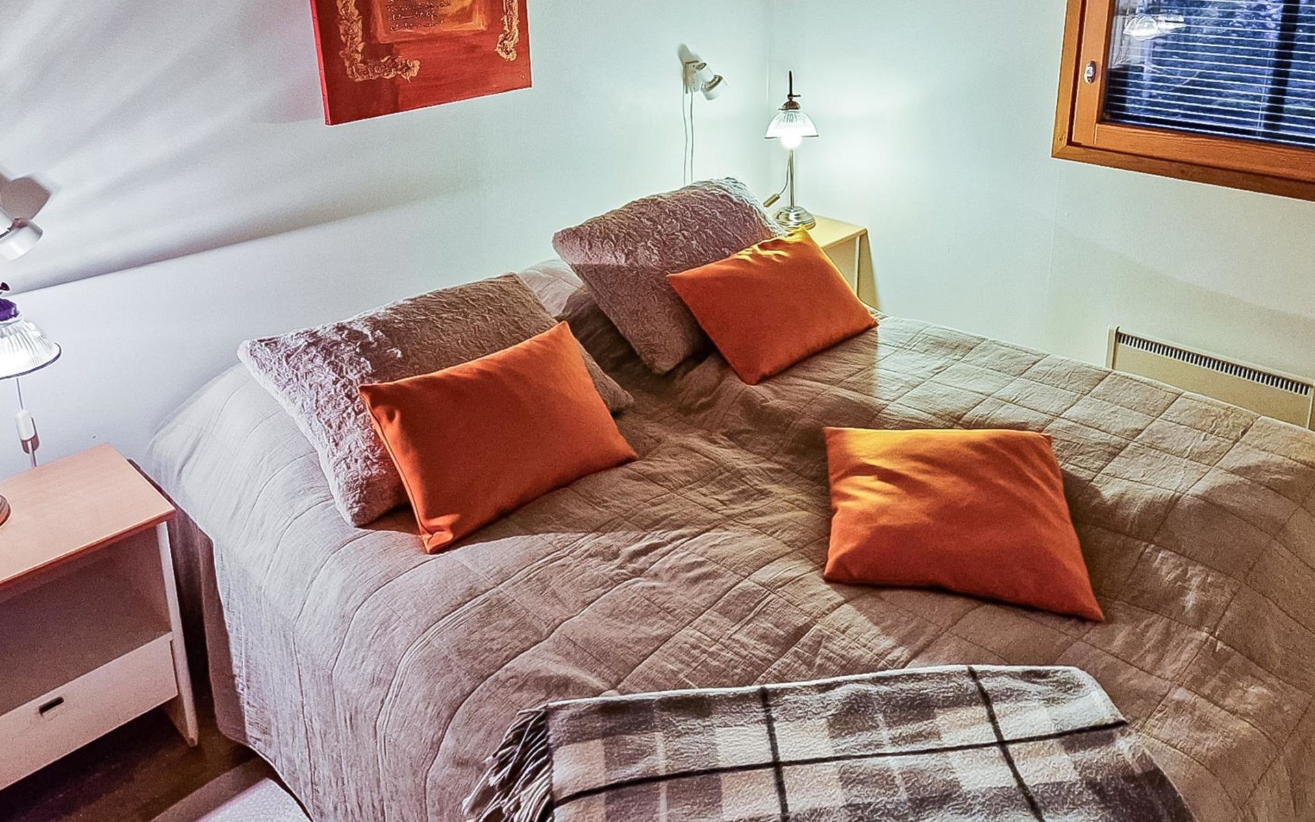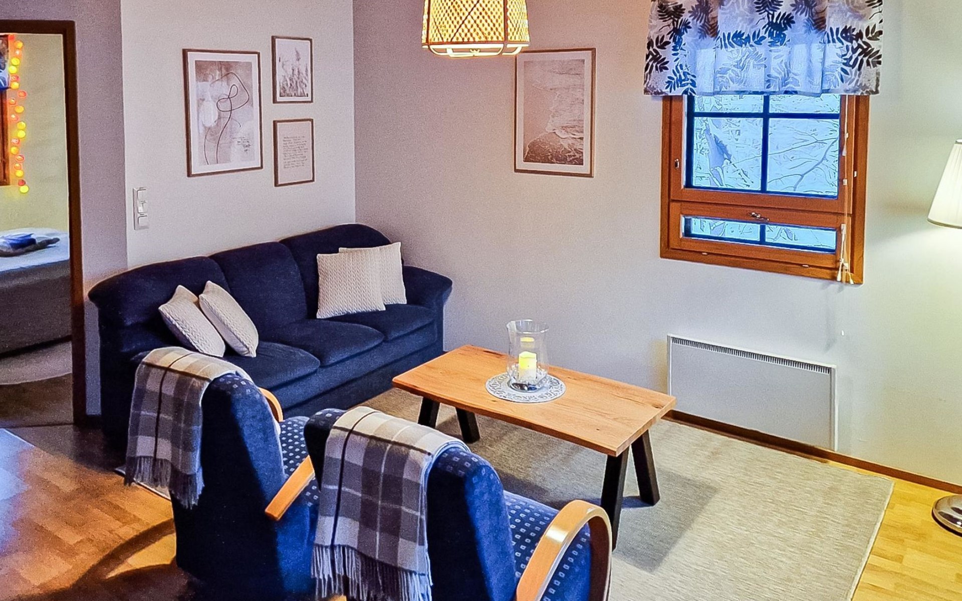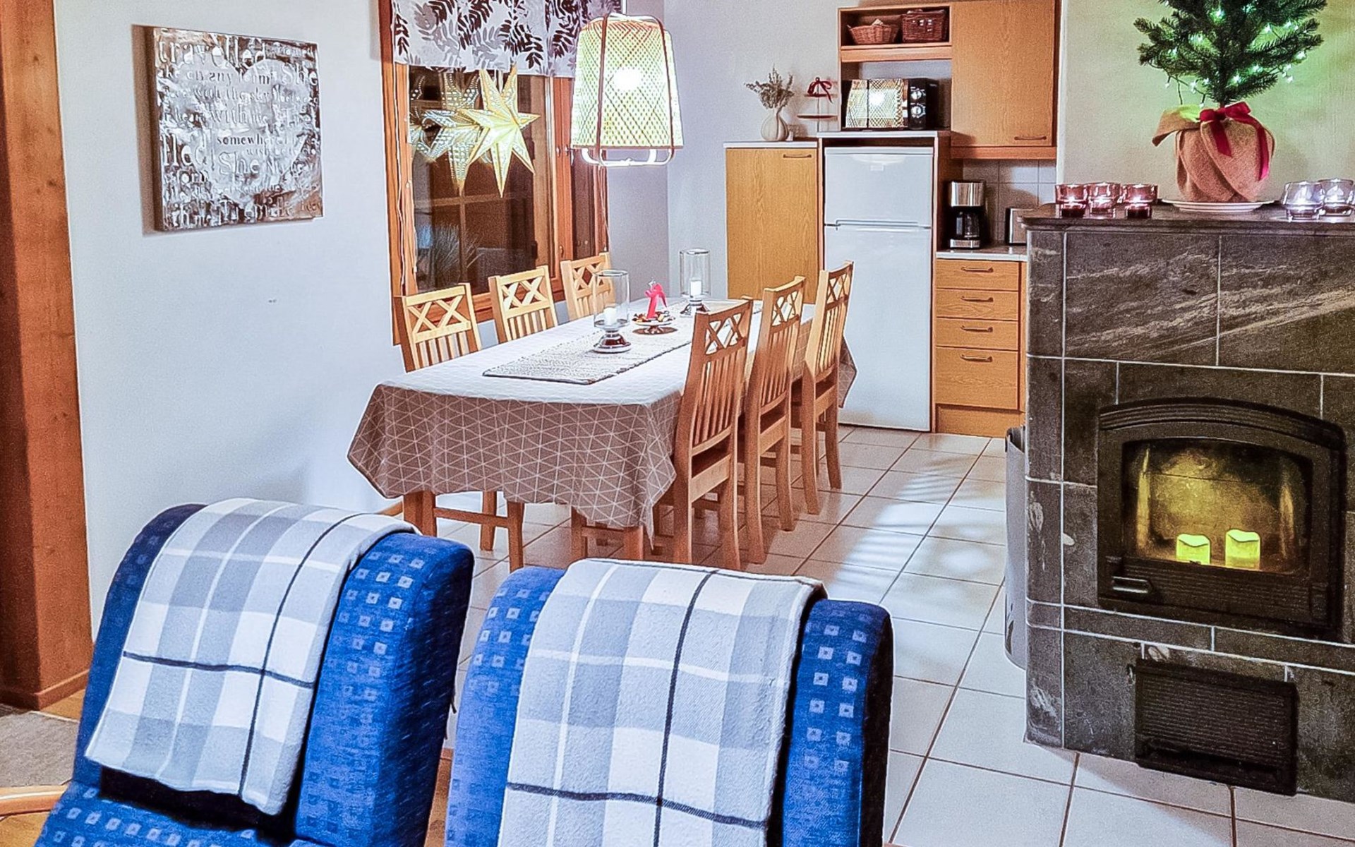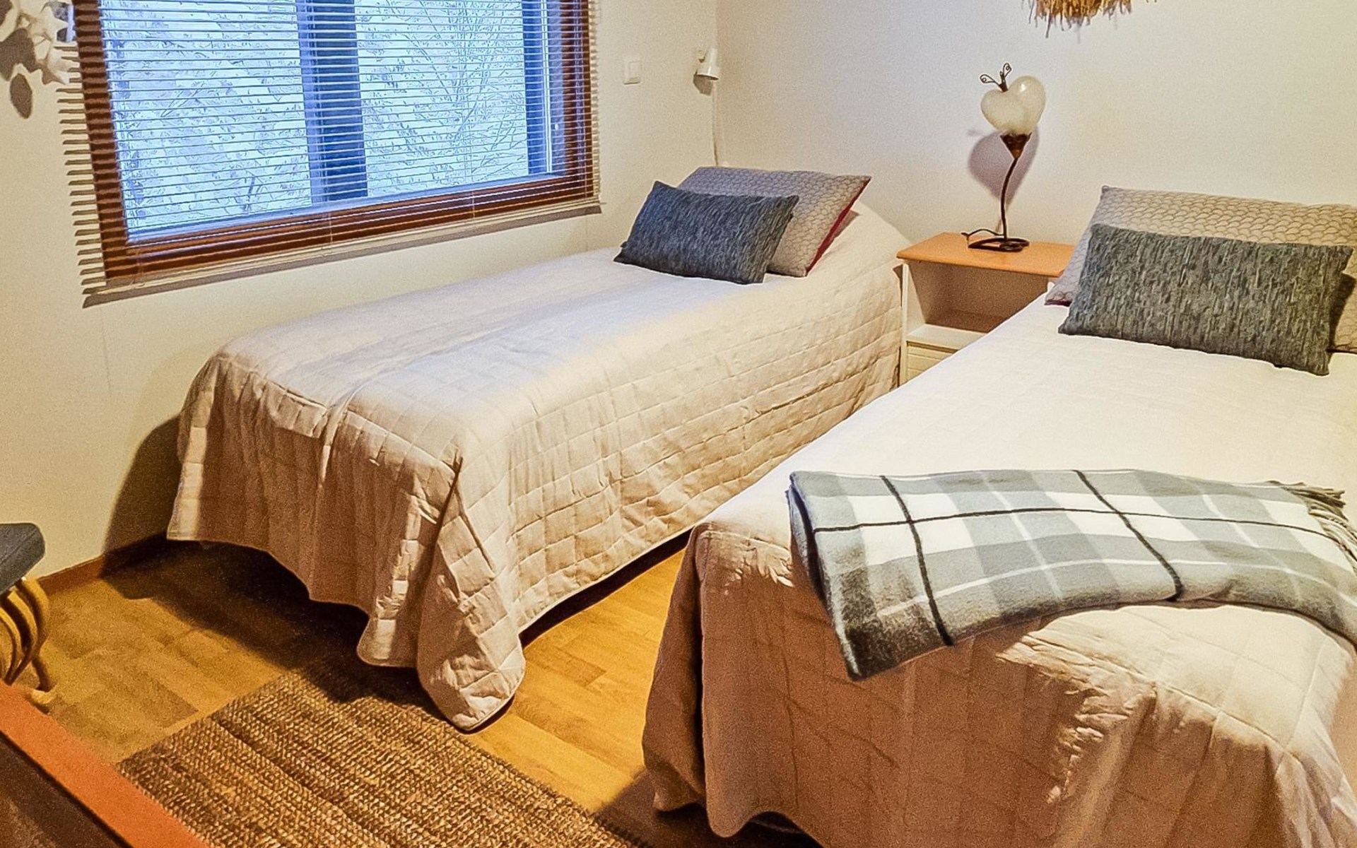 Two-storey chalet 2002, an apartement in the second floor, kitchen-living room, bedroom with 2 beds, upstairs a loft, in which 4 beds, washroom, sauna (electric stove), hall and a big terrace.