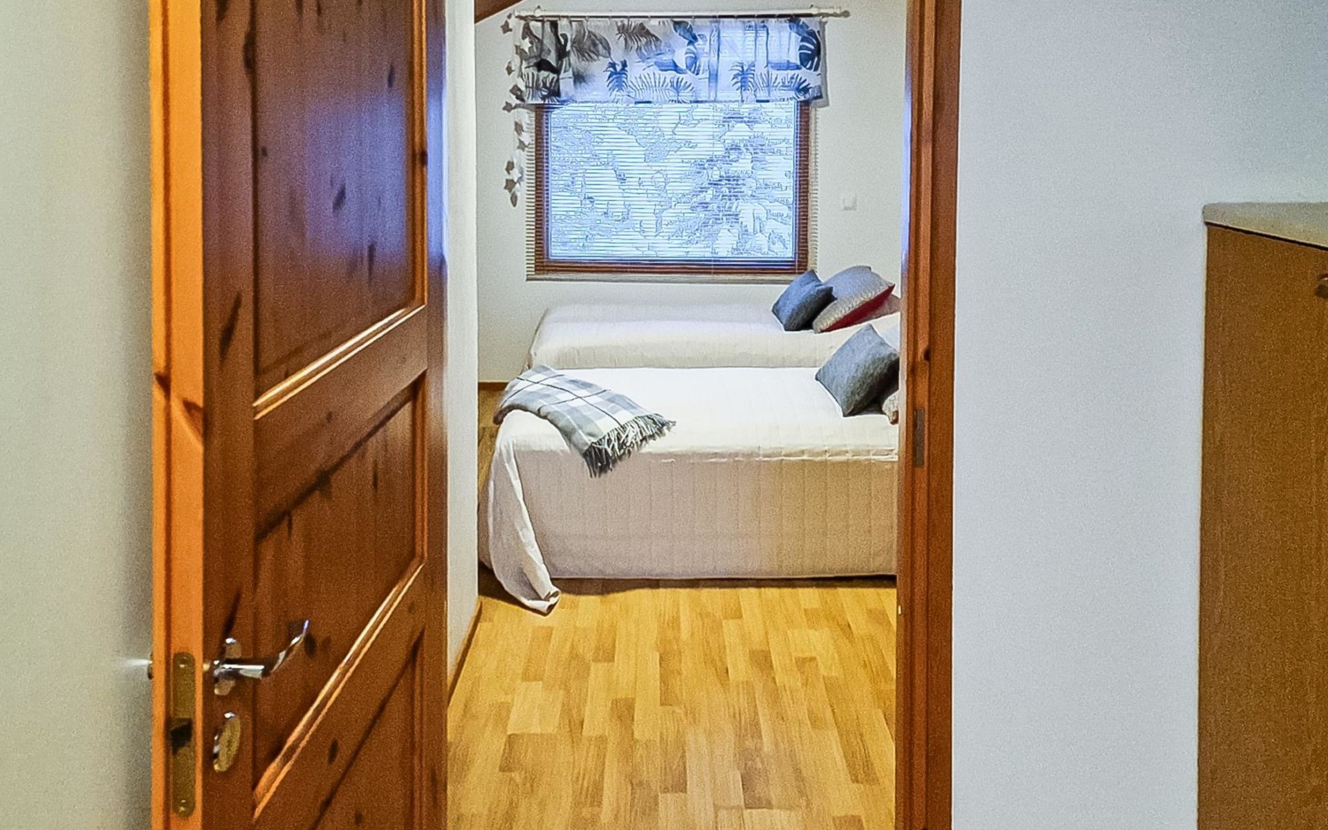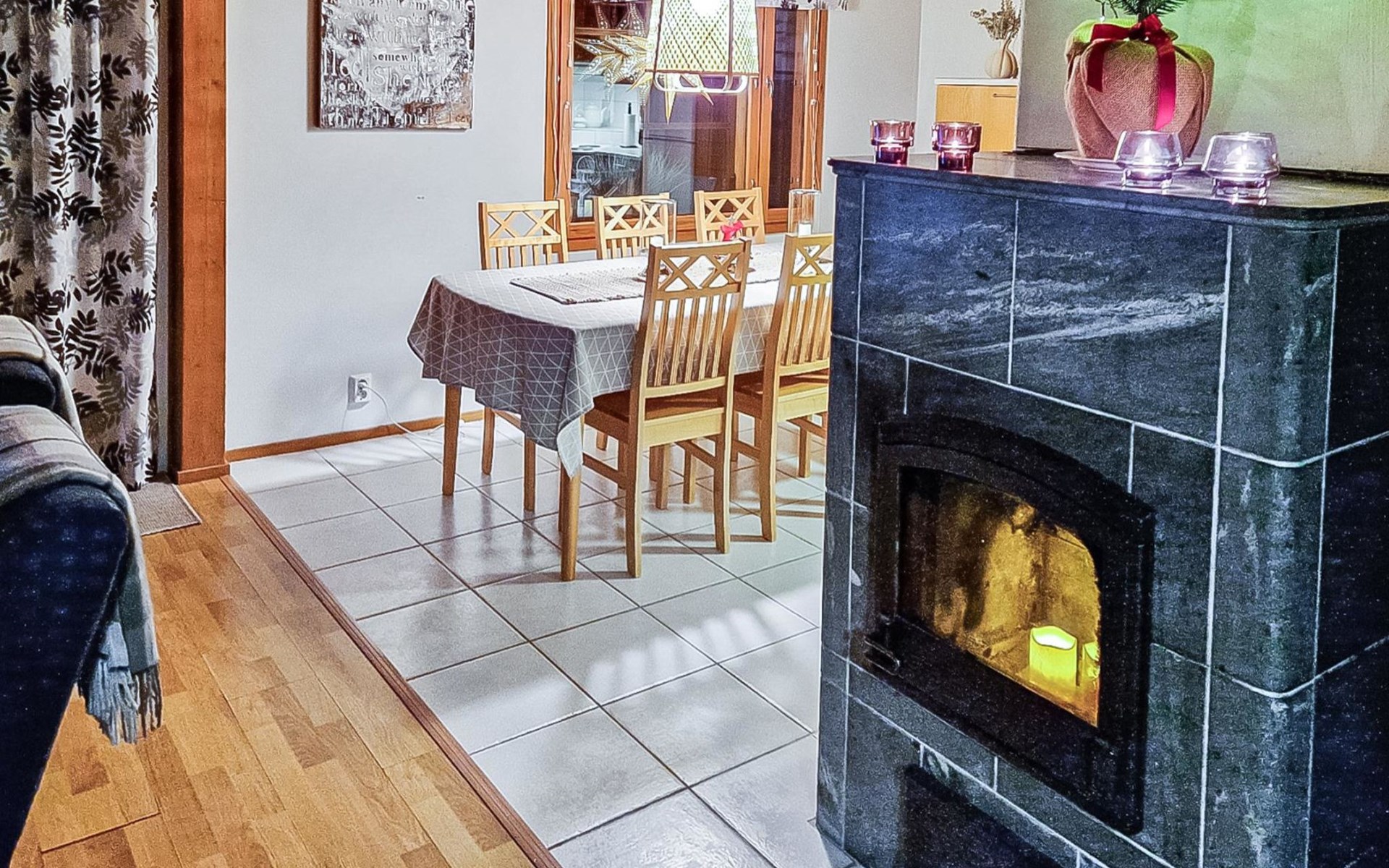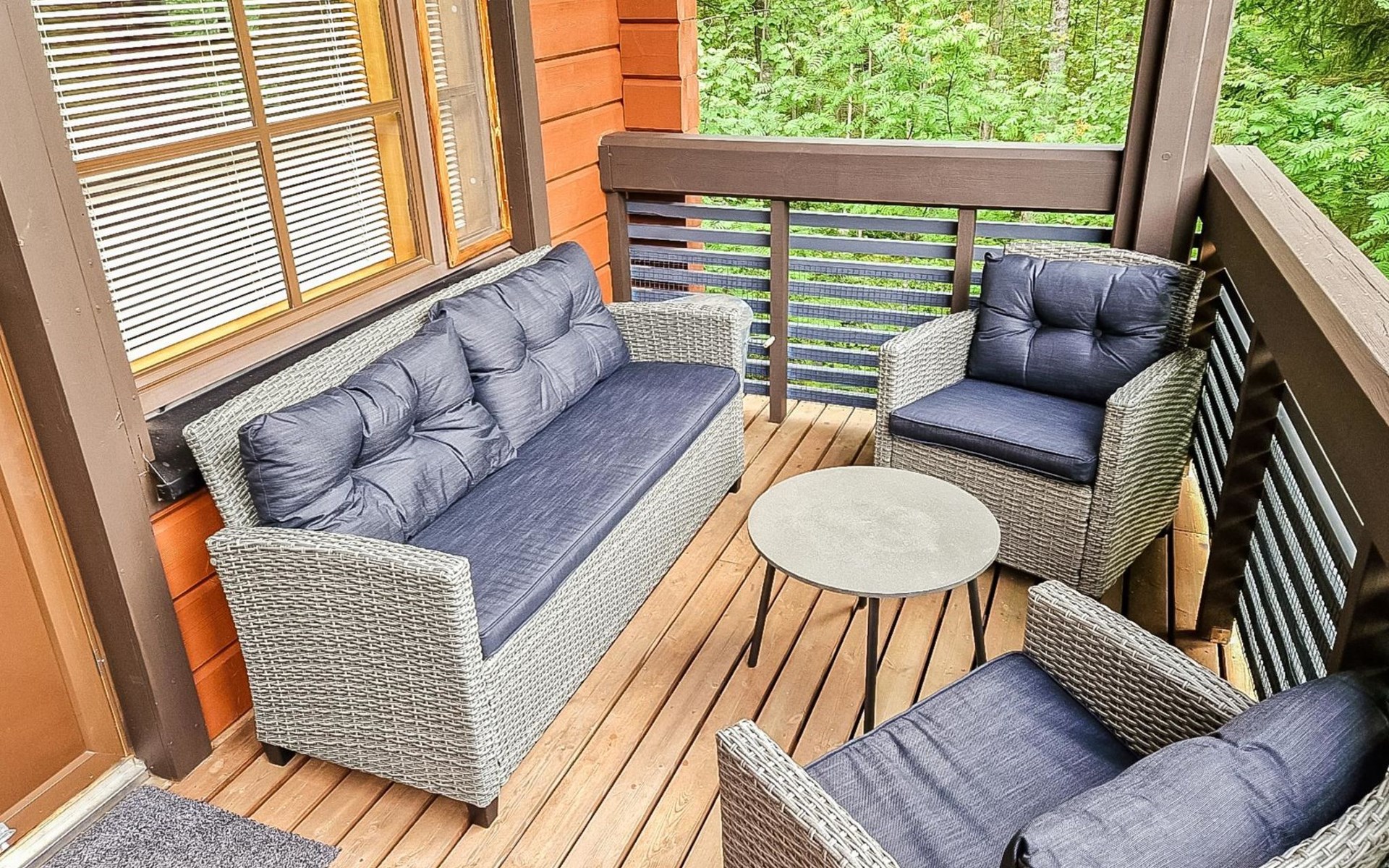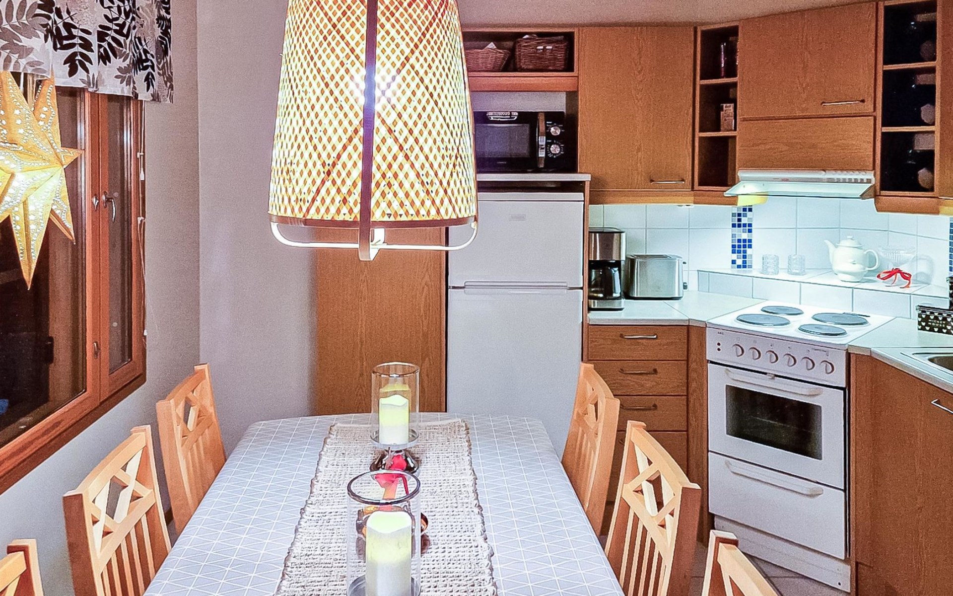 Two-storey chalet 2002, an apartement in the second floor, kitchen-living room, bedroom with 2 beds, upstairs a loft, in which 4 beds, washroom, sauna (electric stove), hall and a big terrace.
