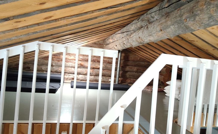30 km to the northwest from Kuusamo, Ruka 20 km, lake Yli-Kitkajärvi 100 m, shallow beach with sandy bottom, shared rowing boat. Kelo log semi-detached house, built in 1995, bedroom 1: double bed, bedroom 2: 1 bed, loft (20 m², low ceiling): mattresses. Living room/kitchen, electric sauna. The cabin is located in Holtinniemi, close to the lake Kitkajärvi, which is rich in fish (whitefish, vendace, trout, other fresh water fish).
