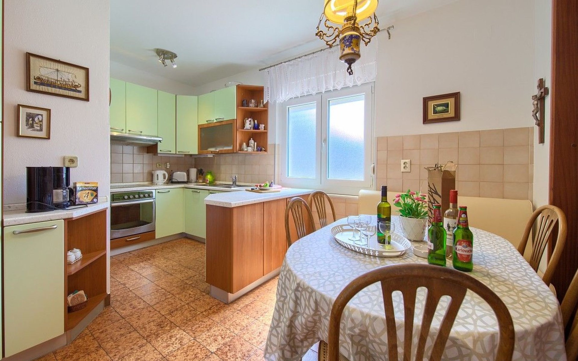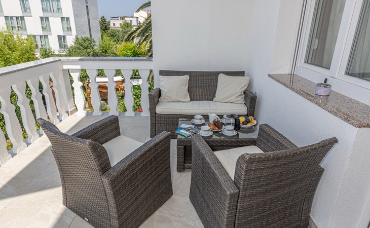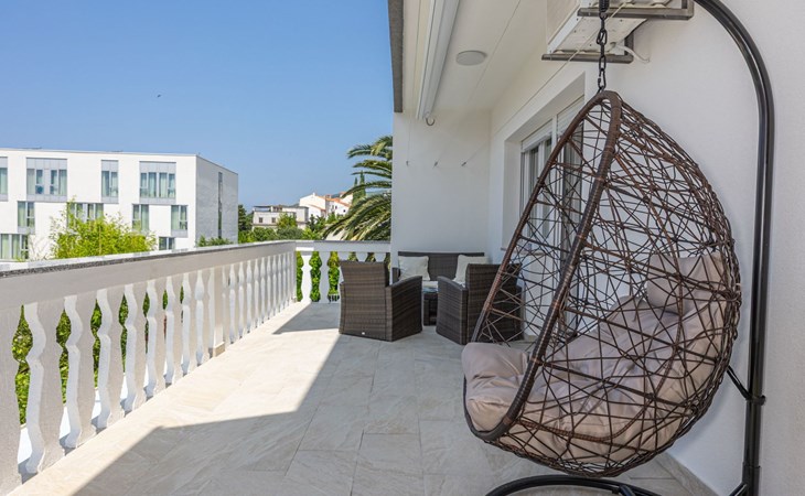 Discover unparalleled luxury in this exquisite suite apartment, designed to accommodate a family or up to two couples seeking an exceptional holiday experience. Occupying the entire first floor of a private villa, this 120 m2 living space offers an intimate setting with 2 double bedrooms, each served by a private bathroom, ensuring ample space and privacy for all guests. Enhanced by a sun-drenched 36m2 terrace, this apartment promises comfort, style, and breathtaking views.Step inside to a realm of elegance where each room, connected by a hallway, showcases meticulous attention to interior design. The living space is not just expansive but equipped with everything needed for a self-sufficient stay. The kitchen, a culinary haven, includes a dishwasher, microwave, refrigerator, filter coffee machine, and espresso machine, complemented by a dining area for enjoying home-cooked meals. Two double bedrooms offer serene retreats, complete with modern bathrooms that feature a shower, toilet, sink, hairdryer, mirror, and bidet, plus a bathtub in one for indulging soaks. The living room, with its cozy seating area and satellite TV, can also accommodate two additional guests if needed, ensuring every member of the family or group is comfortably housed.The outdoor space is nothing short of a private oasis. The expansive 36m2 terrace is a sunny sanctuary for relaxation, fitted with a seating area, sun lounger, and surrounded by Mediterranean flora that presents a picturesque view of the sea and garden. This space is dedicated to unwinding and soaking up the rich, Mediterranean ambiance, whether you're starting your day with a morning coffee or captivating sunset views.Situated in a vibrant locale, the apartment is a stone's throw away from a center bustling with parks adorned with Mediterranean plants, lively music, and dance performances during summer nights. The ambiance is enchanting, with hotels' terraces offering a delightful setting. A short stroll away, guests will find sports facilities, children's playgrounds, a museum, an aquarium perfect for family outings, a casino for adult entertainment, along with essentials like a bank, post office, and the port, all within a 500m radius, making it an ideal base for exploring and enjoying local culture.Concluding with a promise of an unforgettable stay, this luxury apartment is your gateway to a holiday filled with relaxation, privacy, and leisure. Catering to every need, from the thoughtfully designed interiors to the blissful outdoor space and its prime location near all local attractions, your search for the perfect holiday sanctuary ends here. Step into a world where luxury meets comfort, making every moment spent here a cherished memory. HR39680812529