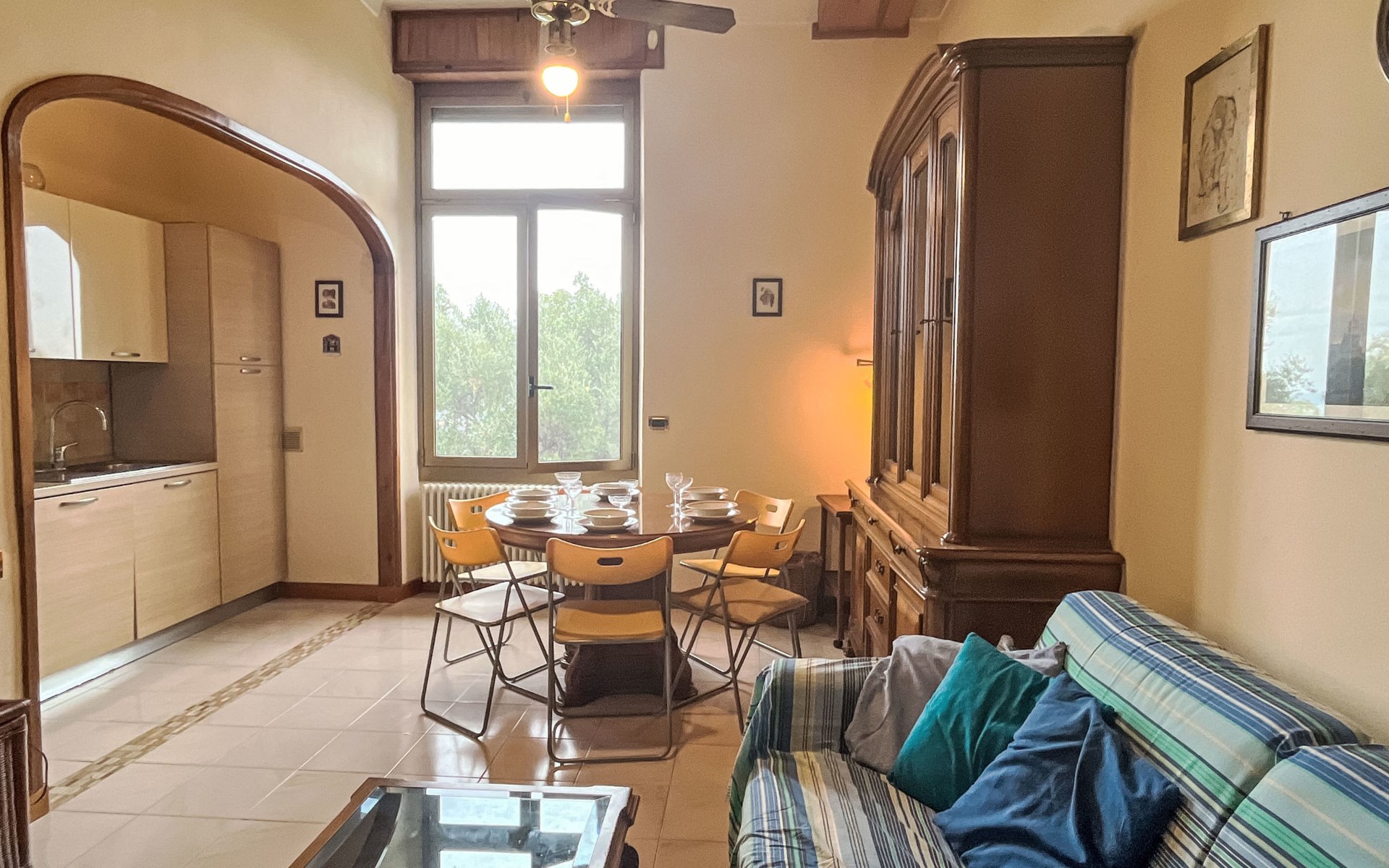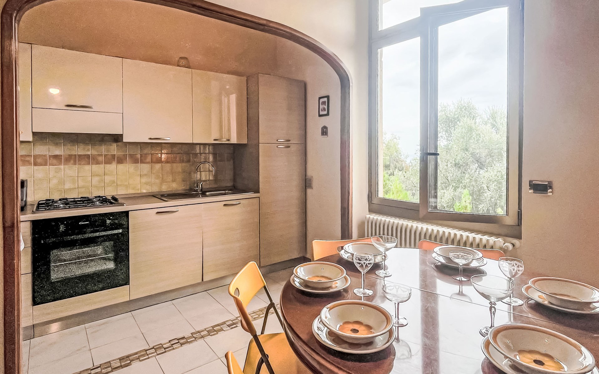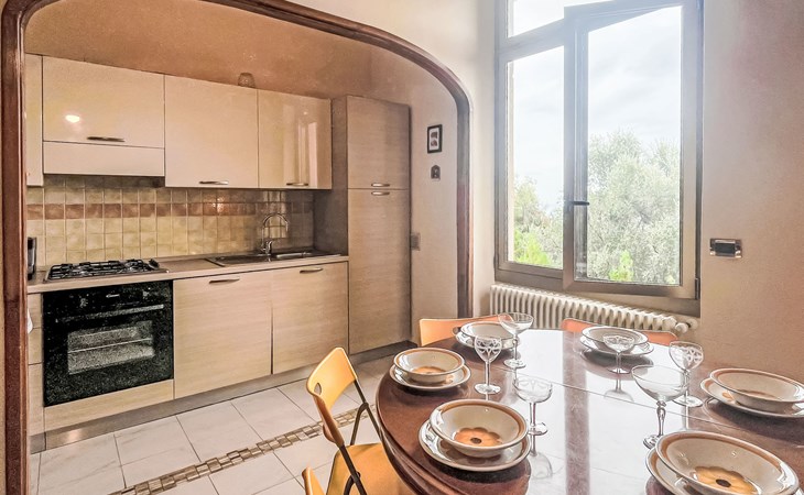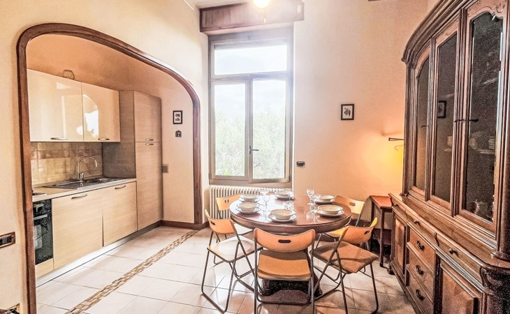 Groot, gezellig flatgebouw van 3 verdiepingen, omgeven door bomen. In het centrum van Imperia, zonnige, verhoogde ligging in een woonwijk, villa wijk, in het centrum van de stad, 600 m van zee. Openbare parkeerplaatsen 5 m in de straat. Levensmiddelenwinkel 800 m, supermarkt 1 km, winkelcentrum 4 km, restaurant 1 km, bar, bakkerij 800 m, café 1 km, voetgangersgebied 1 km, fietsverhuur 1 km, centrum te voet bereikbaar in 15 minuten, bushalte 200 m, treinstation "Imperia Oneglia" 4 km. Fietspad 500 m. Attracties in de buurt: Pista ciclabile lungo mare 500 m, Porto Maurizio Altstadt Parasio. Wandelgebied Monte Faudo (1149 m) Mountainbike Trails.