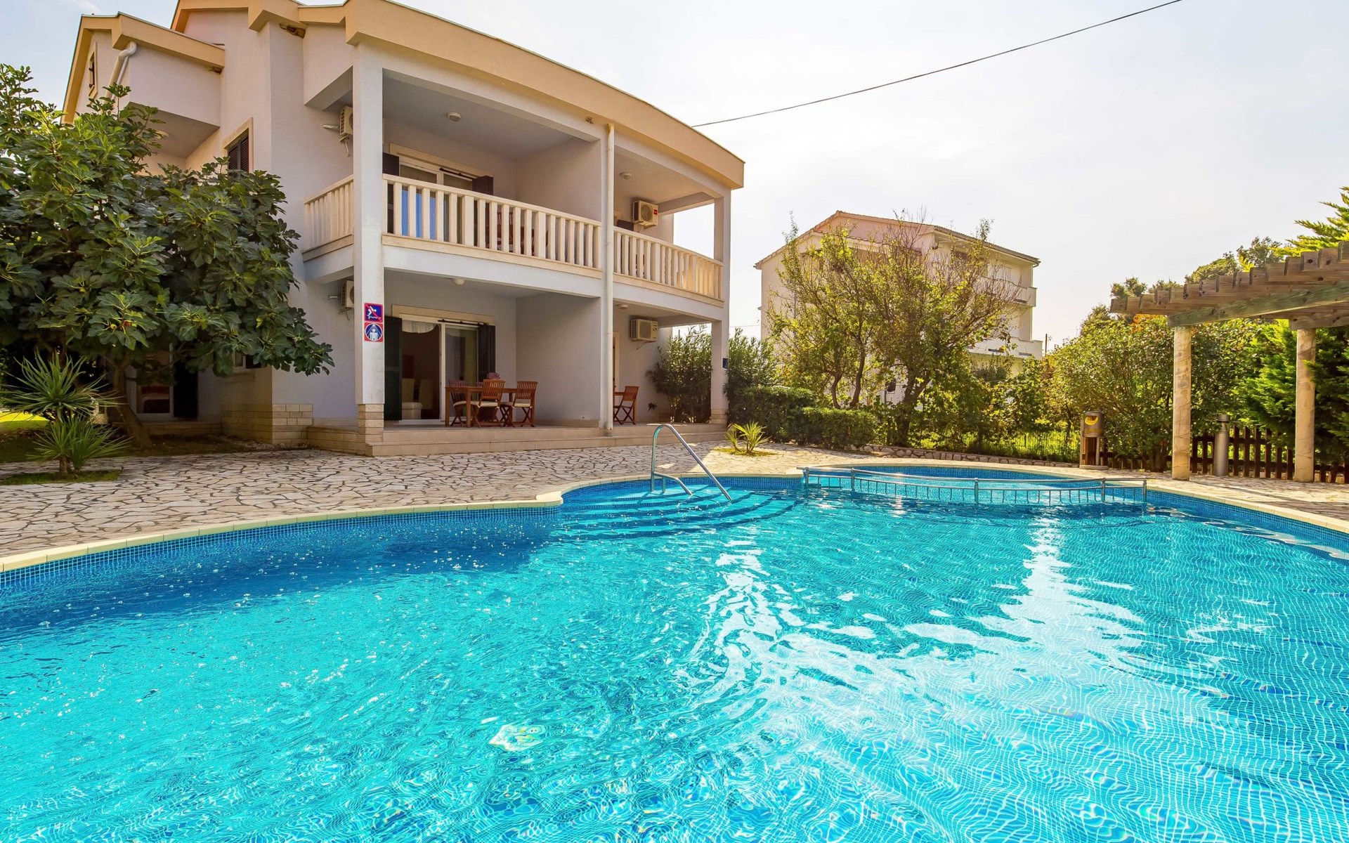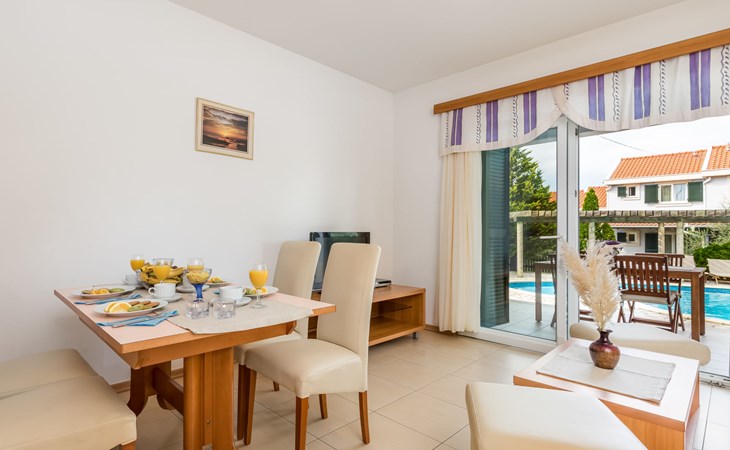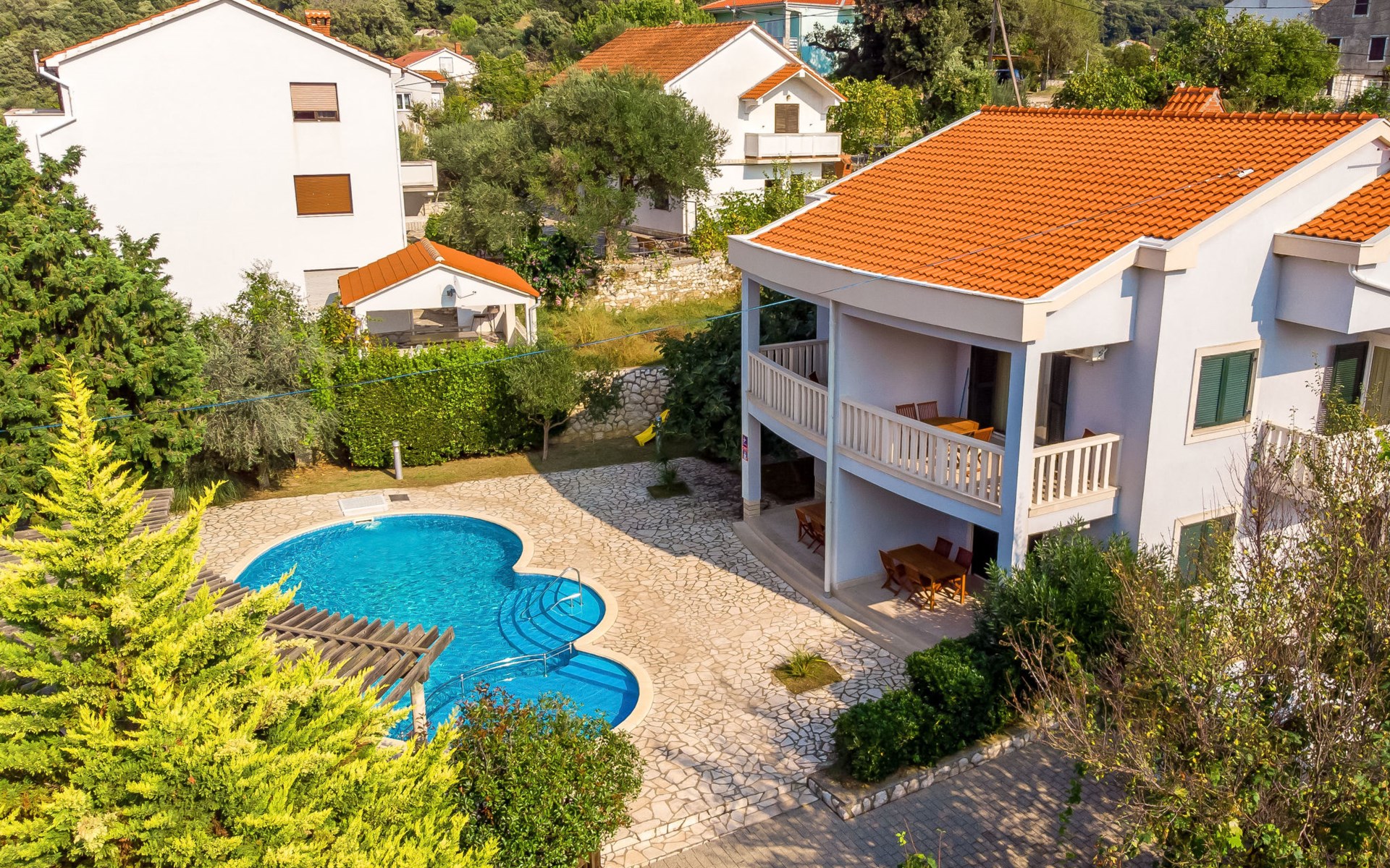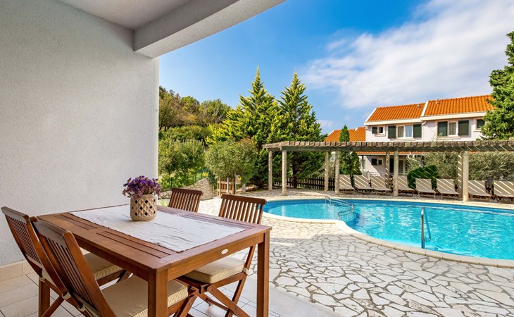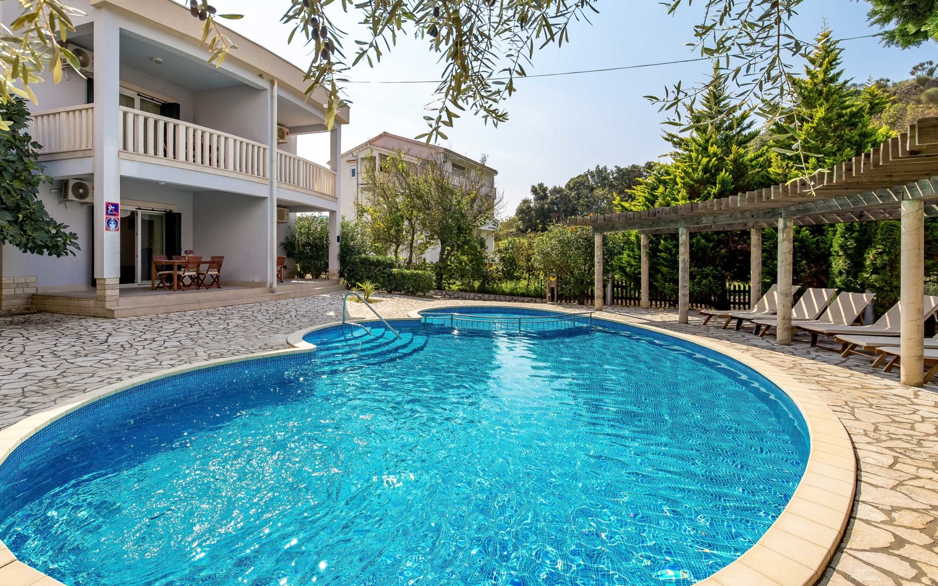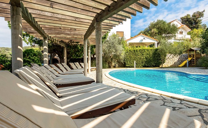 Kampor 6 km van Rab: Het appartementsgebouw "Tomislav" bevindt zich samen met het appartementsgebouw "Mare" op een terrein van 2700 m2, met een gemeenschappelijk zwembad met tegenstroom-installatie. Een deel van het zwembad is kinderzwembad, 30-60 cm diep. Ter beschikking: ligstoelen. Voor het huis is een betonstrand met zandbodem in zee, vlak aflopend, zeer geschikt voor kinderen kindvriendelijk flatgebouw. Rustige, zonnige ligging, 40 m van zee, 40 m van het strand. Voor medegebruik: terrein (omheind), verzorgde tuin met gazon, openluchtzwembad niervormig verwarmd (12 x 6 m, 120 - 160 cm diepte, seizoensgebonden beschikbaarheid: 13.Mei. - 30.Sep.) met trap. Kinderzwembad, buitendouche, prieel, tuinmeubelen, barbecue. In het huis: internetaansluiting. Parkeerplaats. Winkel, restaurant 150 m, bushalte 2.4 km, betonnen strand 40 m. De afgebeelde foto is slechts een voorbeeld. Vergelijkbare accommodaties kunnen worden geboekt. Object referentie: HR3703.620 is gelegen op hetzelfde terrein.