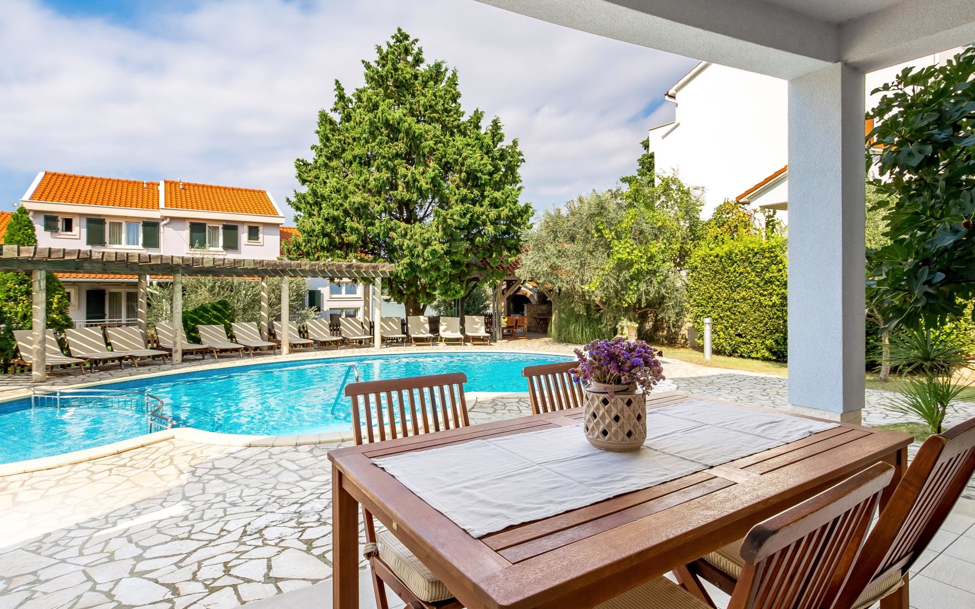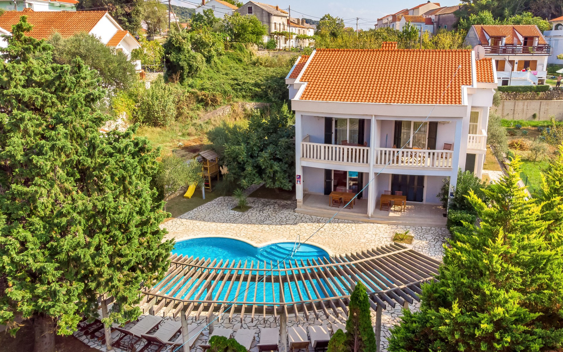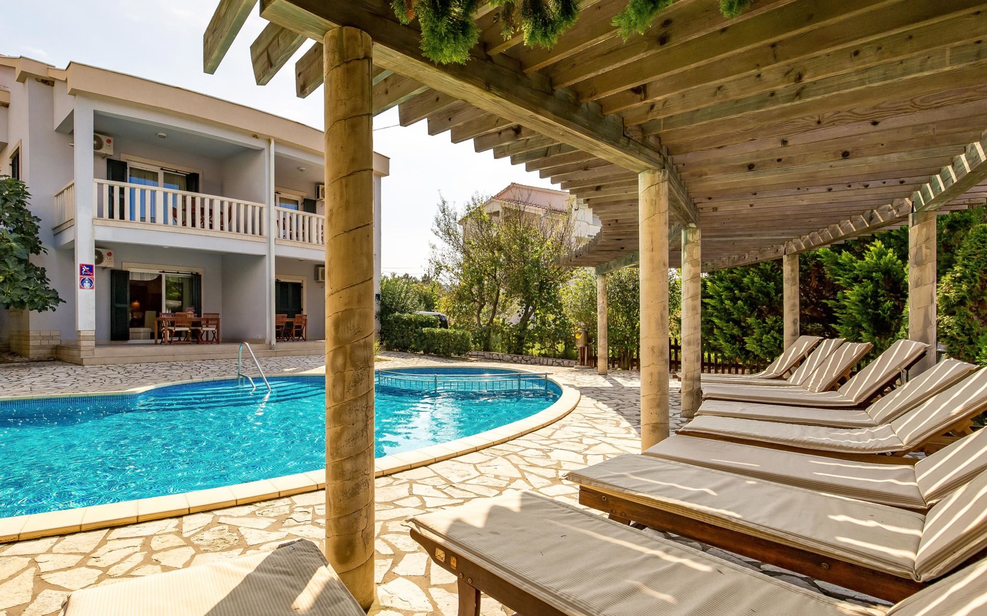 Kampor 6 km van Rab: Het appartementsgebouw "Tomislav" bevindt zich samen met het appartementsgebouw "Mare" op een terrein van 2700 m2, met een gemeenschappelijk zwembad met tegenstroom-installatie. Een deel van het zwembad is kinderzwembad, 30-60 cm diep. Ter beschikking: ligstoelen. Voor het huis is een betonstrand met zandbodem in zee, vlak aflopend, zeer geschikt voor kinderen kindvriendelijk flatgebouw. Rustige, zonnige ligging, 40 m van zee, 40 m van het strand. Voor medegebruik: terrein (omheind), verzorgde tuin met gazon, openluchtzwembad niervormig verwarmd (12 x 6 m, 120 - 160 cm diepte, seizoensgebonden beschikbaarheid: 13.Mei. - 30.Sep.) met trap. Kinderzwembad, buitendouche, prieel, tuinmeubelen, barbecue. In het huis: internetaansluiting. Parkeerplaats. Winkel, restaurant 150 m, bushalte 2.4 km, betonnen strand 40 m. De afgebeelde foto is slechts een voorbeeld. Vergelijkbare accommodaties kunnen worden geboekt. Object referentie: HR3703.620 is gelegen op hetzelfde terrein.