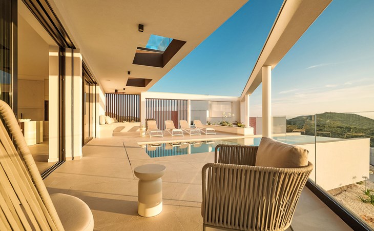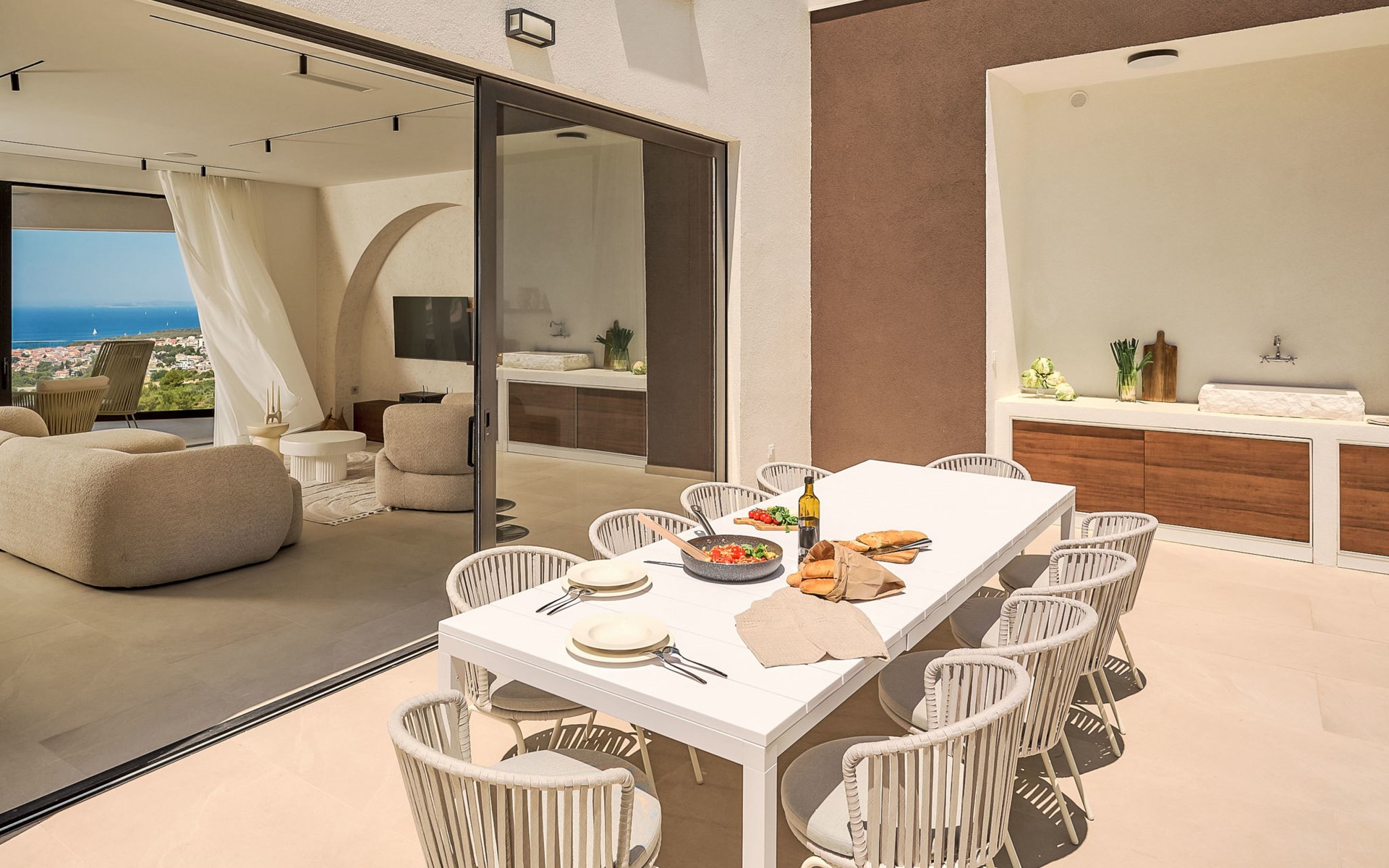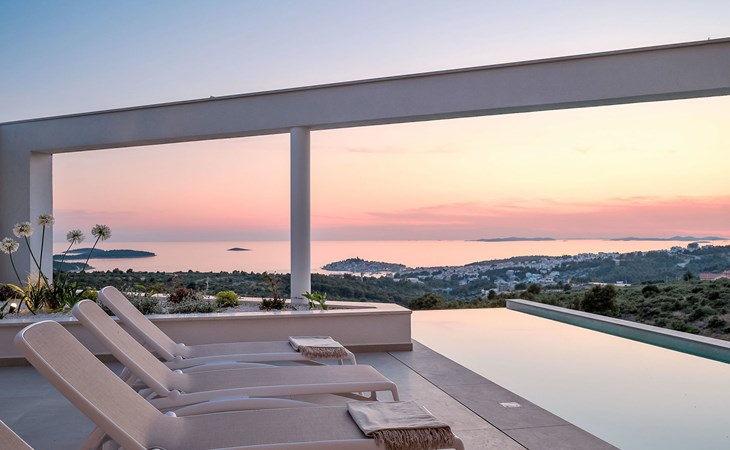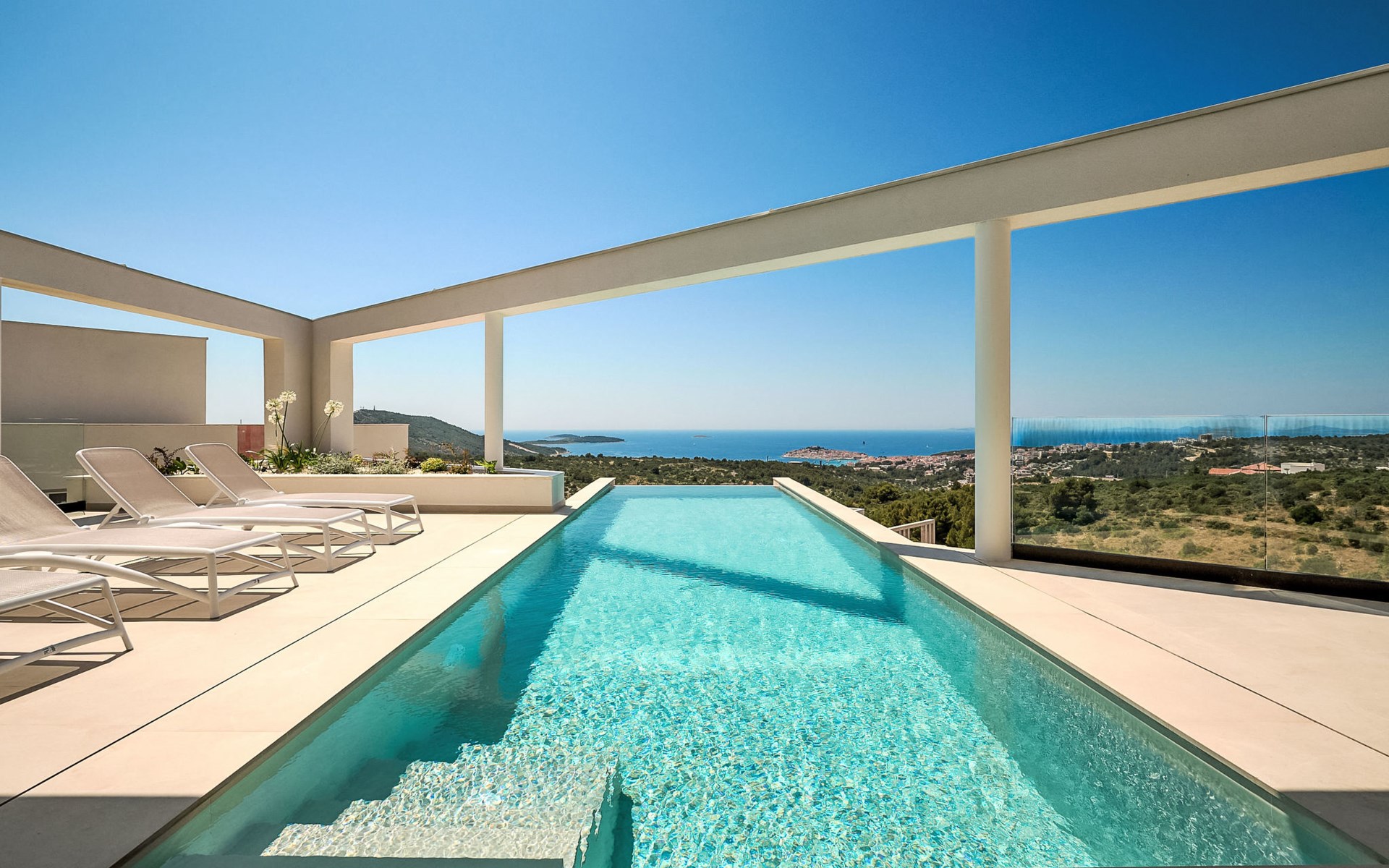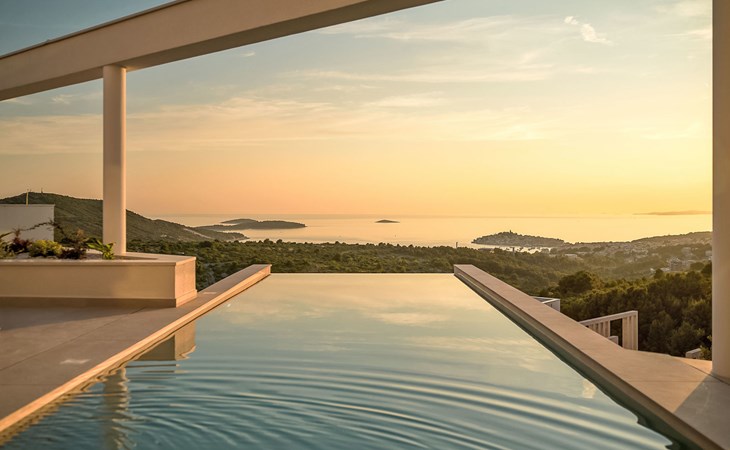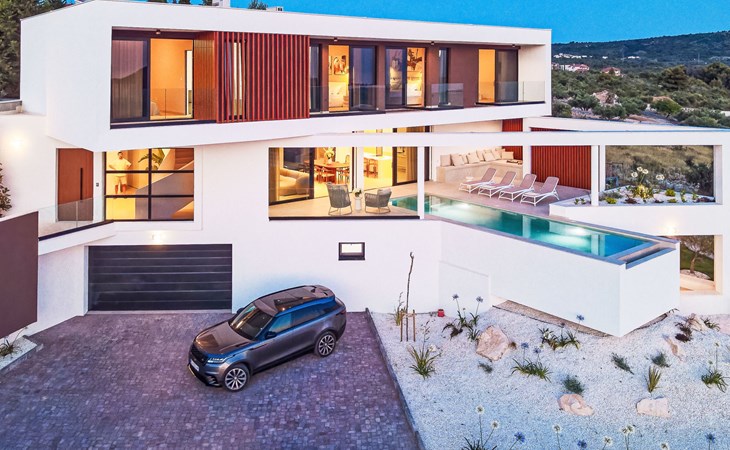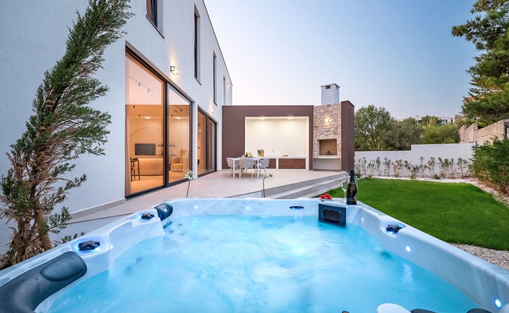 Moderne villa "Five K", van 3 verdiepingen. 2.3 km van het centrum van Primošten, rustige, zonnige ligging, 2 m van zee, 2.3 km van het strand, aan een doodlopende weg. Voor alleengebruik: terrein 1.100 m2 (omheind), tuin, ligweide 200 m2, openluchtzwembad hoekig (10 x 3 m, 150 cm diepte, seizoensgebonden beschikbaarheid: 30.Mrt. - 12.Okt.) met trap. Buitendouche, hot tub, terras (55 m2), tuinmeubelen, barbecue, kinderspeelplaats. In het huis: internetaansluiting, biljart, speelkamer, tafelvoetbal, wasmachine, droger. (extra). Parkeerplaats (voor 4 auto's) bij het huis op het terrein, eigen garage. Winkel 2 km, restaurant 2.5 km, bushalte 2 km, kiezelstrand 2.3 km, rotsstrand 2.3 km. Jachthaven 2 km.