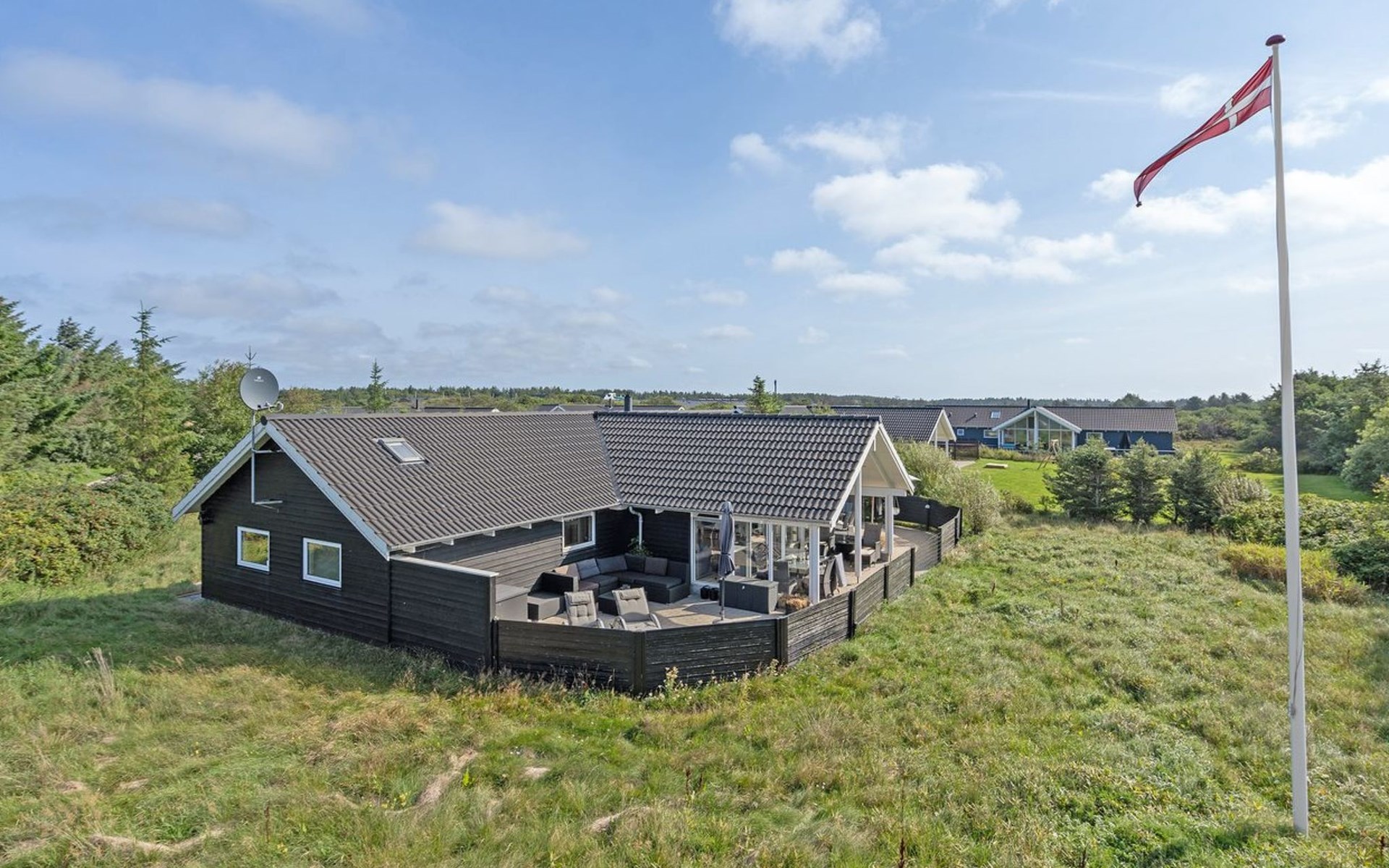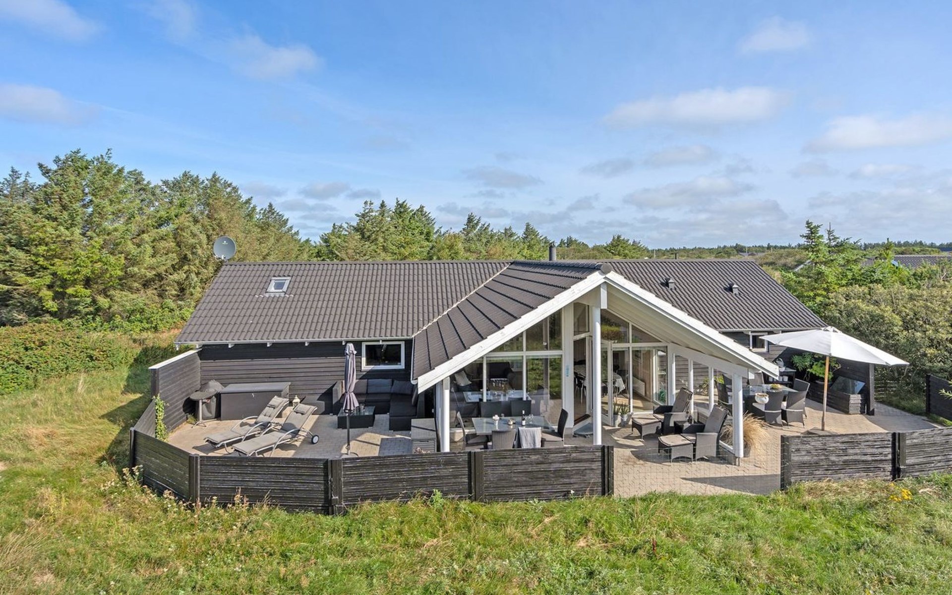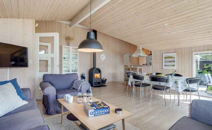 Eengezinswoning, bouwjaar 2015. 500 m van zee. Voor alleengebruik: wild terrein 1.339 m2. Terras (60 m2). In het huis: sauna, wasmachine, droger. Parkeerplaats bij het huis. Levensmiddelenwinkel 100 m. De eigenaar accepteert geen jeugdgroepen.