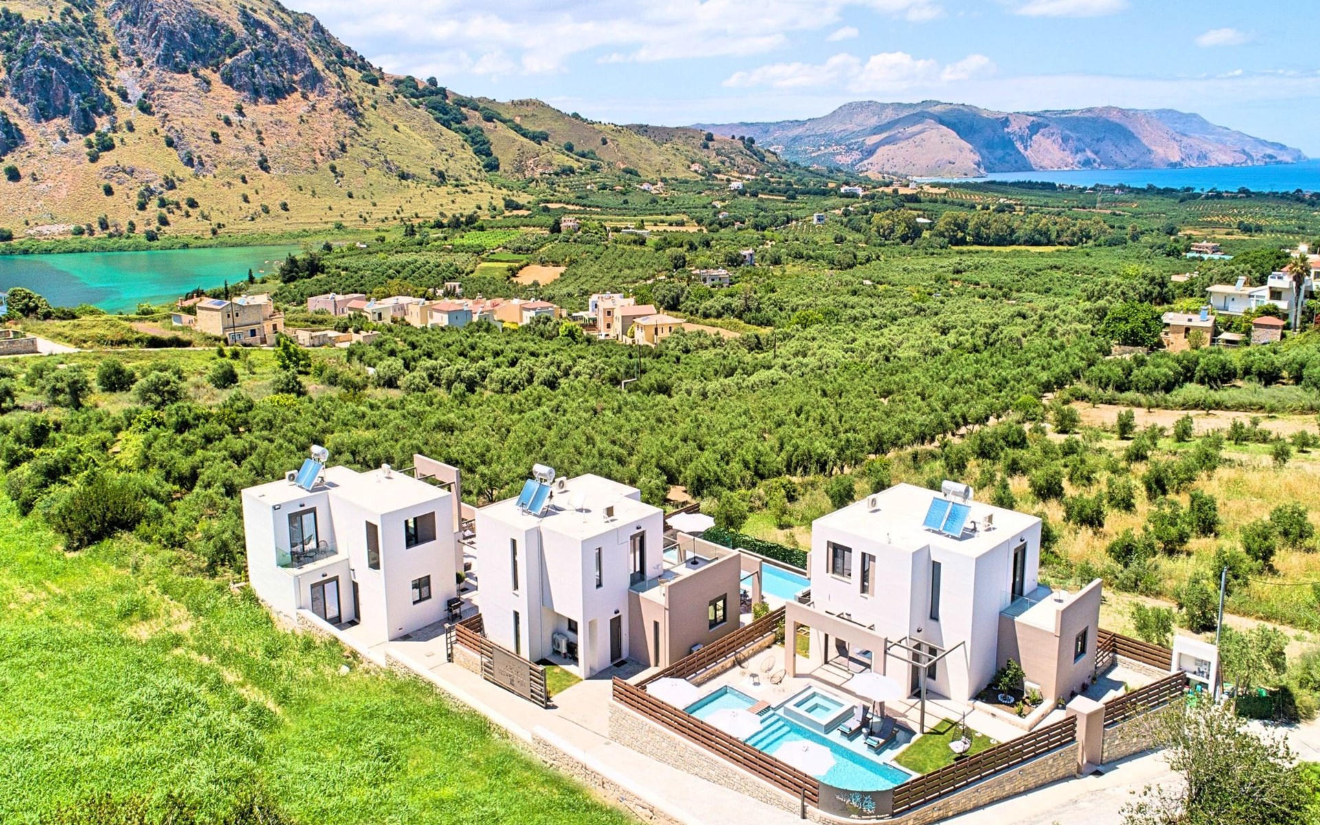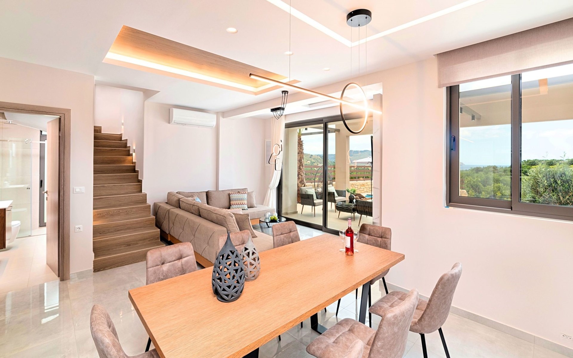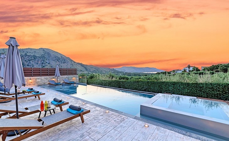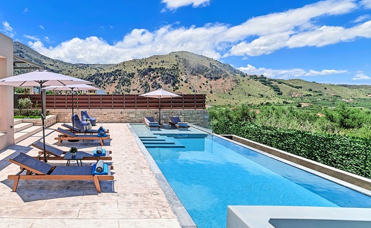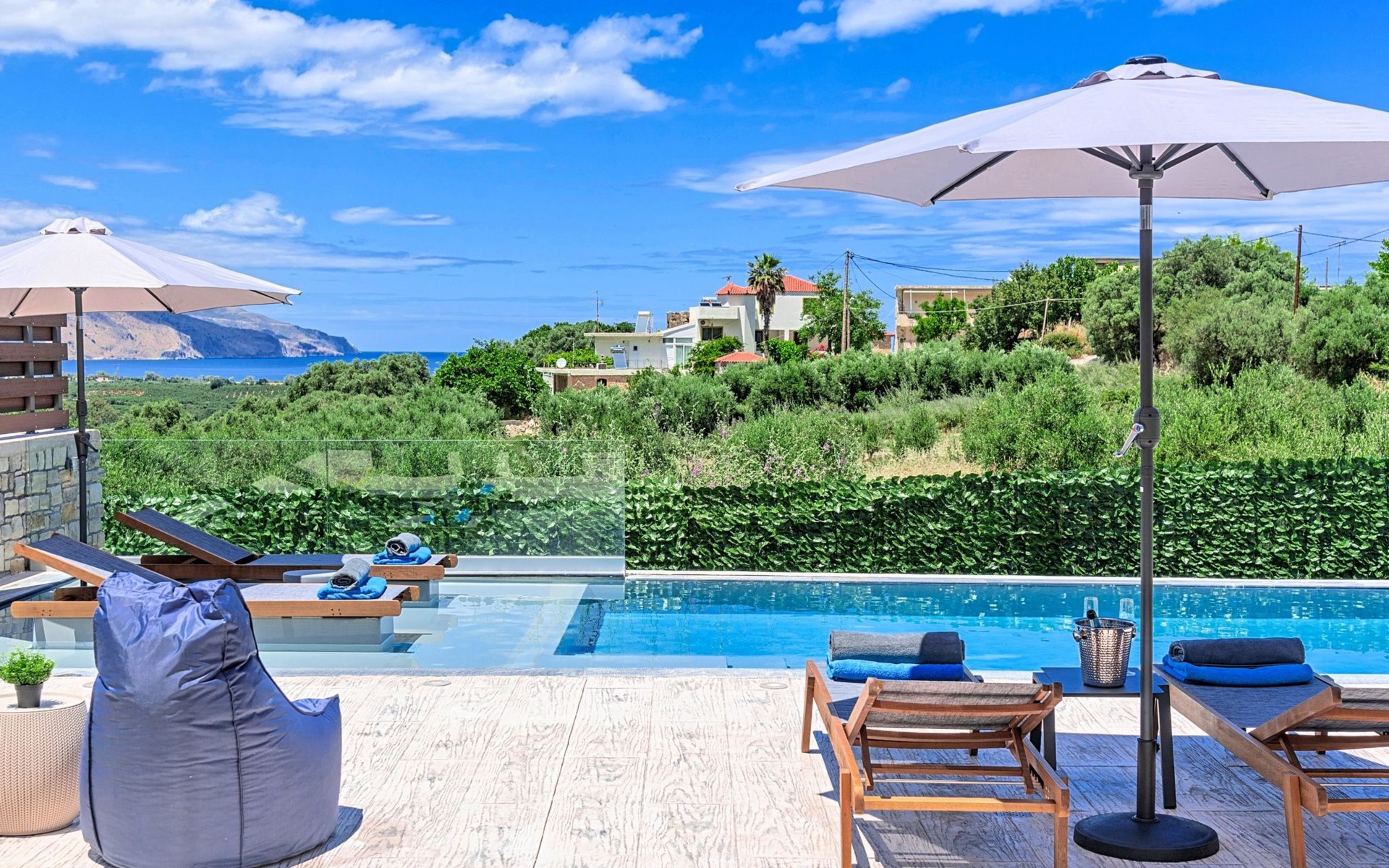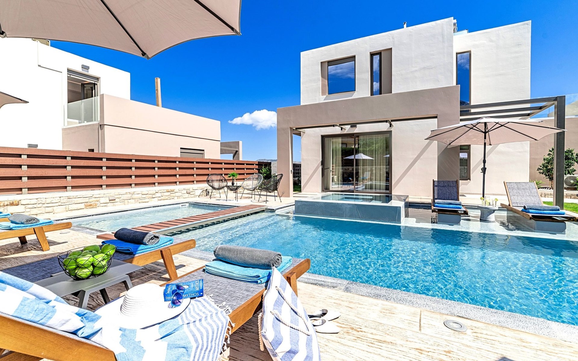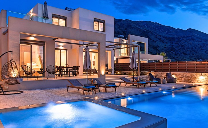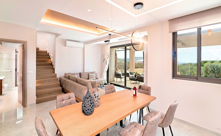 Nuzzled in a gorgeous setting, above the sun kissed beach of Georgioupolis in Crete, Minoas Villas captures the essence of chic and luxurious living only few minutes away from the shimmering sea. Built amphitheatrically with direct sea views, this exceptional built Villas, member of the HotelPraxis Group evokes the island’s Cretan spirit and cosmopolitan charm in its elegant environs while ensuring a holiday beyond comparison. Minoas Villas offers guests the opportunity to truly immerse themselves in the Cretan experience. Within easy reach from the island’s famous Kournas Lake and the popular town of Georgioupolis our villas combine a contemporary, modern style with supreme comfort. Built in 2019 our villas offer guests an exclusive, relaxing experience all within the idyllic setting of Greece’s most hospitable island. Our philosophy is simple: to offer first-rate hospitality coupled with unrivalled privacy. All Villas are fully equipped, offering our quests the required convenience in order to enjoy unforgettable relaxing vacations throughout spring, summer and autumn. Minoas Villas is a complex of three villas, ideal for big families, a group of families or a group of friends. Enjoy your vacations with your parents or with the rest of your family members while at the same time preserving your privacy just like at your own home. Our Villas are built one next to the other.● Private parking area. ● Direct access to the swimming pool area. ● Private Heated Swimming pool with children/jacuzzi section. The outdoor pool is heated and can reach 6 to 8 degrees more that the 24 h average air temperature with maximum value of 29°C ● Swimming Pool cleaning twice per week ● Sun lounge area with sun beds and umbrellas. ● BBQ next to the swimming pool. The villa can accommodate up to ten guests.Minoas Villas is a complex of three villas, ideal for big families, a group of families or a group of friends. Enjoy your vacations with your parents or with the rest of your family members while at the same time preserving your privacy just like at your own home. Our Villas are built one next to the other. Facilities of the Sea Villa (First from the Road) Ground floor ● A large living-dining room with sofas (can accommodate two guests) with direct access to the terrace. ● Kitchen with an oven, a fridge, dishwasher, a coffee maker, tea facilities, a juicer, a toaster, a dish set and dining area. ● A master bedroom with a queen-size double bed, smart TV Set and private bathroom with shower. ● A large common bathroom with shower at the ground floor. Upper Floor ● A second bedroom with a queen-size double bed, smart TV set. ● A third bedroom with two twin push together single beds ● A fourth bedroom with two twin push together single beds ● A large bathroom with shower ● Smart large TV at the living room. ● Air-conditioning in all areas. ● Free WiFi internet access. ● Outdoor dining set (table with chairs). ● Washing machine and dryer ● Iron and ironing board. ● Safe deposit box. ● Hair dryer. ● Linen and towels. ● Toiletries. ● Swimming pool towels. ● Baby cot. ● High chair for children. ● Housekeeping, towels and bed linen changed and cleaned every 3 or 4 days. ● Private parking area. ● Direct access to the swimming pool area. ● Private Heated Swimming pool with children/jacuzzi section. ● Swimming Pool cleaning twice per week ● Sun lounge area with sun beds and umbrellas. ● BBQ next to the swimming pool. The villa can accommodate up to ten guests. Guests of Minoas Villas can also be provided with the following services, upon request and at extra cost: ● Car rental service. ● Transfer service. ● Travel services. ● Massage sessions. ● Daily delivery of groceries. ● Diving lessons. ● Climbing lessons. ● Water sports. ● Yacht cruises. ● Babysitting. Facilities of the Sun Villa (Middle Villa of the complex) Ground floor ● A large living-dining room with sofas (can accommodate two guests) with direct access to the terrace. ● Kitchen with an oven, a fridge, dishwasher, a coffee maker, tea facilities, a juicer, a toaster, a dish set and dining area. ● A master bedroom with a queen-size double bed, smart TV Set and private bathroom with shower. ● A large common bathroom with shower at the ground floor. Upper Floor ● A second bedroom with a queen-size double bed, smart TV set. ● A third bedroom with two single bunk beds ● A fourth bedroom with two single twin push together beds ● A large bathroom with bath tub. ● Smart large TV at the living room. ● Air-conditioning in all areas. ● Free WiFi internet access. ● Outdoor dining set (table with chairs). ● Washing machine and dryer ● Iron and ironing board. ● Safe deposit box. ● Hair dryer. ● Linen and towels. ● Toiletries. ● Swimming pool towels. ● Baby cot. ● High chair for children. ● Housekeeping, towels and bed linen changed and cleaned every 3 or 4 days. ● Private parking area. ● Direct access to the swimming pool area. ● Private Heated Swimming pool with children / jacuzzi section. ● Swimming Pool cleaning twice per week ● Sun lounge area with sun beds and umbrellas. ● BBQ next to the swimming pool. The villa can accommodate up to ten guests. Guests of Minoas Villas can also be provided with the following services, upon request and at extra cost: ● Car rental service. ● Transfer service. ● Travel services. ● Massage sessions. ● Daily delivery of groceries. ● Diving lessons. ● Climbing lessons. ● Water sports. ● Yacht cruises. ● Babysitting. Facilities of the Sky Villa (Last Villa of the complex ) Ground floor ● A large living-dining room with sofas (can accommodate two guests) with direct access to the terrace. ● Kitchen with an oven, a fridge, dishwasher, a coffee maker, tea facilities, a juicer, a toaster, a dish set and dining area. ● A master bedroom with a queen-size double bed, smart TV 