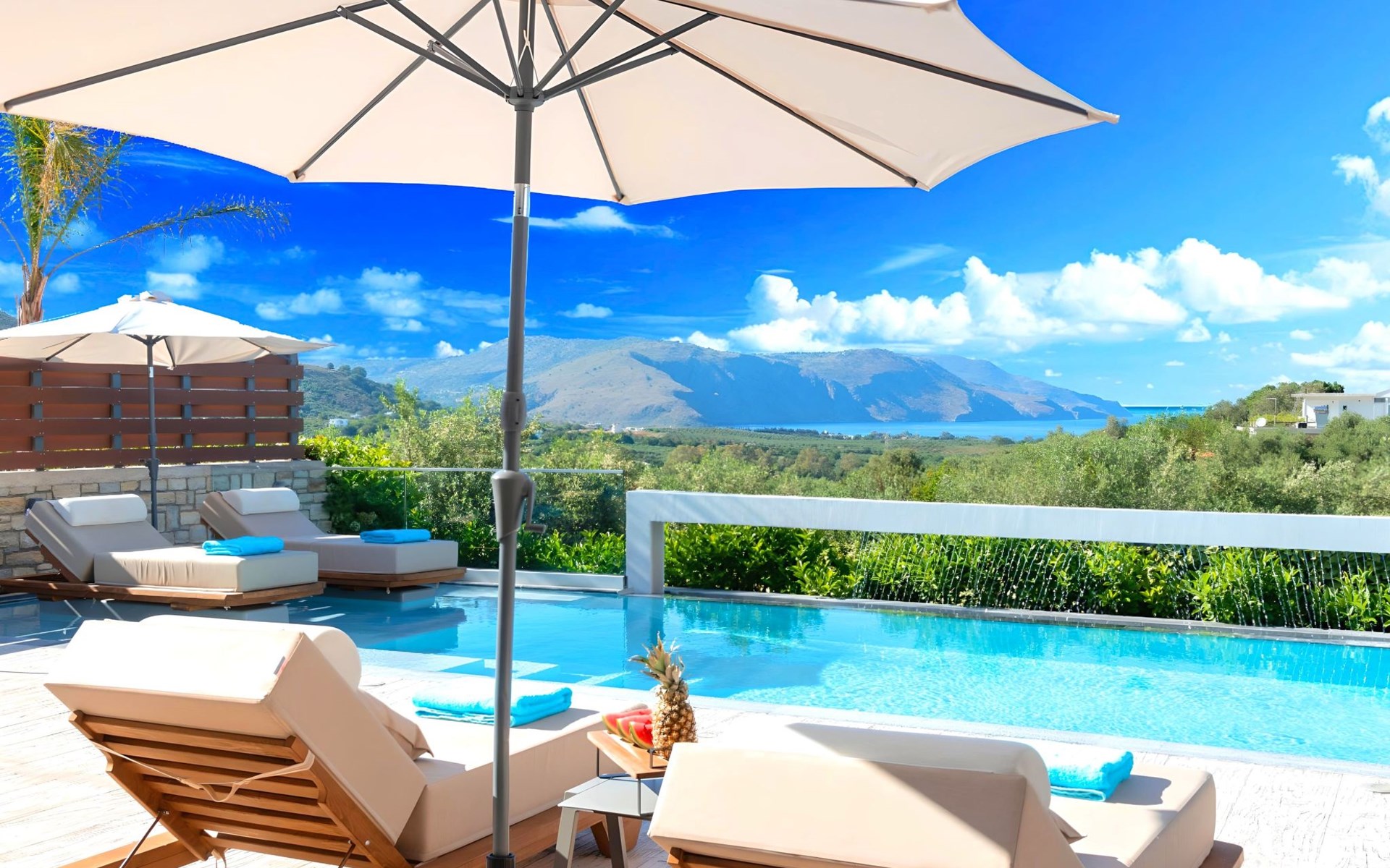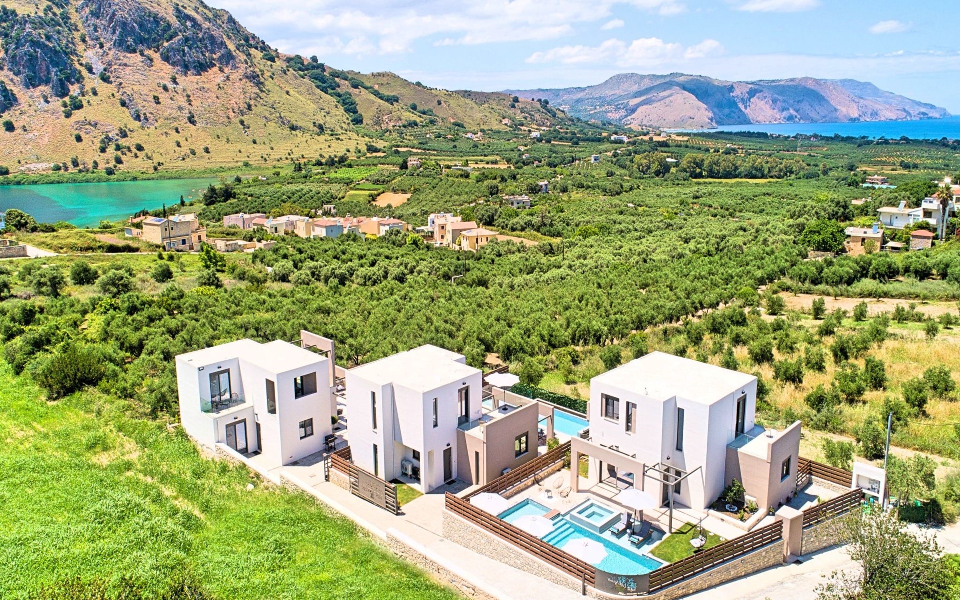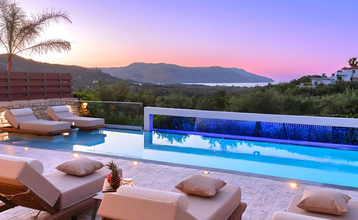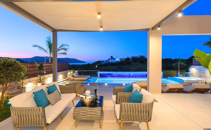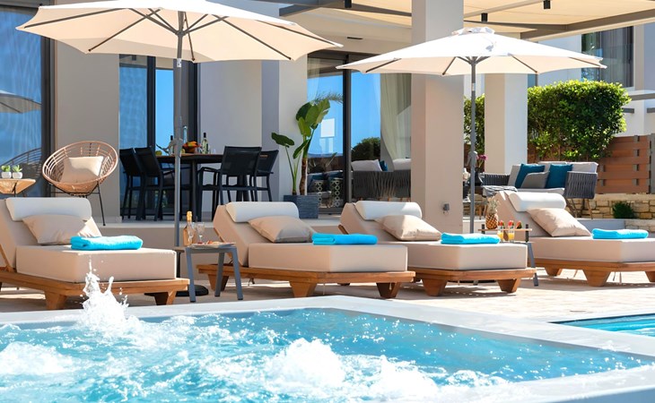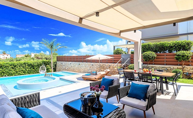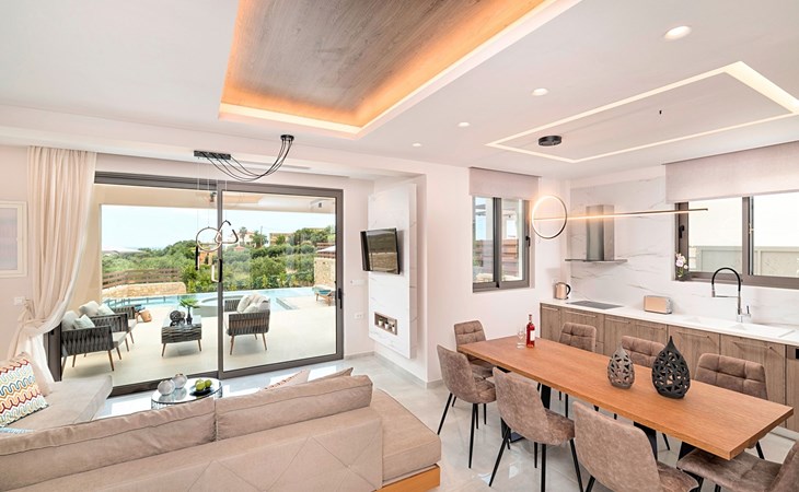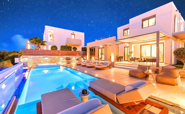 Nuzzled in a gorgeous setting, above the sun kissed beach of Georgioupolis in Crete, Minoas Villas captures the essence of chic and luxurious living only few minutes away from the shimmering sea.Built amphitheatrically with direct sea views, this exceptional built Villas, member of the HotelPraxis Group evokes the island’s Cretan spirit and cosmopolitan charm in its elegant environs while ensuring a holiday beyond comparison.Minoas Villas offers guests the opportunity to truly immerse themselves in the Cretan experience.Within easy reach from the island’s famous Kournas Lake and the popular town of Georgioupolis our villas combine a contemporary, modern style with supreme comfort.Built in 2019 our villas offer guests an exclusive, relaxing experience all within the idyllic setting of Greece’s most hospitable island.Our philosophy is simple: to offer first-rate hospitality coupled with unrivalled privacy.All Villas are fully equipped, offering our quests the required convenience in order to enjoy unforgettable relaxing vacations throughout spring, summer and autumn.Minoas Villas is a complex of three villas, ideal for big families, a group of families or a group of friends.Enjoy your vacations with your parents or with the rest of your family members while at the same time preserving your privacy just like at your own home.Our Villas are built one next to the other.The outdoor pool is heated and can reach 6 to 8 degrees more that the 24 h average air temperature with maximum value of 29°CShort descriptionOther : Non-smoking houseShort description 1Number of kitchens : 2SurroundingNearby sports facilities : Basketball, Bike tours, Canoeing, Climbing, Diving, Fishing, Mountain climbing, Mountainbiking, Paragliding, Riding possibilities, Sailing, Surfing, Tennis, Water skiingRental Facilities : Bicycle rental service, Boat rental service, car rentalThe outdoor pool is heated and can reach 6 to 8 degrees more that the 24 h average air temperature with maximum value of 29°C. 1172352