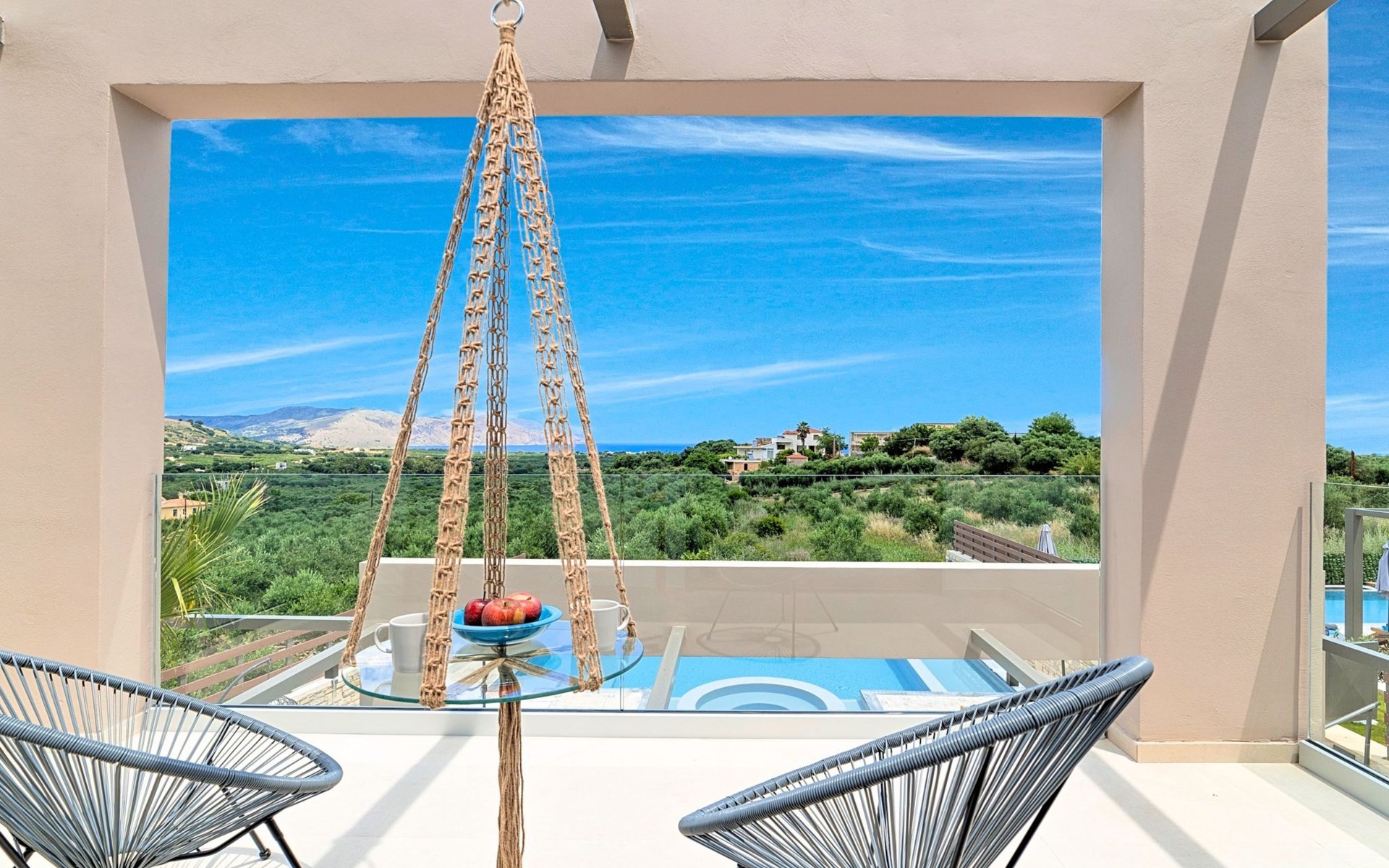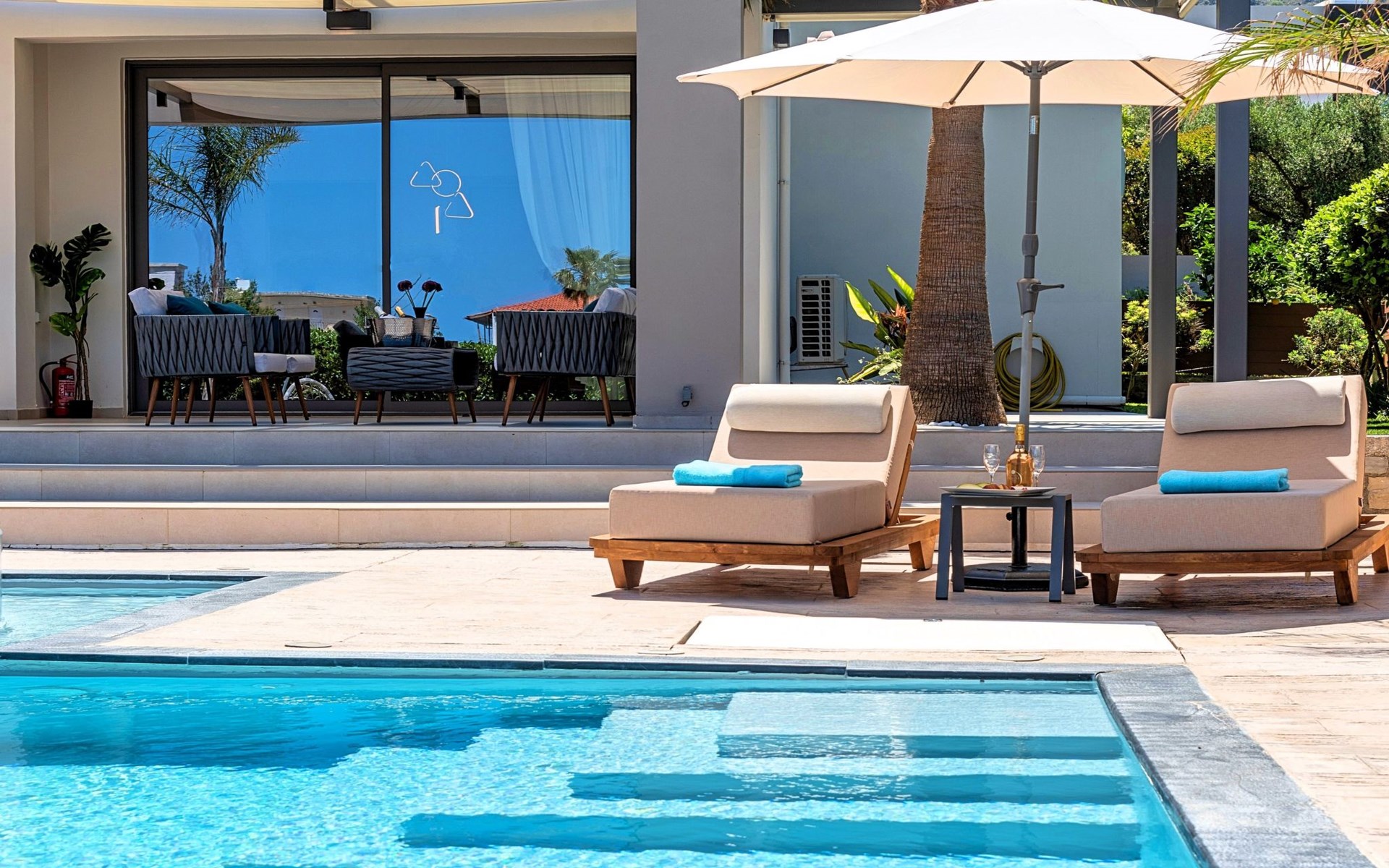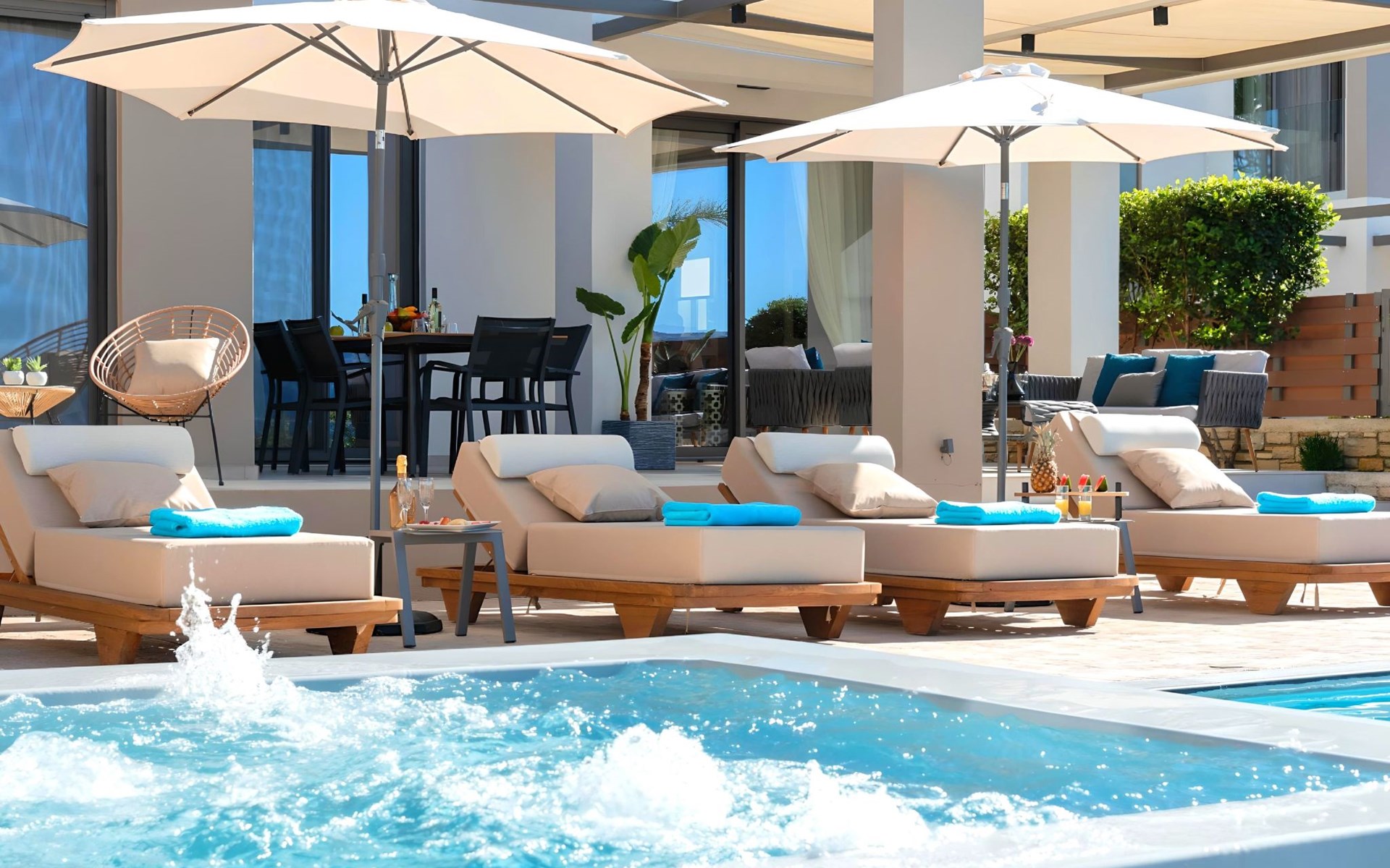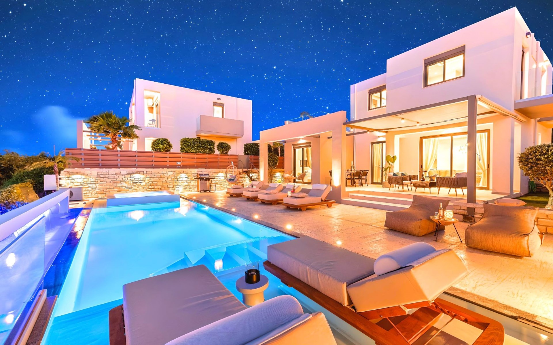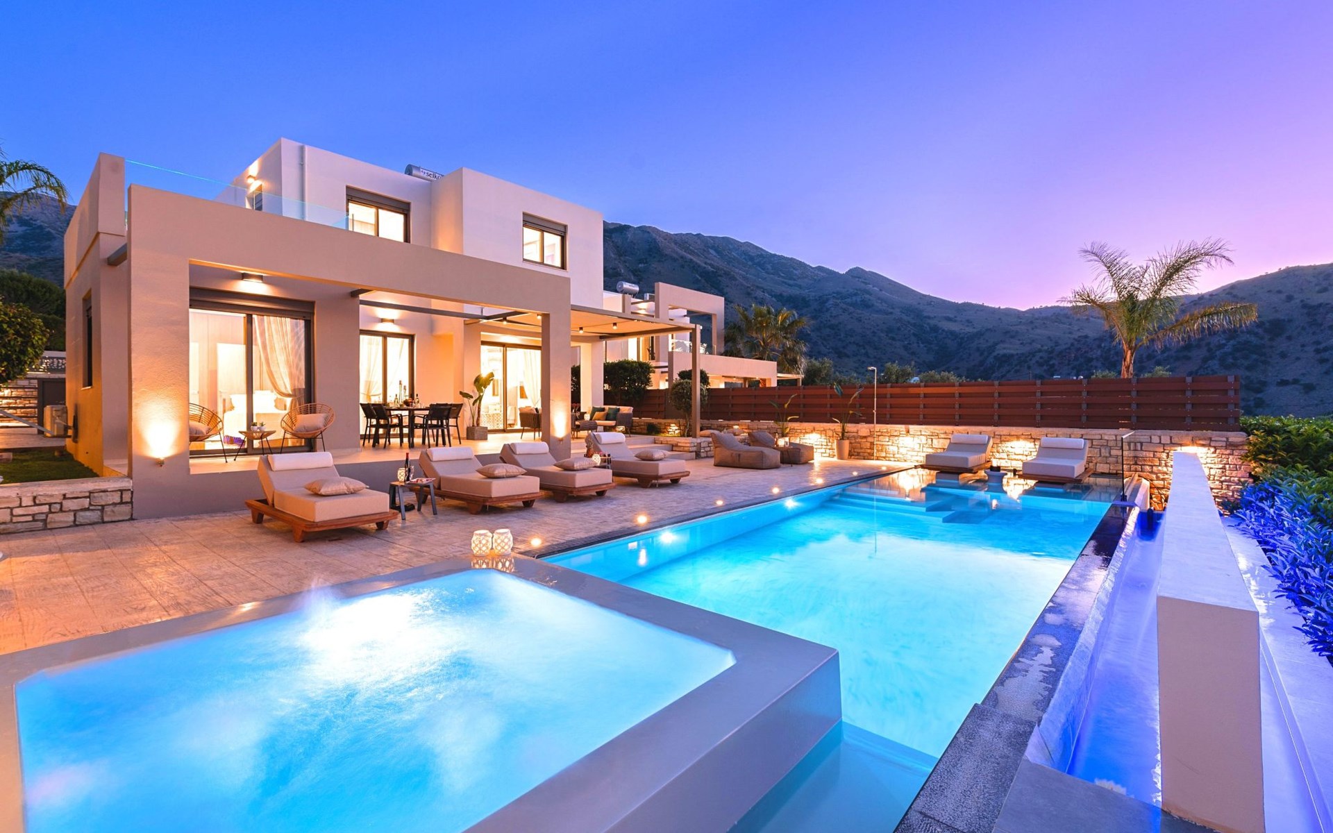 Nuzzled in a gorgeous setting, above the sun kissed beach of Georgioupolis in Crete, Minoas Villas captures the essence of chic and luxurious living only few minutes away from the shimmering sea.Built amphitheatrically with direct sea views, this exceptional built Villas, member of the HotelPraxis Group evokes the island’s Cretan spirit and cosmopolitan charm in its elegant environs while ensuring a holiday beyond comparison.Minoas Villas offers guests the opportunity to truly immerse themselves in the Cretan experience.Within easy reach from the island’s famous Kournas Lake and the popular town of Georgioupolis our villas combine a contemporary, modern style with supreme comfort.Built in 2019 our villas offer guests an exclusive, relaxing experience all within the idyllic setting of Greece’s most hospitable island.Our philosophy is simple: to offer first-rate hospitality coupled with unrivalled privacy.All Villas are fully equipped, offering our quests the required convenience in order to enjoy unforgettable relaxing vacations throughout spring, summer and autumn.Minoas Villas is a complex of three villas, ideal for big families, a group of families or a group of friends.Enjoy your vacations with your parents or with the rest of your family members while at the same time preserving your privacy just like at your own home.Our Villas are built one next to the other.The outdoor pool is heated and can reach 6 to 8 degrees more that the 24 h average air temperature with maximum value of 29°CShort descriptionOther : Non-smoking houseShort description 1Number of kitchens : 2SurroundingNearby sports facilities : Basketball, Bike tours, Canoeing, Climbing, Diving, Fishing, Mountain climbing, Mountainbiking, Paragliding, Riding possibilities, Sailing, Surfing, Tennis, Water skiingRental Facilities : Bicycle rental service, Boat rental service, car rentalThe outdoor pool is heated and can reach 6 to 8 degrees more that the 24 h average air temperature with maximum value of 29°C. 1172352