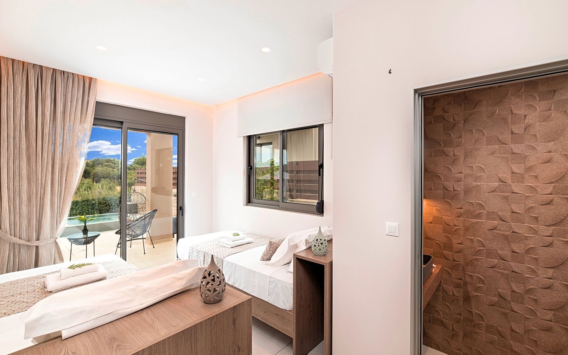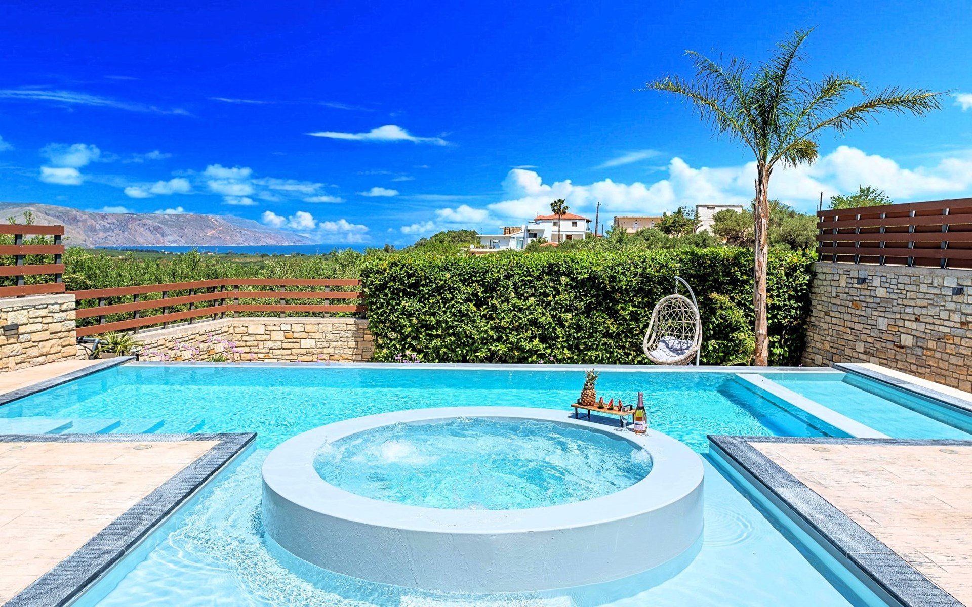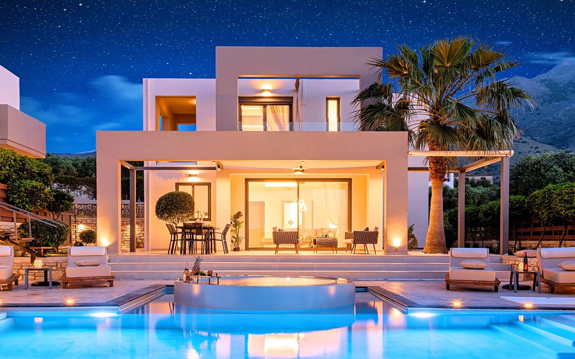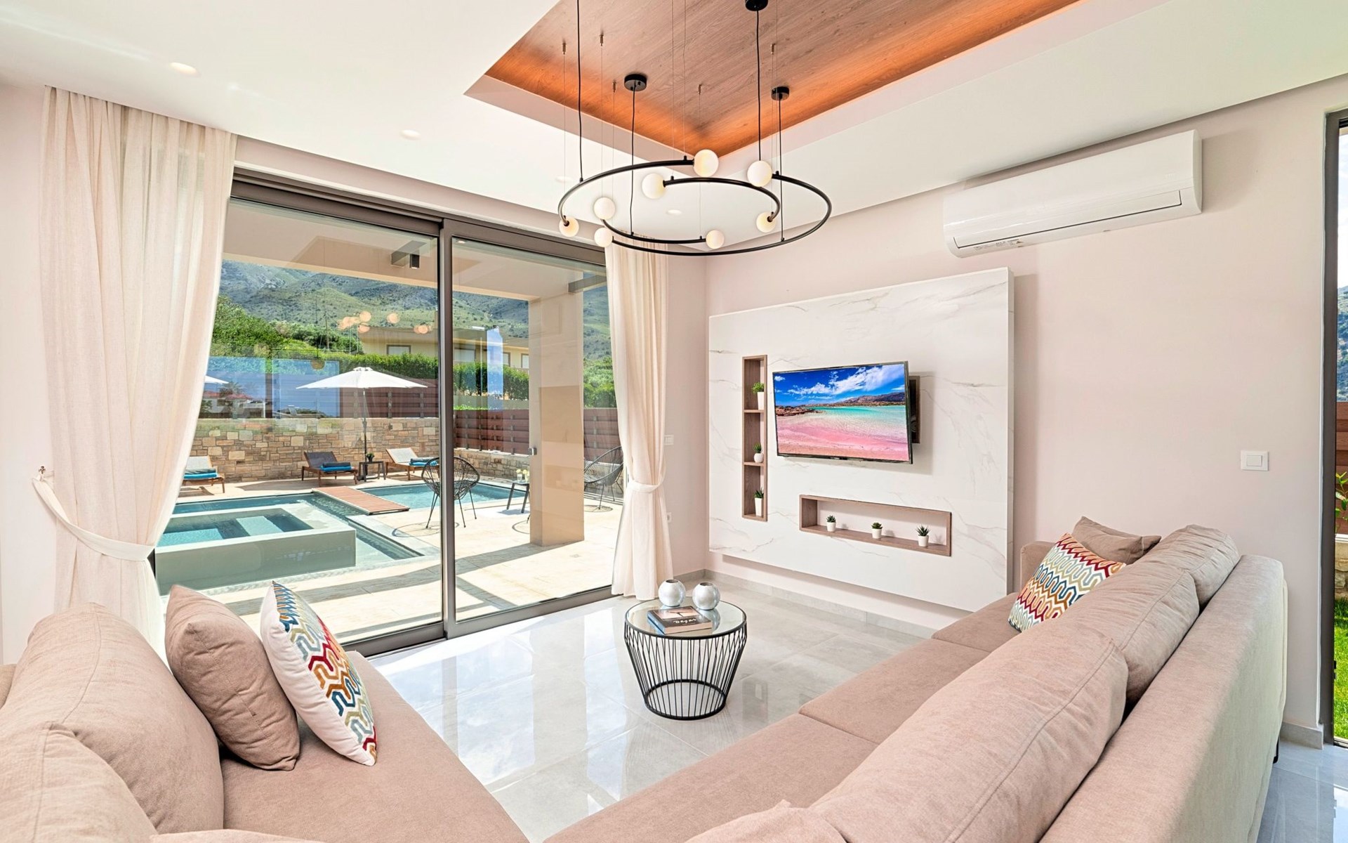 Nuzzled in a gorgeous setting, above the sun kissed beach of Georgioupolis in Crete, Minoas Villas captures the essence of chic and luxurious living only few minutes away from the shimmering sea.Built amphitheatrically with direct sea views, this exceptional built Villas, member of the HotelPraxis Group evokes the island’s Cretan spirit and cosmopolitan charm in its elegant environs while ensuring a holiday beyond comparison.Minoas Villas offers guests the opportunity to truly immerse themselves in the Cretan experience.Within easy reach from the island’s famous Kournas Lake and the popular town of Georgioupolis our villas combine a contemporary, modern style with supreme comfort.Built in 2019 our villas offer guests an exclusive, relaxing experience all within the idyllic setting of Greece’s most hospitable island.Our philosophy is simple: to offer first-rate hospitality coupled with unrivalled privacy.All Villas are fully equipped, offering our quests the required convenience in order to enjoy unforgettable relaxing vacations throughout spring, summer and autumn.Minoas Villas is a complex of three villas, ideal for big families, a group of families or a group of friends.Enjoy your vacations with your parents or with the rest of your family members while at the same time preserving your privacy just like at your own home.Our Villas are built one next to the other.The outdoor pool is heated and can reach 6 to 8 degrees more that the 24 h average air temperature with maximum value of 29°CShort descriptionOther : Non-smoking houseShort description 1Number of kitchens : 2SurroundingNearby sports facilities : Basketball, Bike tours, Canoeing, Climbing, Diving, Fishing, Mountain climbing, Mountainbiking, Paragliding, Riding possibilities, Sailing, Surfing, Tennis, Water skiingRental Facilities : Bicycle rental service, Boat rental service, car rentalThe outdoor pool is heated and can reach 6 to 8 degrees more that the 24 h average air temperature with maximum value of 29°C. 1172352