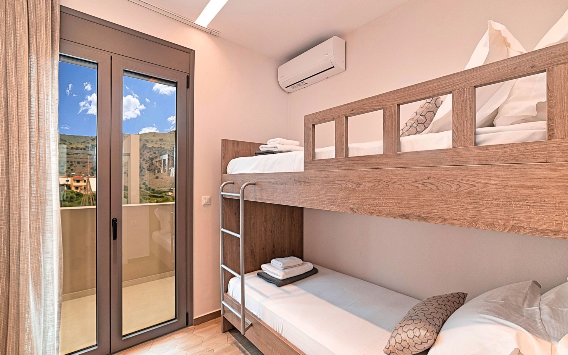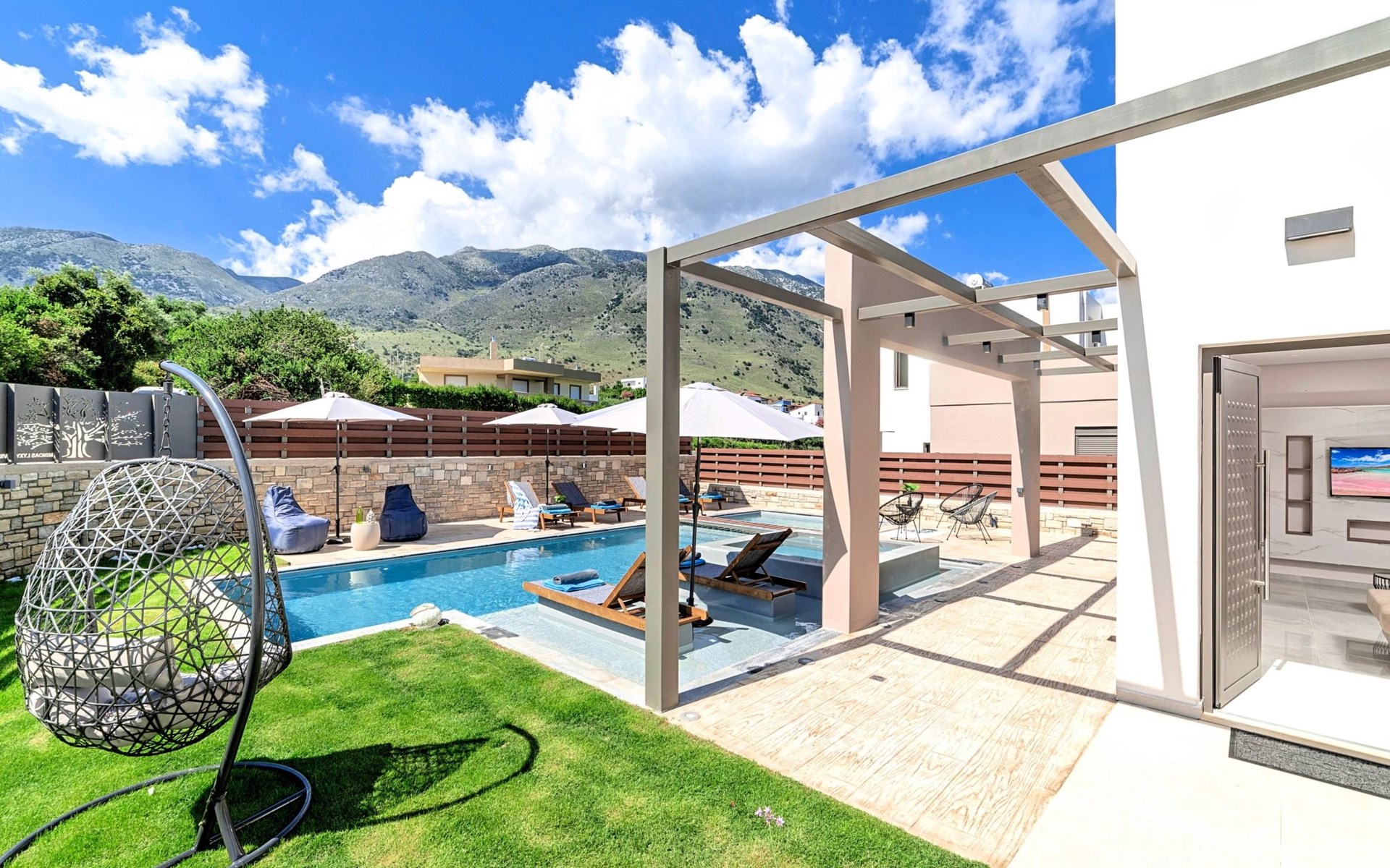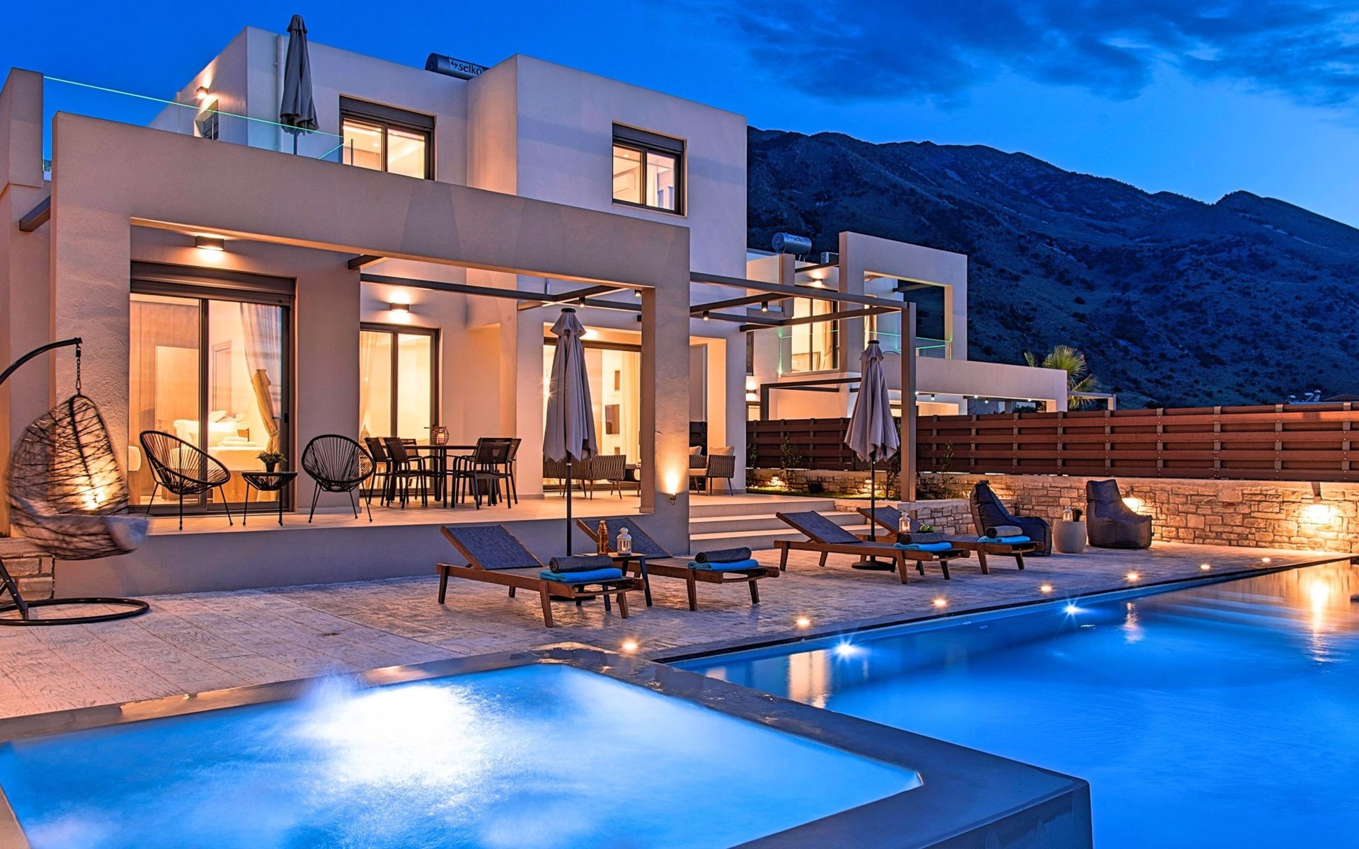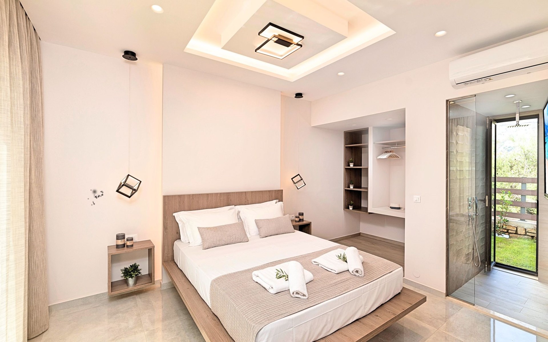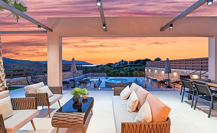 Nuzzled in a gorgeous setting, above the sun kissed beach of Georgioupolis in Crete, Minoas Villas captures the essence of chic and luxurious living only few minutes away from the shimmering sea. Built amphitheatrically with direct sea views, this exceptional built Villas, member of the HotelPraxis Group evokes the island’s Cretan spirit and cosmopolitan charm in its elegant environs while ensuring a holiday beyond comparison. Minoas Villas offers guests the opportunity to truly immerse themselves in the Cretan experience. Within easy reach from the island’s famous Kournas Lake and the popular town of Georgioupolis our villas combine a contemporary, modern style with supreme comfort. Built in 2019 our villas offer guests an exclusive, relaxing experience all within the idyllic setting of Greece’s most hospitable island. Our philosophy is simple: to offer first-rate hospitality coupled with unrivalled privacy. All Villas are fully equipped, offering our quests the required convenience in order to enjoy unforgettable relaxing vacations throughout spring, summer and autumn. Minoas Villas is a complex of three villas, ideal for big families, a group of families or a group of friends. Enjoy your vacations with your parents or with the rest of your family members while at the same time preserving your privacy just like at your own home. Our Villas are built one next to the other.● Private parking area. ● Direct access to the swimming pool area. ● Private Heated Swimming pool with children/jacuzzi section. The outdoor pool is heated and can reach 6 to 8 degrees more that the 24 h average air temperature with maximum value of 29°C ● Swimming Pool cleaning twice per week ● Sun lounge area with sun beds and umbrellas. ● BBQ next to the swimming pool. The villa can accommodate up to ten guests.Facilities of the Villa Ground floor ● A large living-dining room with sofas (can accommodate two guests) with direct access to the terrace. ● Kitchen with an oven, a fridge, dishwasher, a coffee maker, tea facilities, a juicer, a toaster, a dish set and dining area. ● A master bedroom with a queen-size double bed, smart TV Set and private bathroom with shower. ● A large common bathroom with shower at the ground floor. Upper Floor ● A second bedroom with a queen-size double bed, smart TV set. ● A third bedroom with two twin push together single beds ● A fourth bedroom with two twin push together single beds ● A large bathroom with shower ● Smart large TV at the living room. ● Air-conditioning in all areas. ● Free WiFi internet access. ● Outdoor dining set (table with chairs). ● Washing machine and dryer ● Iron and ironing board. ● Safe deposit box. ● Hair dryer. ● Linen and towels. ● Toiletries. ● Swimming pool towels. ● Baby cot. ● High chair for children. ● Housekeeping, towels and bed linen changed and cleaned every 3 or 4 days. Facilities of the Sky Villa Ground floor ● A large living-dining room with sofas (can accommodate two guests) with direct access to the terrace. ● Kitchen with an oven, a fridge, dishwasher, a coffee maker, tea facilities, a juicer, a toaster, a dish set and dining area. ● A master bedroom with a queen-size double bed, smart TV Set and private bathroom with shower. ● A large common bathroom with shower at the ground floor. Upper Floor ● A second bedroom with a queen-size double bed, smart TV set and gym/workout equipment’s. ● A third bedroom with two single twin push together beds ● A large bathroom with shower. ● Smart large TV at the living room. ● Air-conditioning in all areas. ● Free WiFi internet access. ● Outdoor dining set (table with chairs). ● Washing machine and dryer ● Iron and ironing board. ● Safe deposit box. ● Hair dryer. ● Linen and towels. ● Toiletries. ● Swimming pool towels. ● Baby cot. ● High chair for children. ● Housekeeping, towels and bed linen changed and cleaned every 3 or 4 days. ● Private parking area. ● Direct access to the swimming pool area. ● Private Heated Swimming pool with children / jacuzzi section. ● Swimming Pool cleaning twice per week ● Sun lounge area with sun beds and umbrellas. ● BBQ next to the swimming pool. The villa can accommodate up to 8 guests.Kournas Lake is the only freshwater lake in Crete. Lake Kournas was known as Lake Koressia in antiquity but later took its current name from the Arabic word for lake. The lake is in a beautiful landscape, lying in a valley among the hills, about 4 km from Georgioupolis in Chania Prefecture (west Crete). Lake Kournas is relatively small, with a maximum length of 1,087 m and a maximum breadth of 880 m. It covers an area of 579,000 sq. m. and is generally shallow, 22.5 m at its deepest point, while it lies approximately 20 m above sea level. Kournas lake with the sea near Georgioupoli in the background Kournas Lake is the ideal place for an afternoon walk or a daytrip nearby. Many people like to have an afternoon picnic there. The landscape is lovely and relaxing, whether you want to go for a walk in the countryside, swim or ride a pedalo on the lake. There are two springs on the southeast bank, one of which, the Mati or Amati (“eye”) as the locals call it, is visible in late summer. The lake is fed by streams from the nearby mountains and hills, whose underground courses are interrupted by the local bedrock on the way to the sea.DISTANCES Chania Airport: 50 km (45 min. drive to Kournas/Kavalos village). Souda Port of Chania: 35 km (25min. drive to Kournas/Kavalos village). Heraklion Port or Airport: 103 km (90 min. drive to Kournas/Kavalos village). From Chania airport or Souda port: Follow the signs to the highway in the direction of Rethymnon. Take the highway. Upon reaching Georgioupolis decrease your speed. After 600m you will see a sign to Kournas Lake, follow the signs to Kournas Lake. Drive for another 3,5km, when you reach the crossroad who leads to the Lake at your 