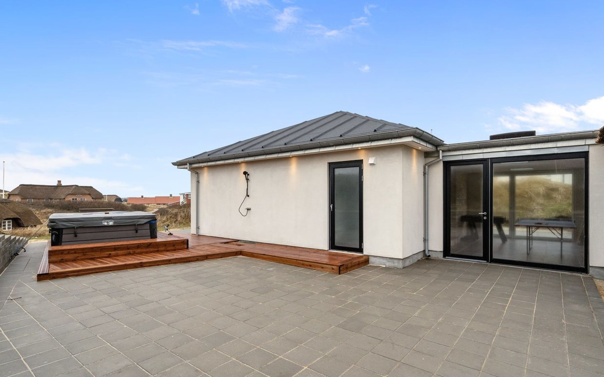Eengezinswoning, bouwjaar 1927. 100 m van zee. Voor alleengebruik: wild terrein 910 m2. Buitendouche. In het huis: wasmachine, droger. Parkeerplaats bij het huis. Levensmiddelenwinkel 1 km. Golfterrein 2 km. De eigenaar accepteert geen jeugdgroepen.