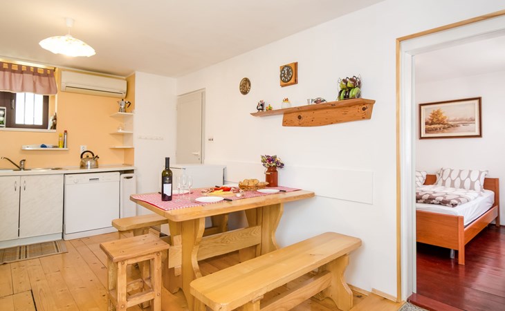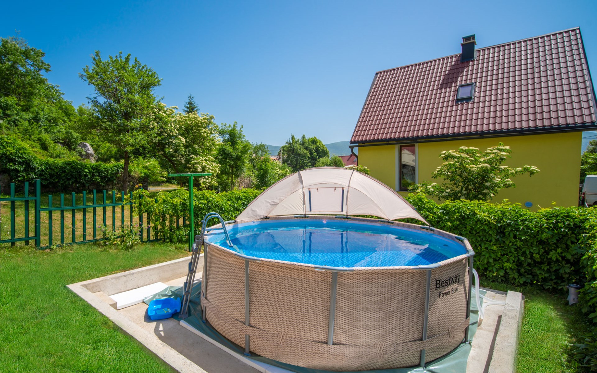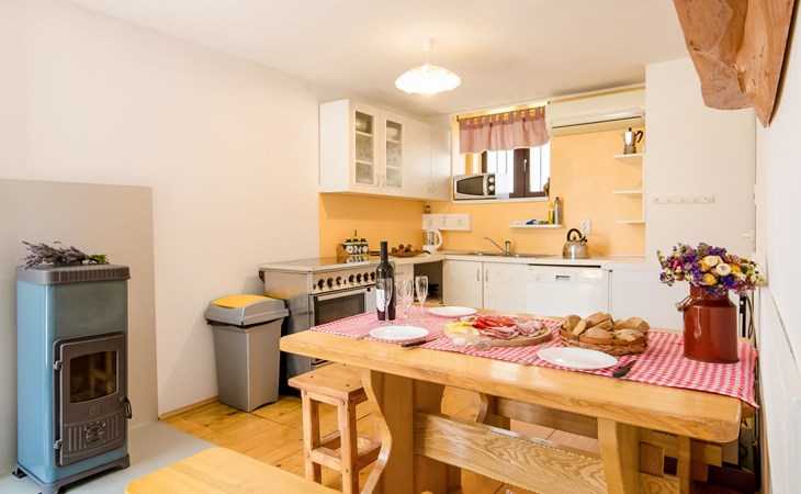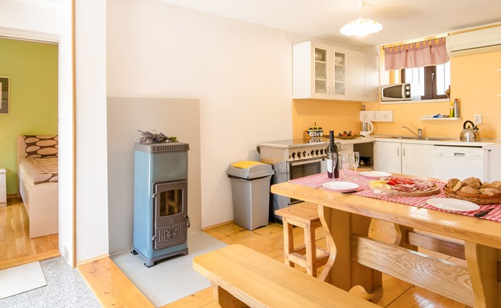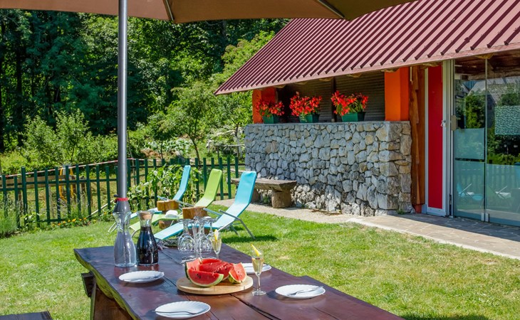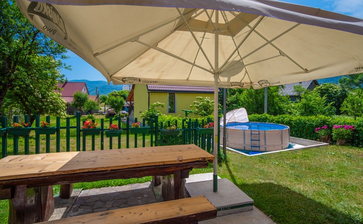 Lič 4 km van Fužine: Eengezinswoning "Maja", van 2 verdiepingen. 450 m van het centrum van Lič, rustige, zonnige ligging, 28 km van zee, 3.5 km van het meer, aan een doodlopende weg, te midden van groen. Voor alleengebruik: terrein 900 m2 met gazon 150 m2, openluchtzwembad (verhoogd) rond (4 m diameter, 100 cm diepte, seizoensgebonden beschikbaarheid: 15.Jun. - 15.Sep.). Tuinmeubelen, barbecue. In het huis: internetaansluiting, tafelvoetbal, trampoline, wasmachine (extra). Parkeerplaats (voor 4 auto's) bij het huis op het terrein. Winkel 450 m, restaurant 4 km, bakkerij 4 km, café 400 m, bushalte 4 km, treinstation 4 km, kiezelstrand 28 km, overdekt zwembad 18 km, betonnen strand 28 km. Ijsbaan 17.5 km. Attracties in de buurt: lake Bajer 3.5 km, cave Vrelo 6.5 km. Eerste verdieping is afgesloten en niet bewoond.