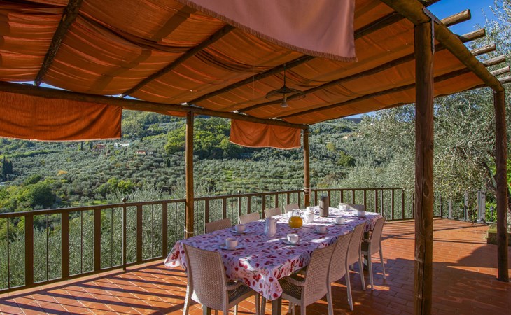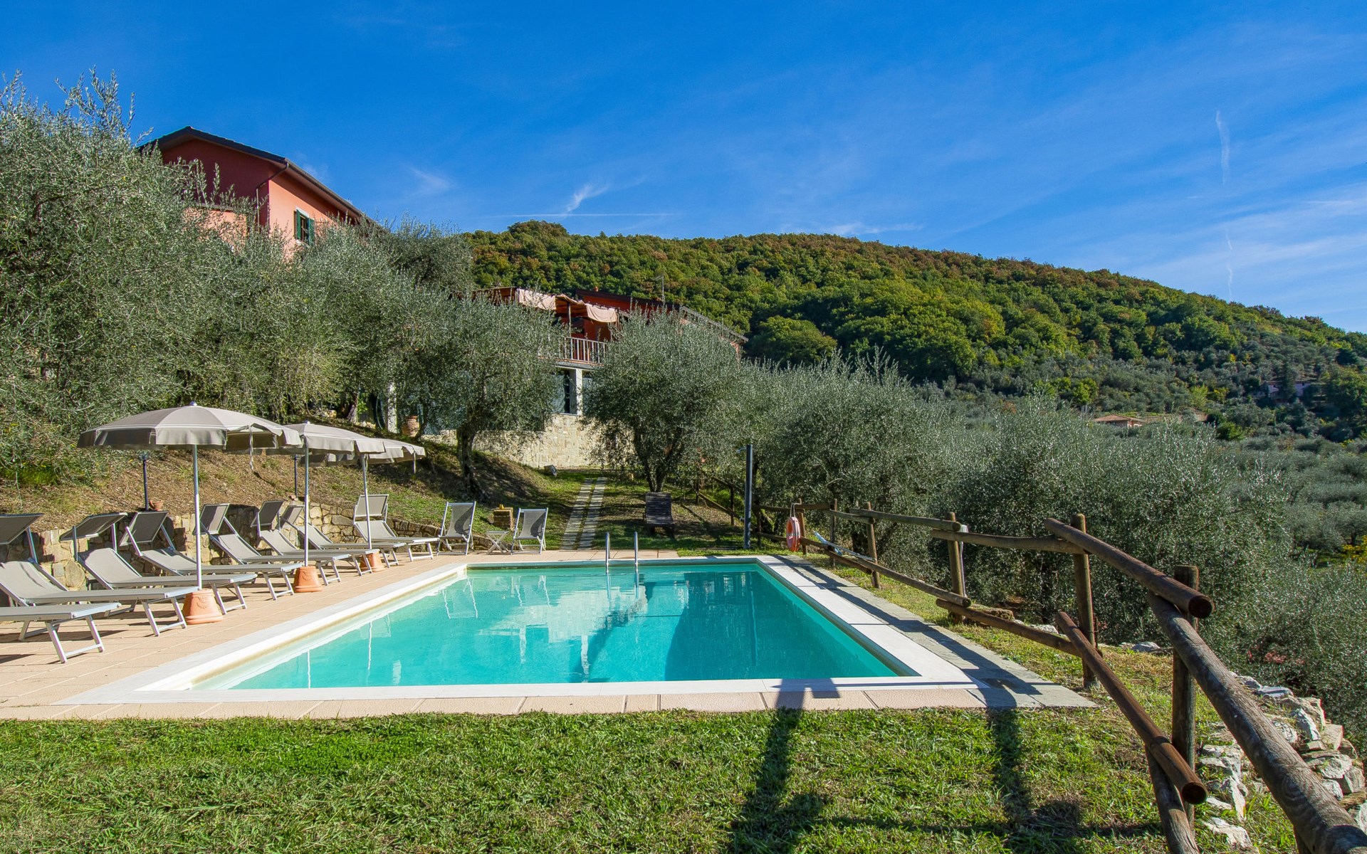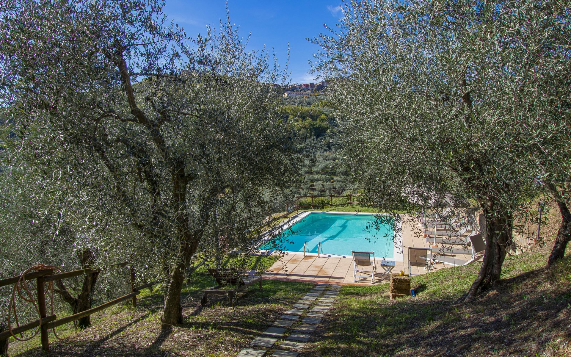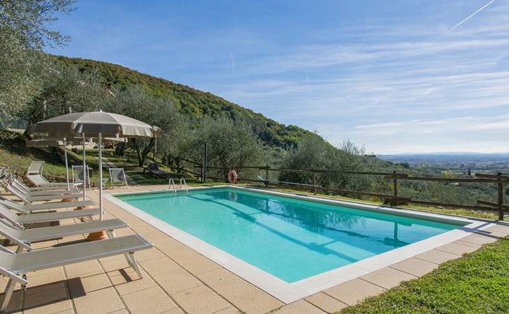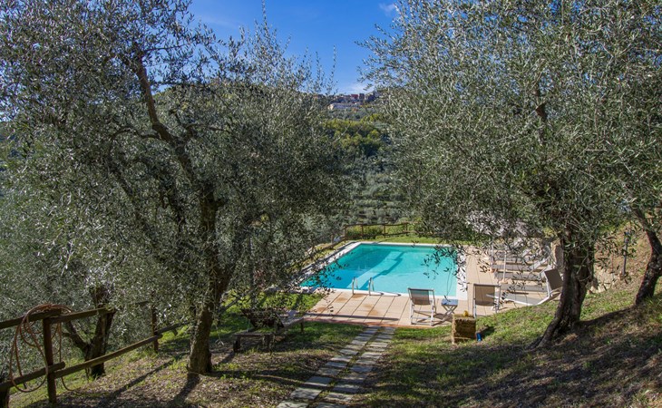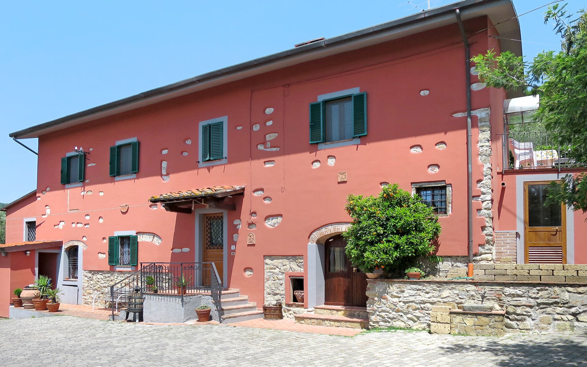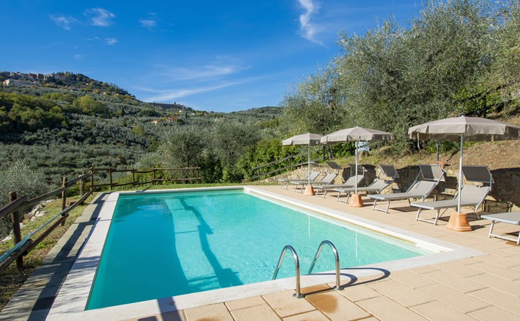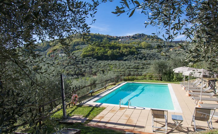 Mooi, rustieke boerderij "Francesco", 80 m boven zeeniveau, omgeven door bomen en velden. 4.5 km van het centrum van Montecatini Terme, 2.5 km van het centrum van Pieve a Nievole, 34 km van het centrum van Lucca, geïsoleerde, zonnige ligging tegen een helling, 60 km van zee, te midden van groen. Voor medegebruik: wild terrein 3 ha, mooie tuin op verschillende niveaus planten en bomen, weide, boomgaard. Voor alleengebruik: openluchtzwembad (10 x 5 m, 120 - 160 cm diepte, seizoensgebonden beschikbaarheid: 04.Apr. - 24.Okt.). Buitendouche, terras, tuinmeubelen, onderhoud zwembad door de eigenaar/tuinman. Parkeerplaats op het terrein. Winkel 2.5 km, supermarkt 4.5 km, bushalte 3 km, treinstation "Montecatini Terme" 5 km, zandstrand "Viareggio" 60 km. Golfterrein (18 holes) 11 km. Een deel van het huis is afgesloten en niet bezet. De eigenaar woont op hetzelfde terrein. Autobaan in de buurt.